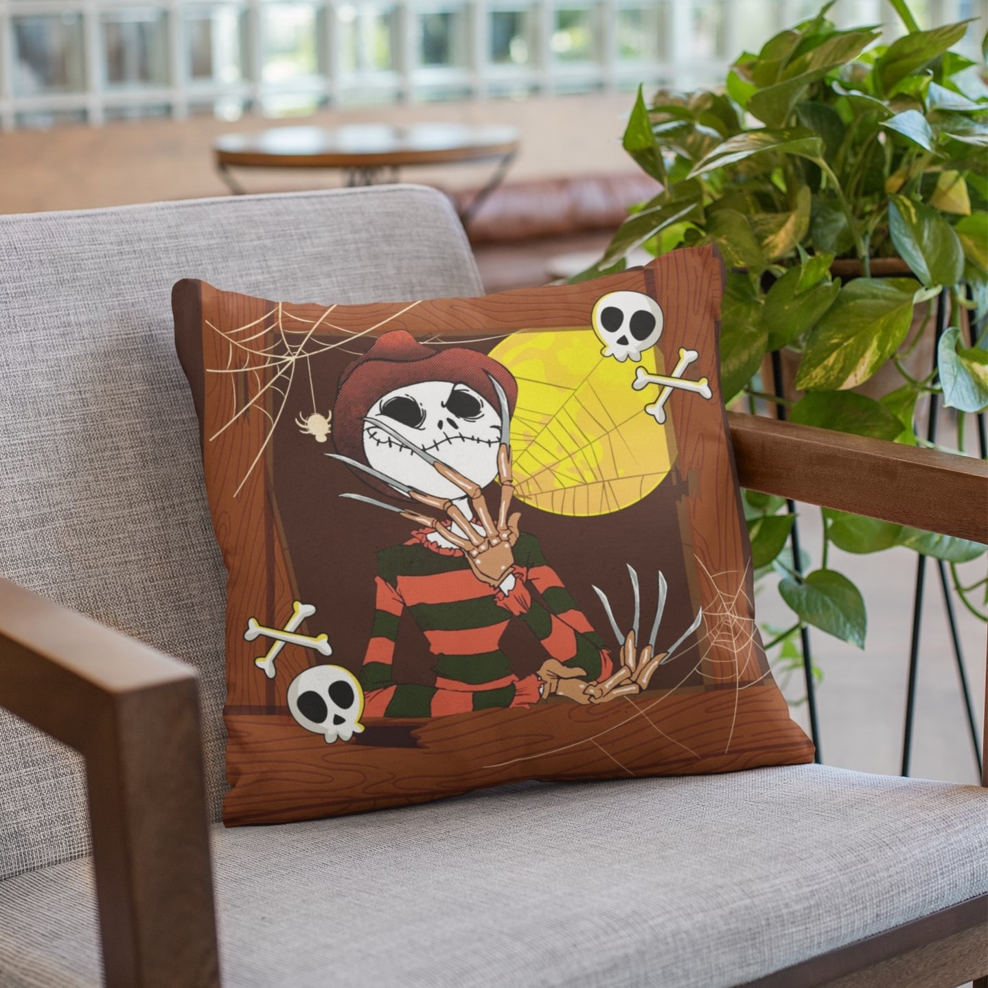 Let’s Shop Freddy Skellington Funny Halloween Decorative Throw Pillow with Insert – Horror Movie Sofa Decor Cushion – Indoor Outdoor Sofa Decor!