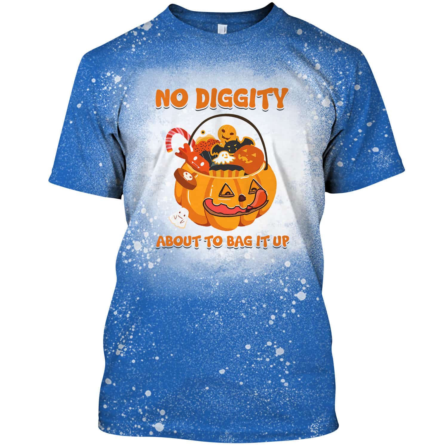 No Diggity About To Bag It Up Sublimation Bleached T-Shirt – Funny Halloween Pumpkin Bleached Shirt