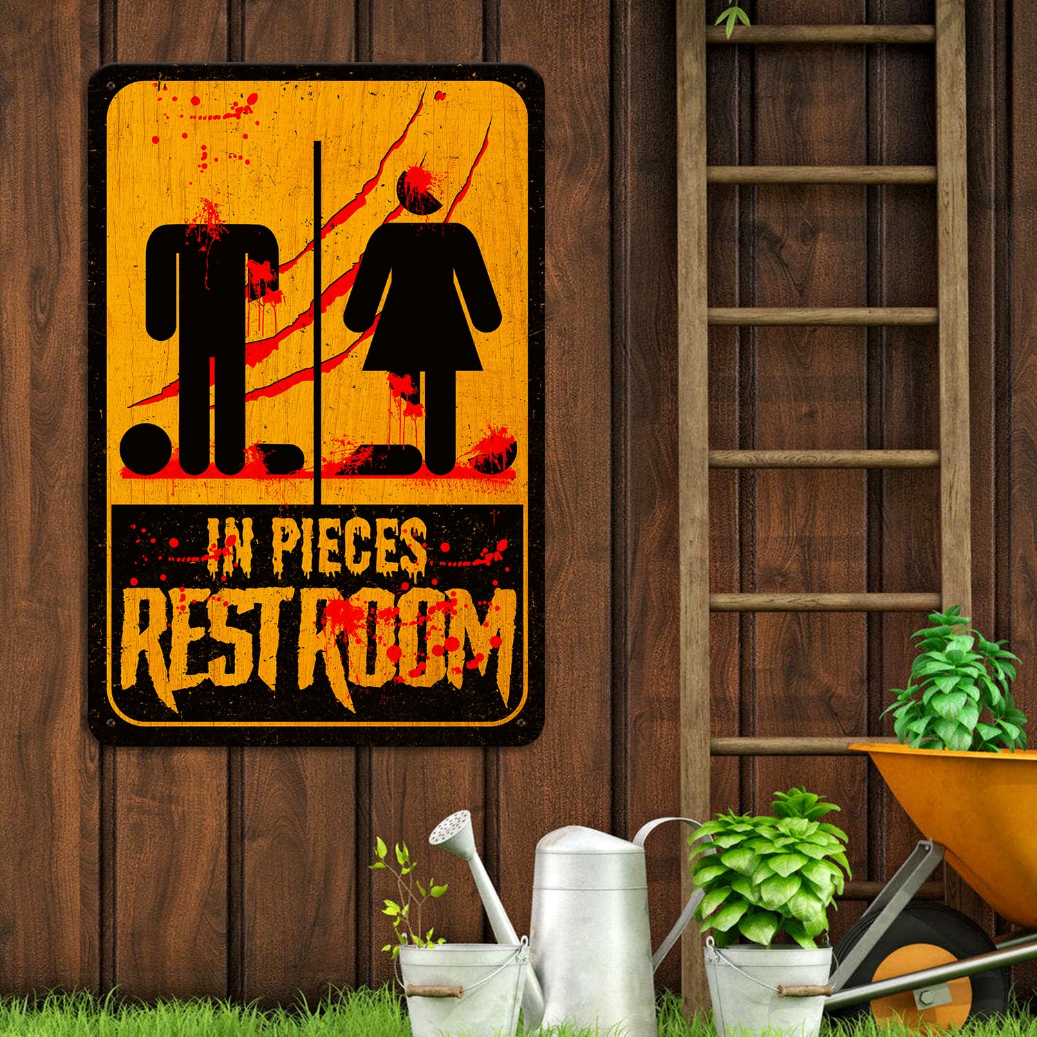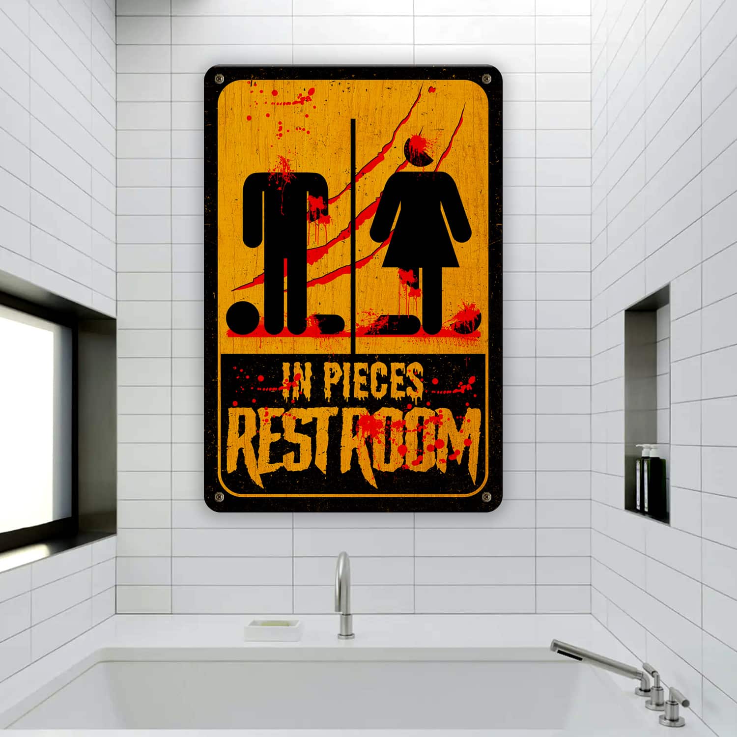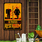 Let’s Shop Bloody Restroom Decorative Metal Sign – Rest In Pieces Halloween Indoor Outdoor Decor!