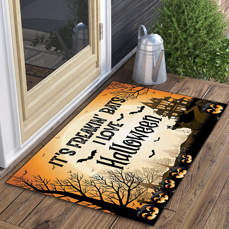 Let’s Shop It’s Freakin’ Bats I Love Halloween House Doormat – Outdoor Indoor Doormat – Funny Halloween Doormat!