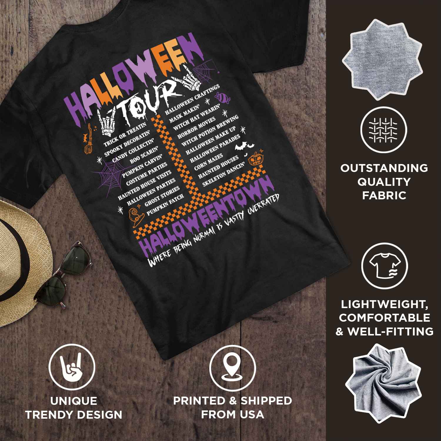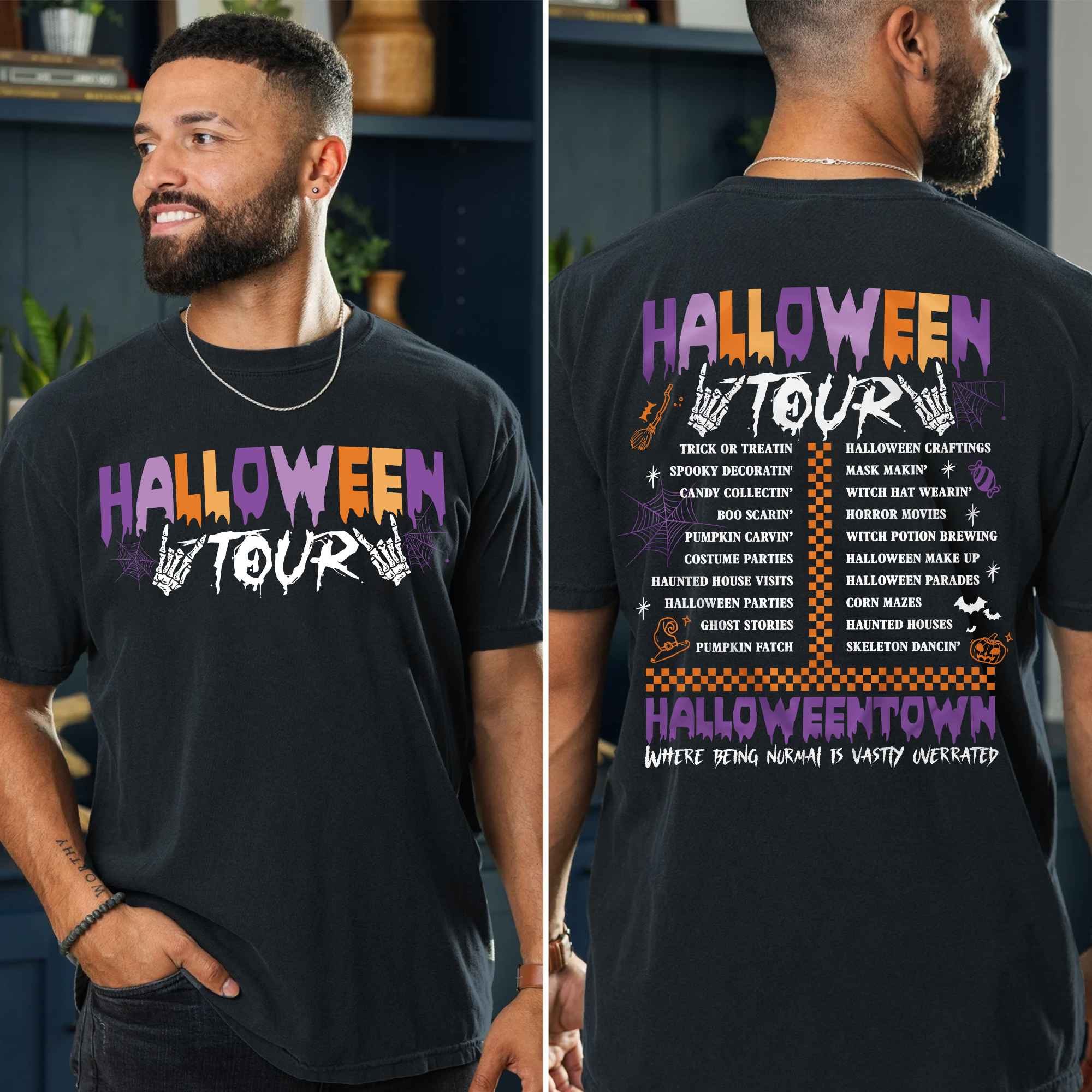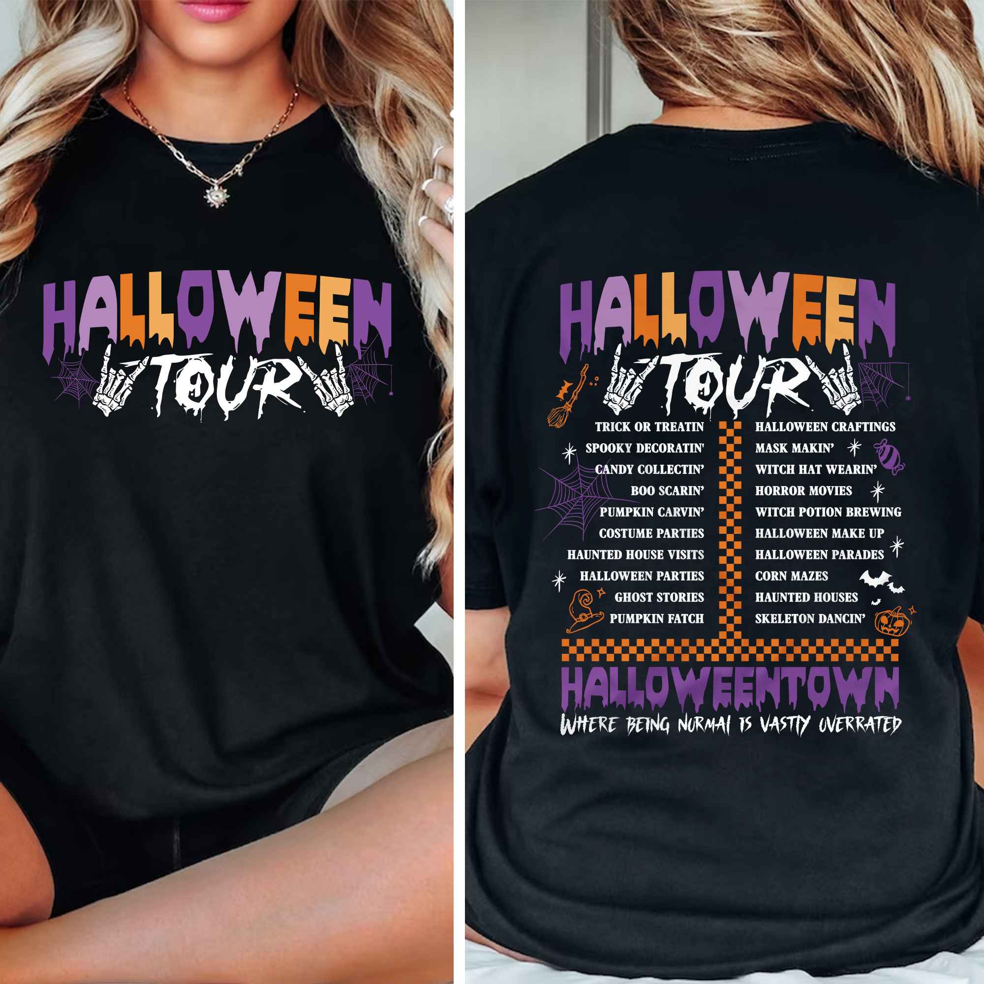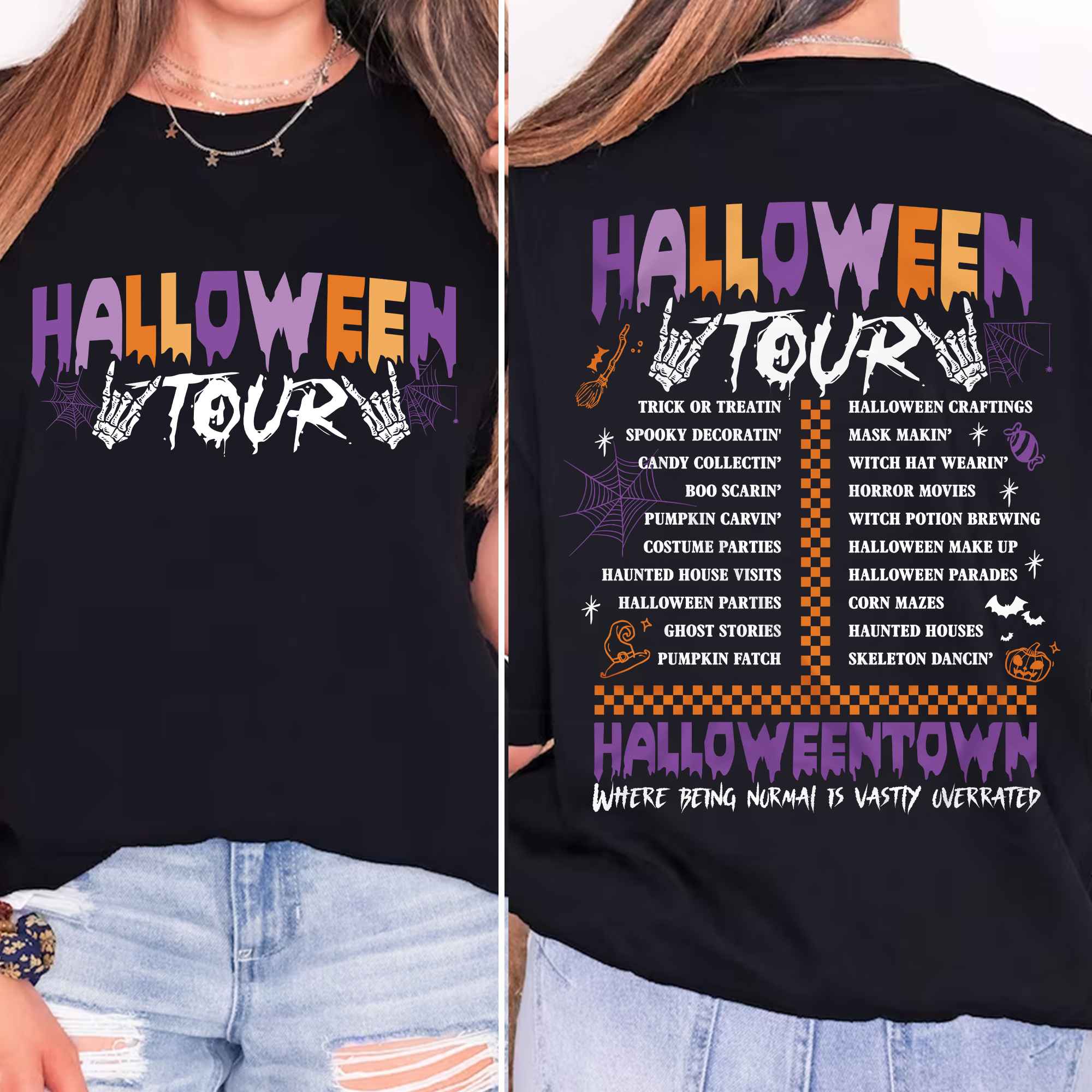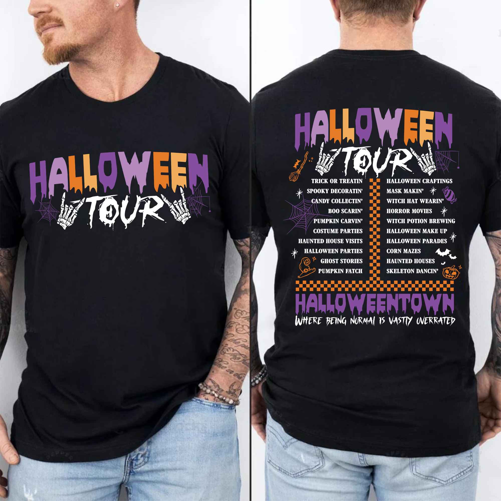 Halloween Tour Halloweentown Where Being Normal Is Wastly Overrated Printed On 2 Sides T-Shirt