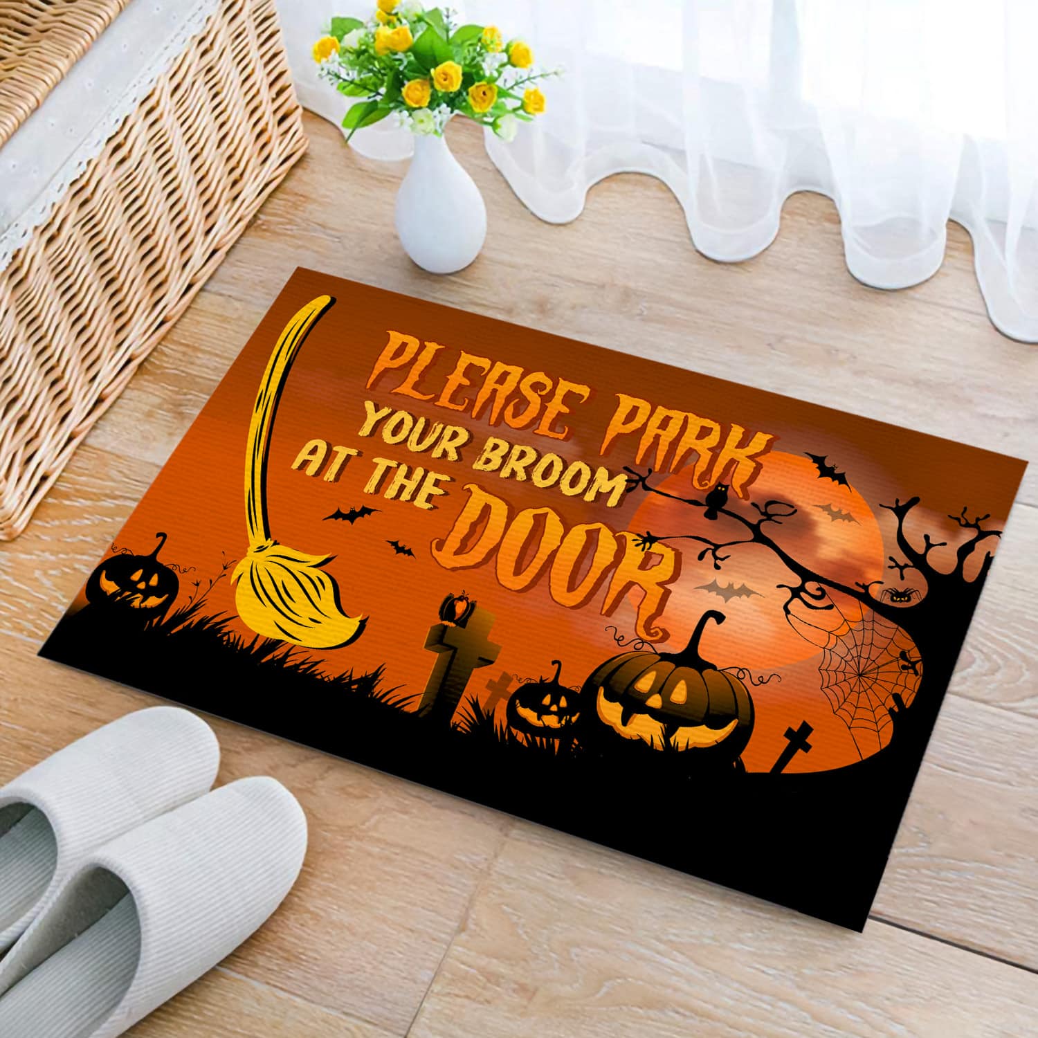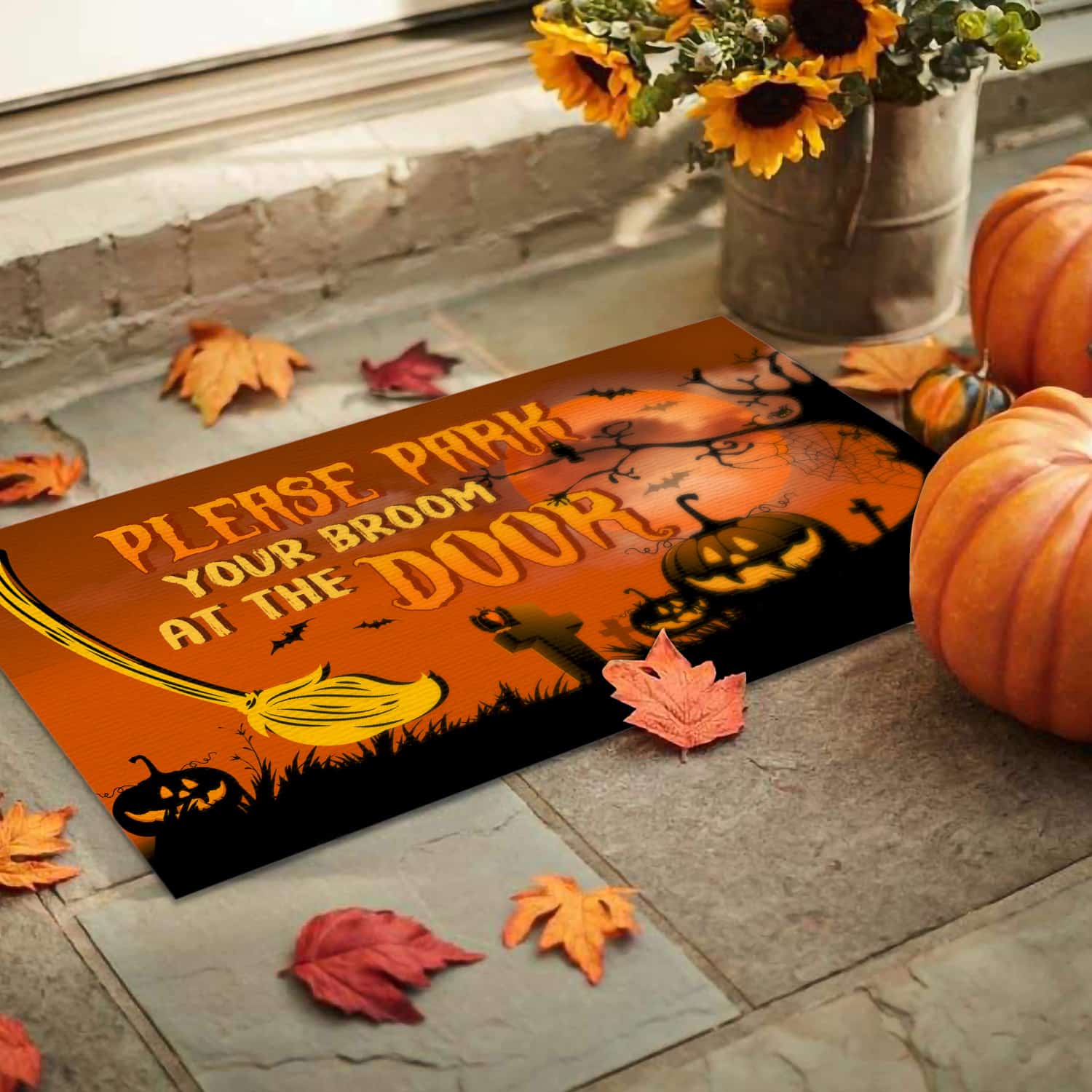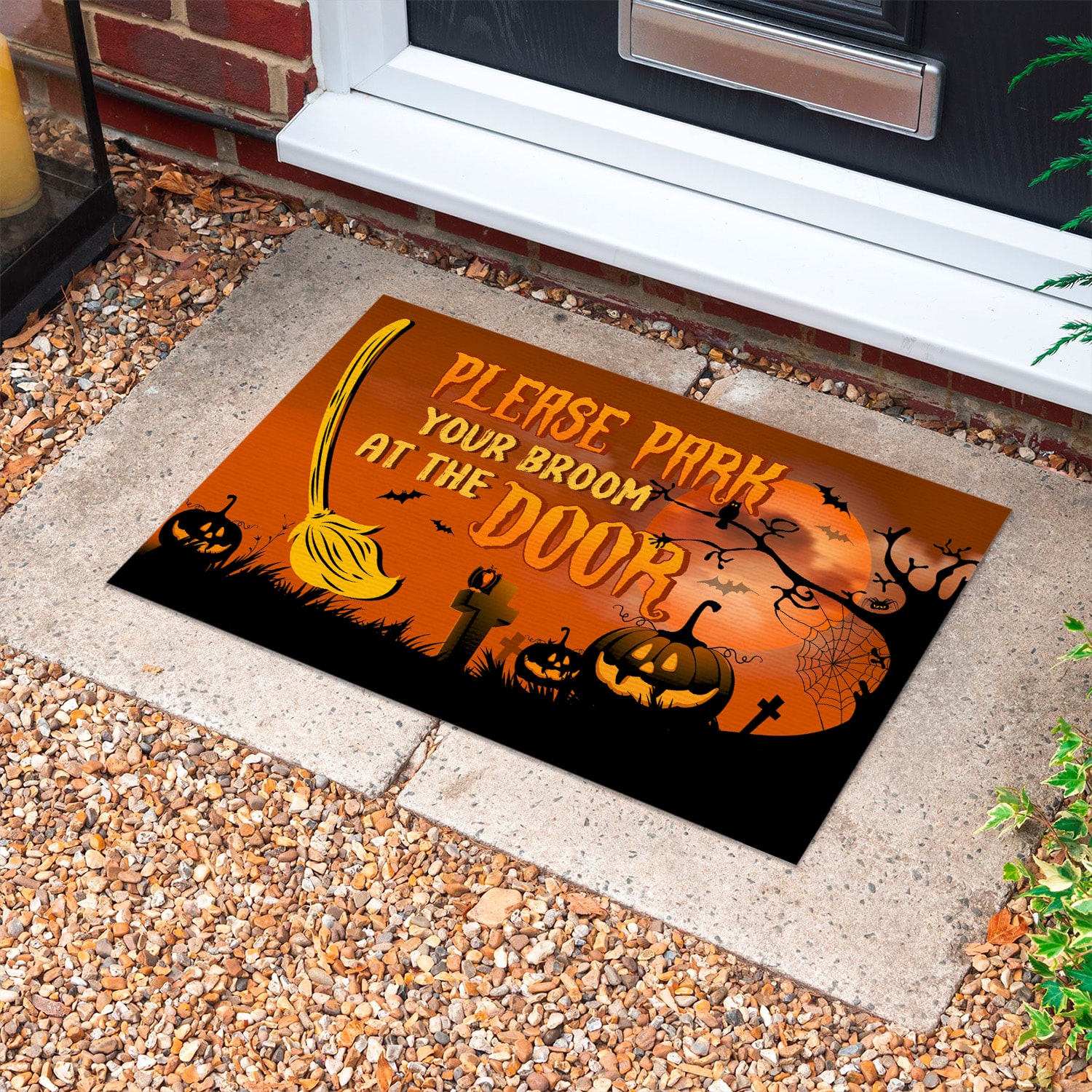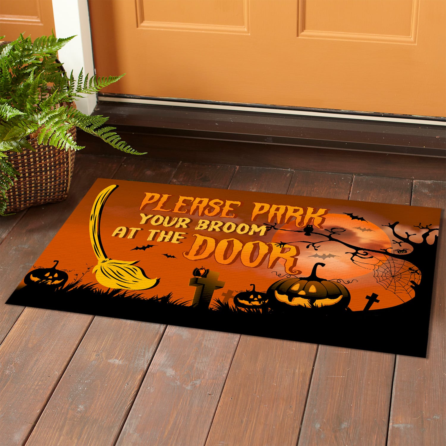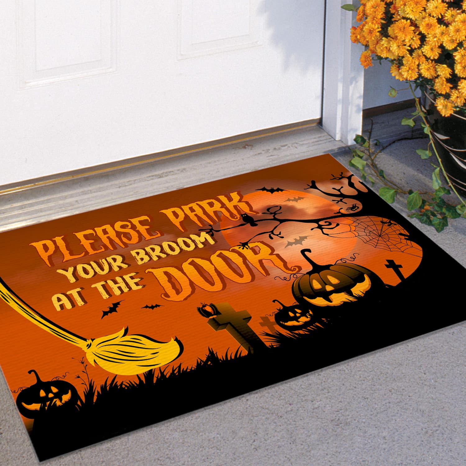 Let’s Shop Please Park Your Broom at the Door Indoor Outdoor Doormat – Funny Halloween Doormat!