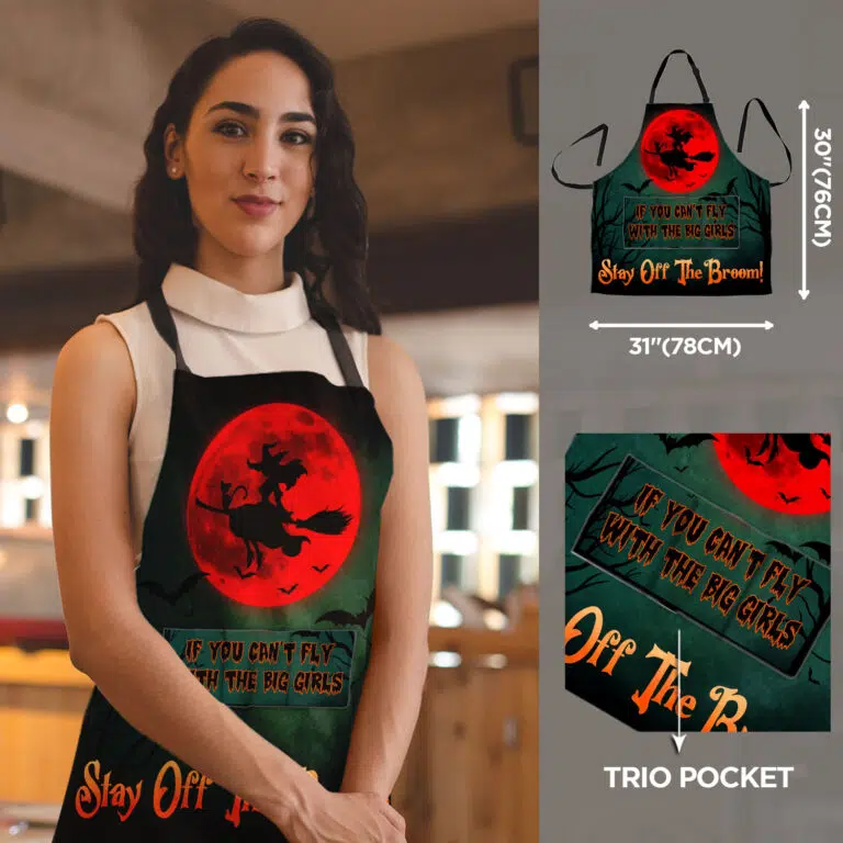 Let’s Shop If You Can’t Fly With The Big Girls Stay Off The Broom Witch Funny Cooking Apron With 3 Pockets!