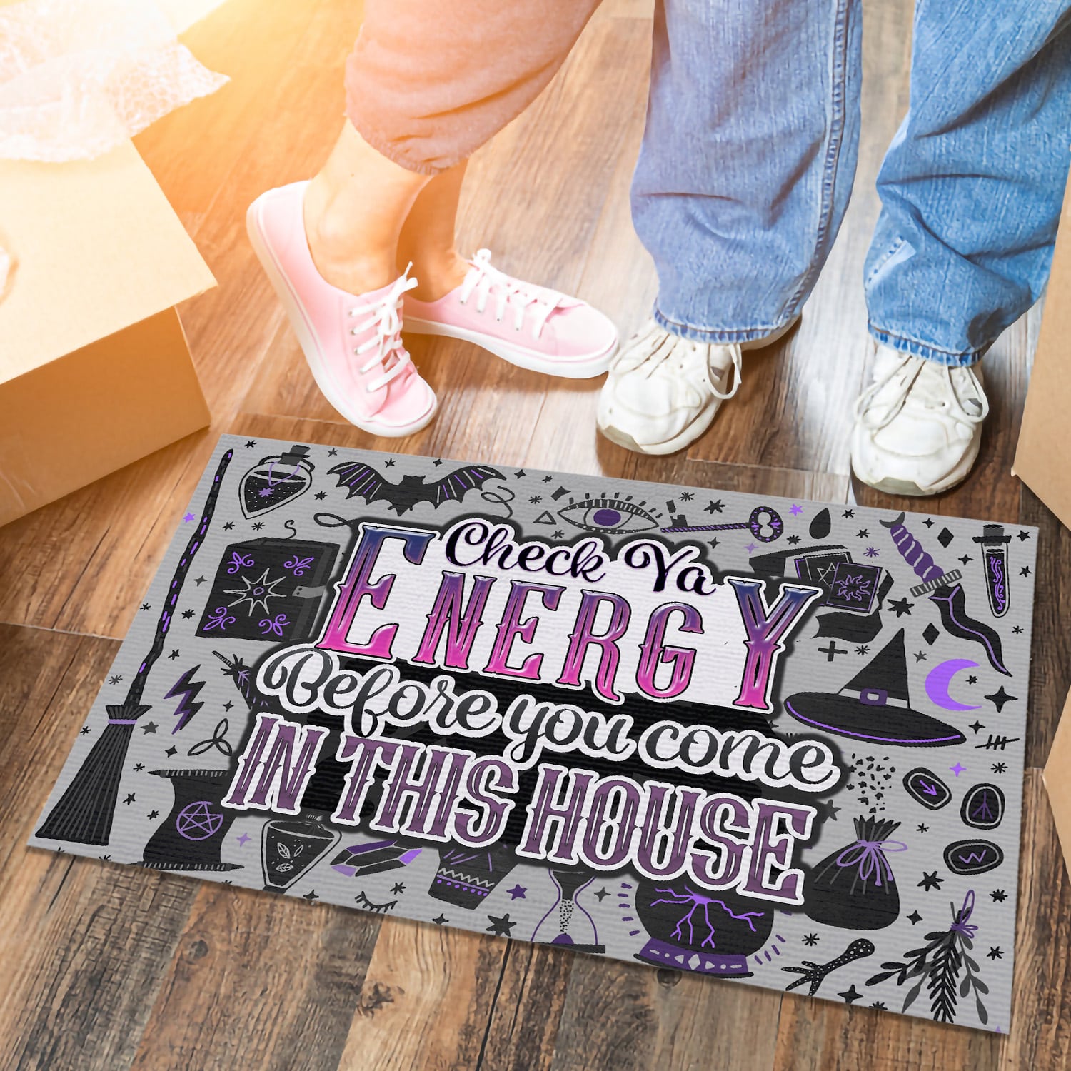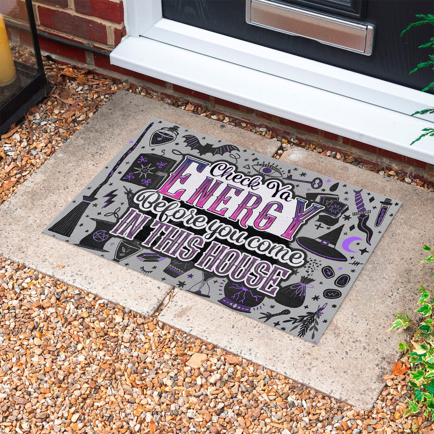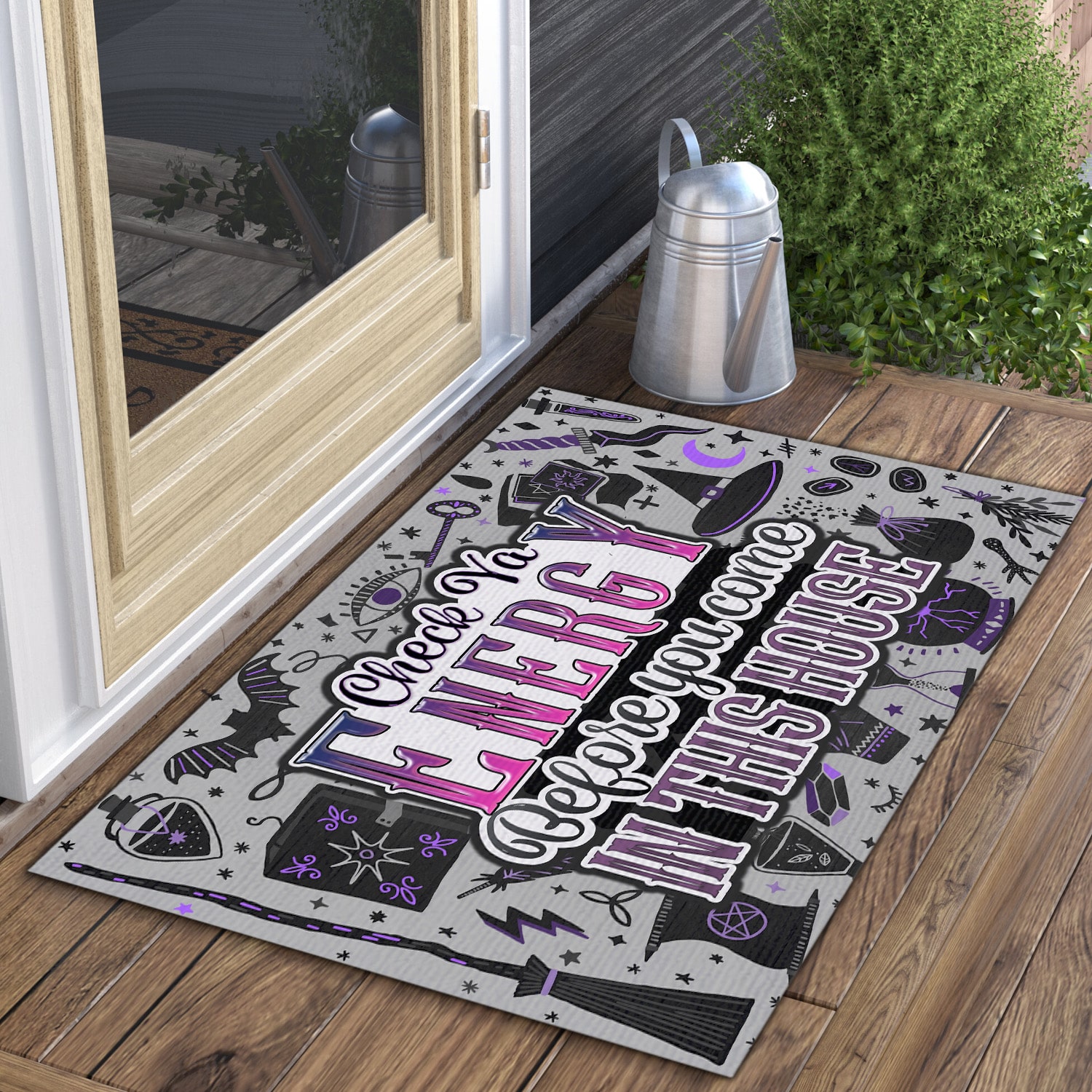 Let’s Shop Halloween Check Ya Energy Before Before You Come in This House Witch Decorative Doormat – Funny Witch Welcome Mat!