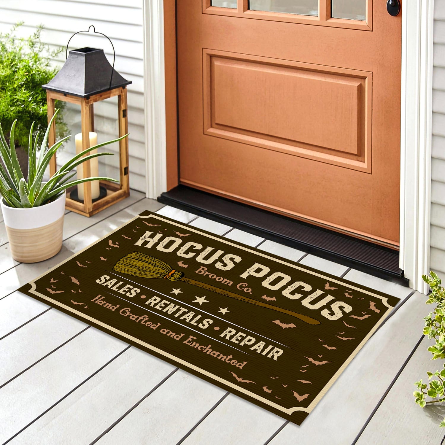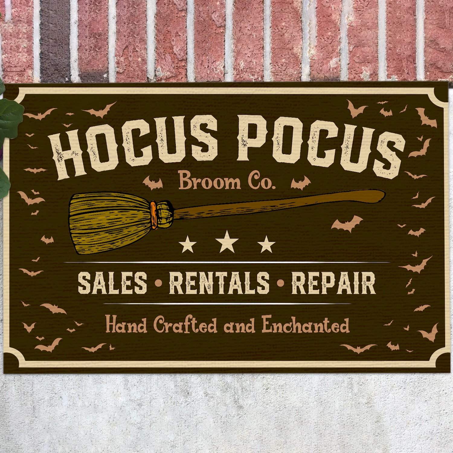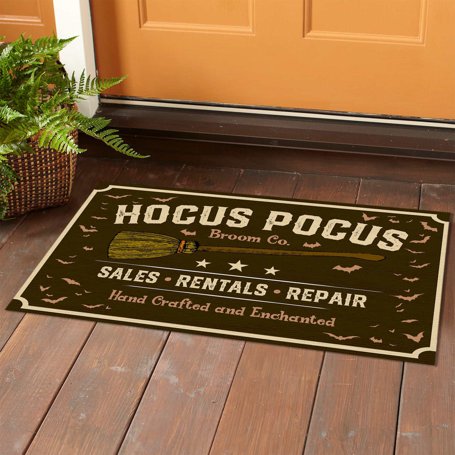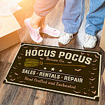 Let’s Shop Hocus Pocus Broom Co Sales Rentals Repair Hand Craft and Enchanted Doormat – Funny Witch Halloween Doormat!
