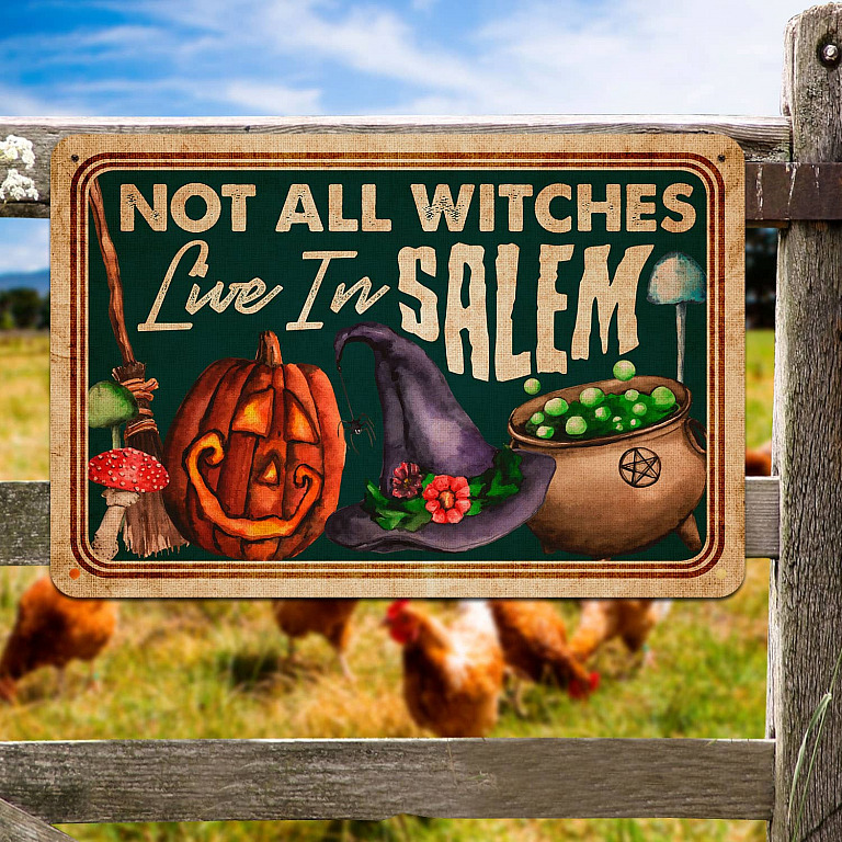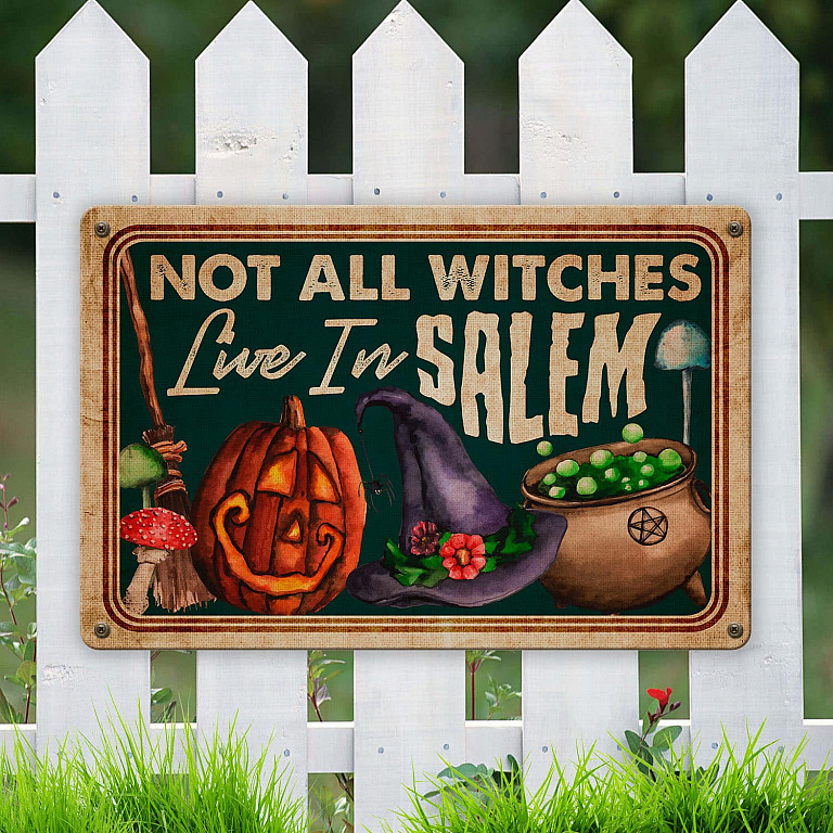 Let’s Shop Not All Witches Live In Salem Retro Vintage Decorative Metal Sign – Halloween Decor Farmhouse!