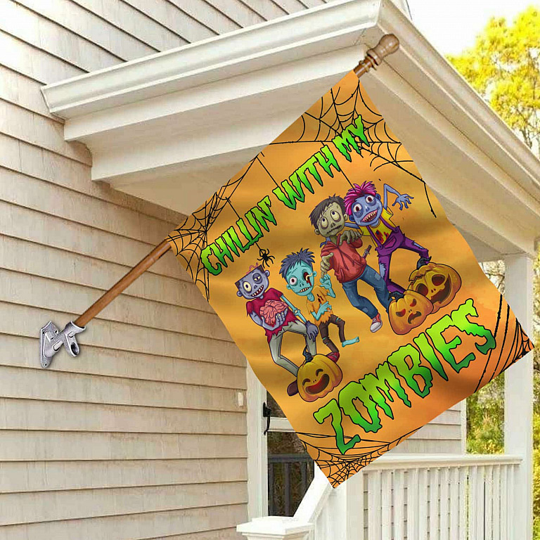 Let’s Shop Chillin’ With My Zombies Outdoor Indoor Decorative Garden Flag – House Flag – Wall Flag- Halloween Party Flag!