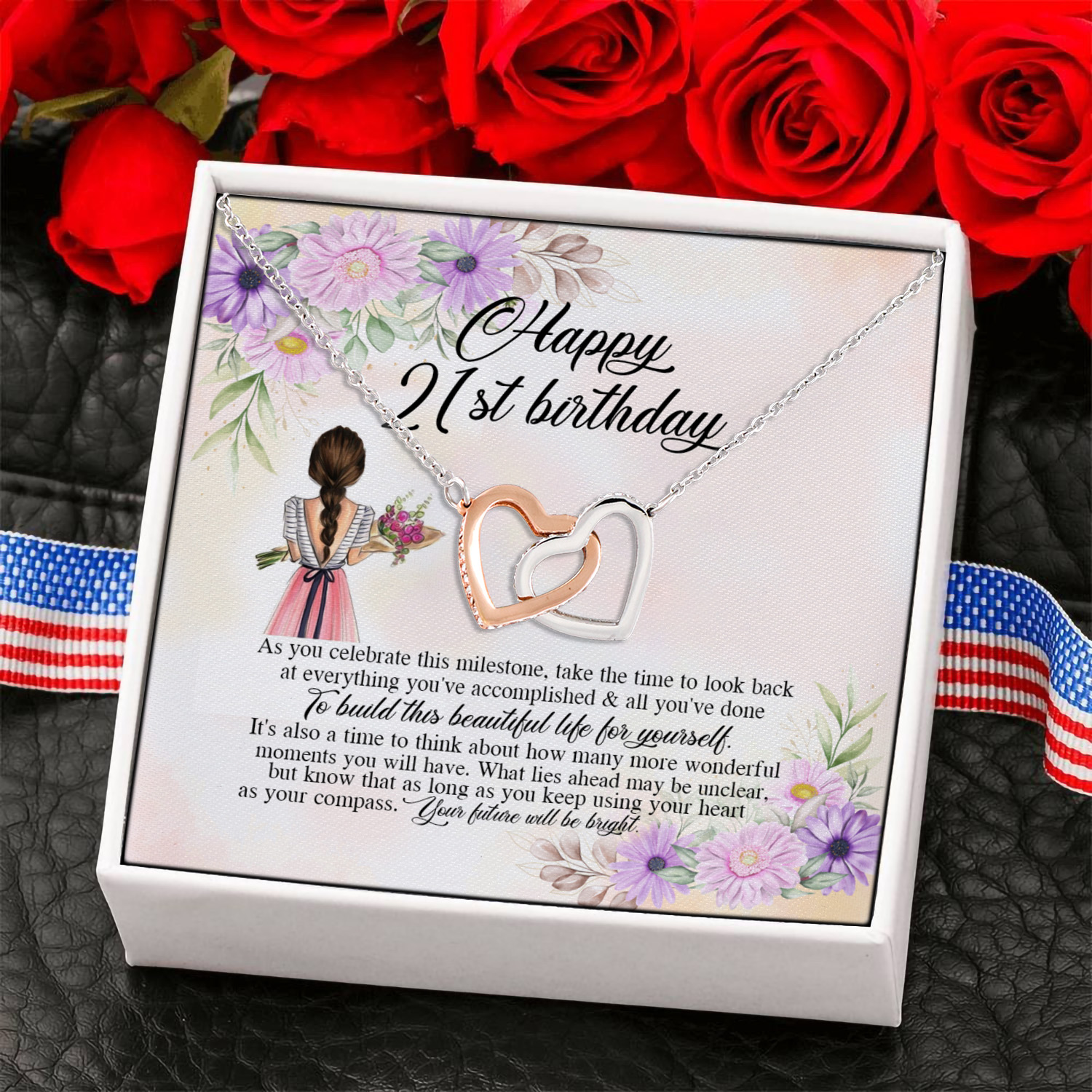 Let’s Shop Happy 21st Birthday Your Future Will Be Bright Celebrate This Milestone Interlocking Heart Pendant Necklace!