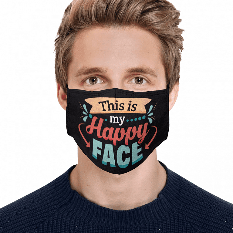 Shop This Is My Happy Face Washable Reusable Custom – Printed Cloth Face Mask Cover – Funny Quarantine Face Mask.
