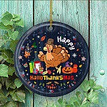 Let’s Shop Happy HalloThanksMas Cute Funny Ornament Keepsake – Holiday Flat Circle Porcelain Ceramic Ornament!
