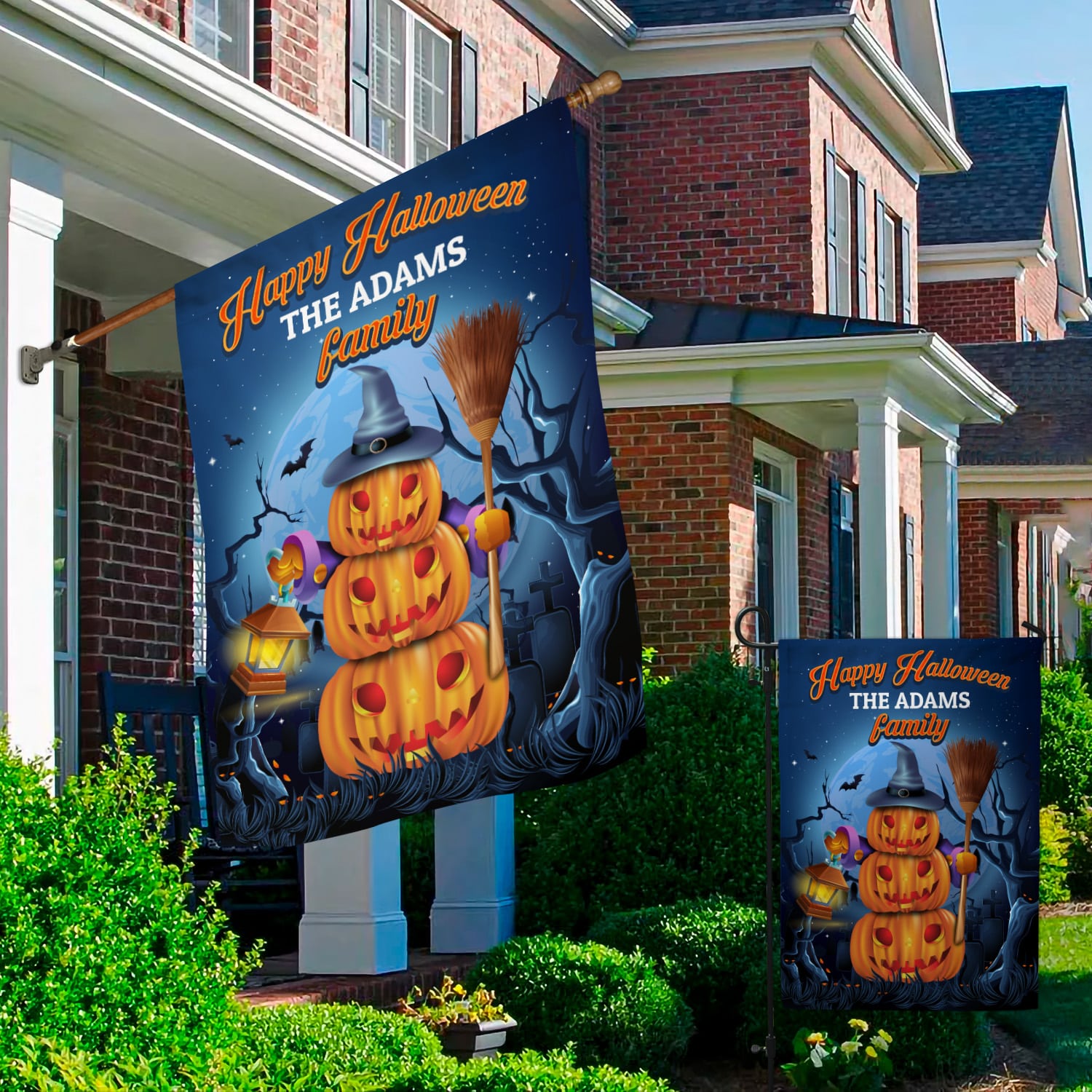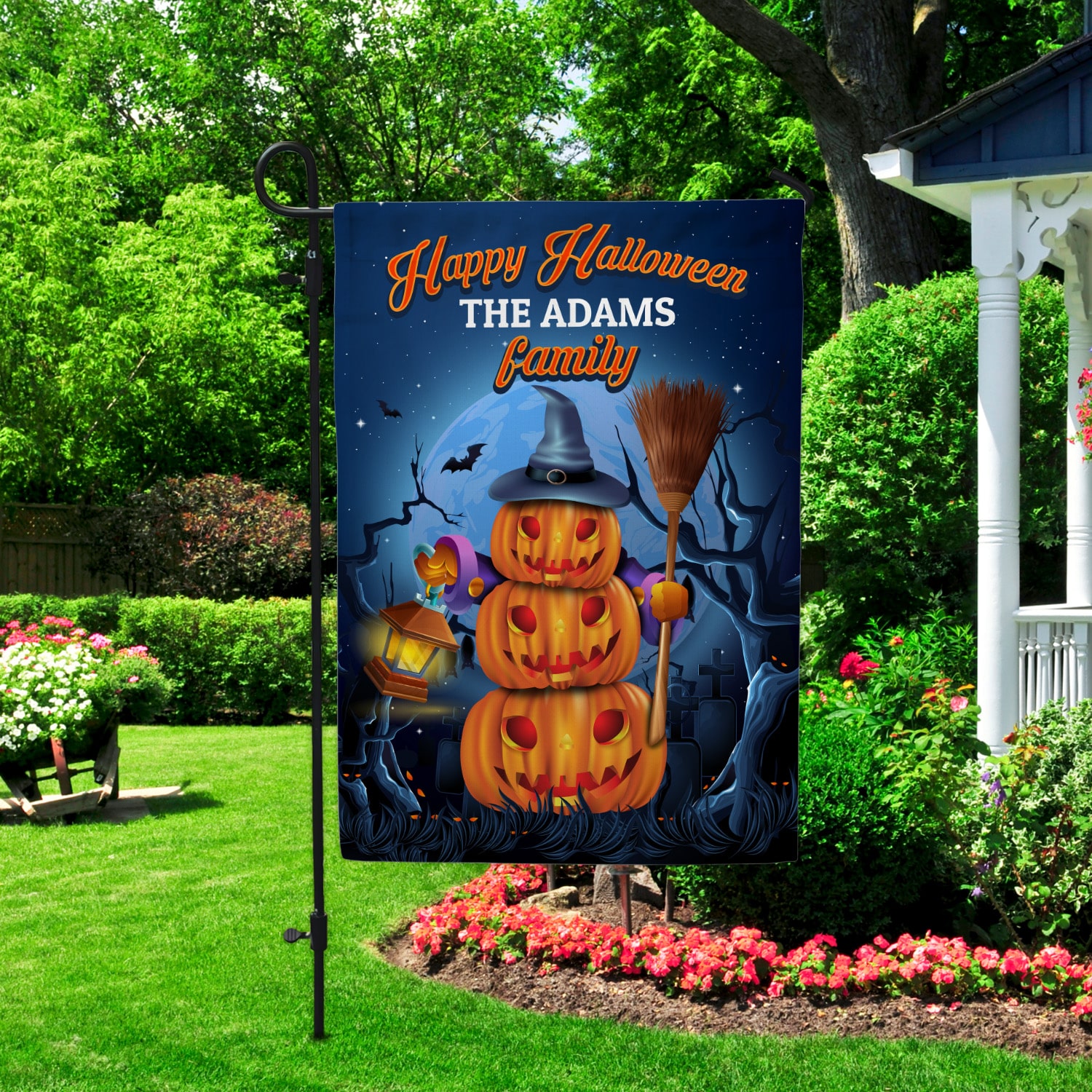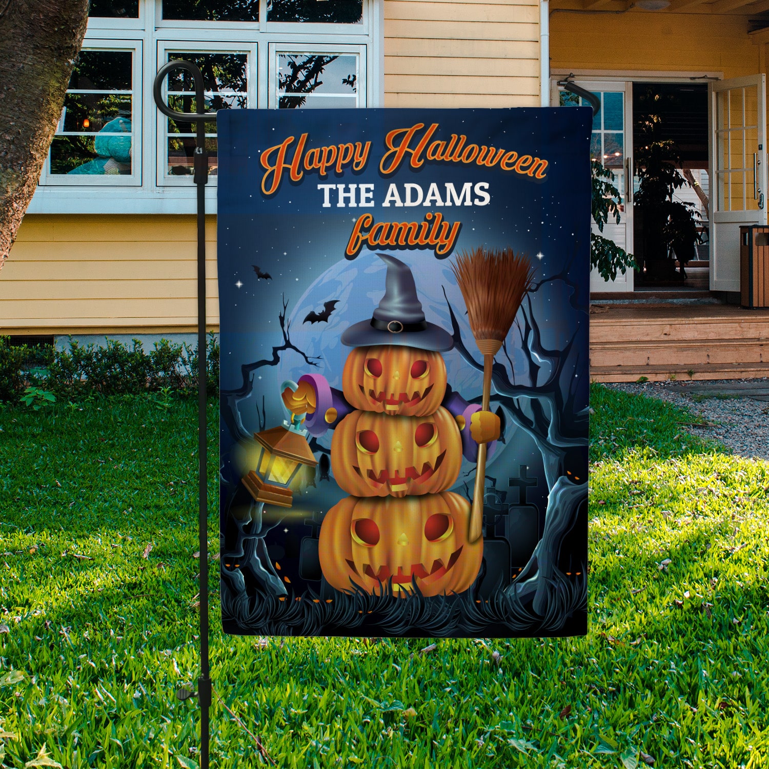 Let’s Shop Personalized Family’s Name Happy Halloween Funny Pumpkin Garden Flag – Halloween Pumpkin Outdoor House Flag!