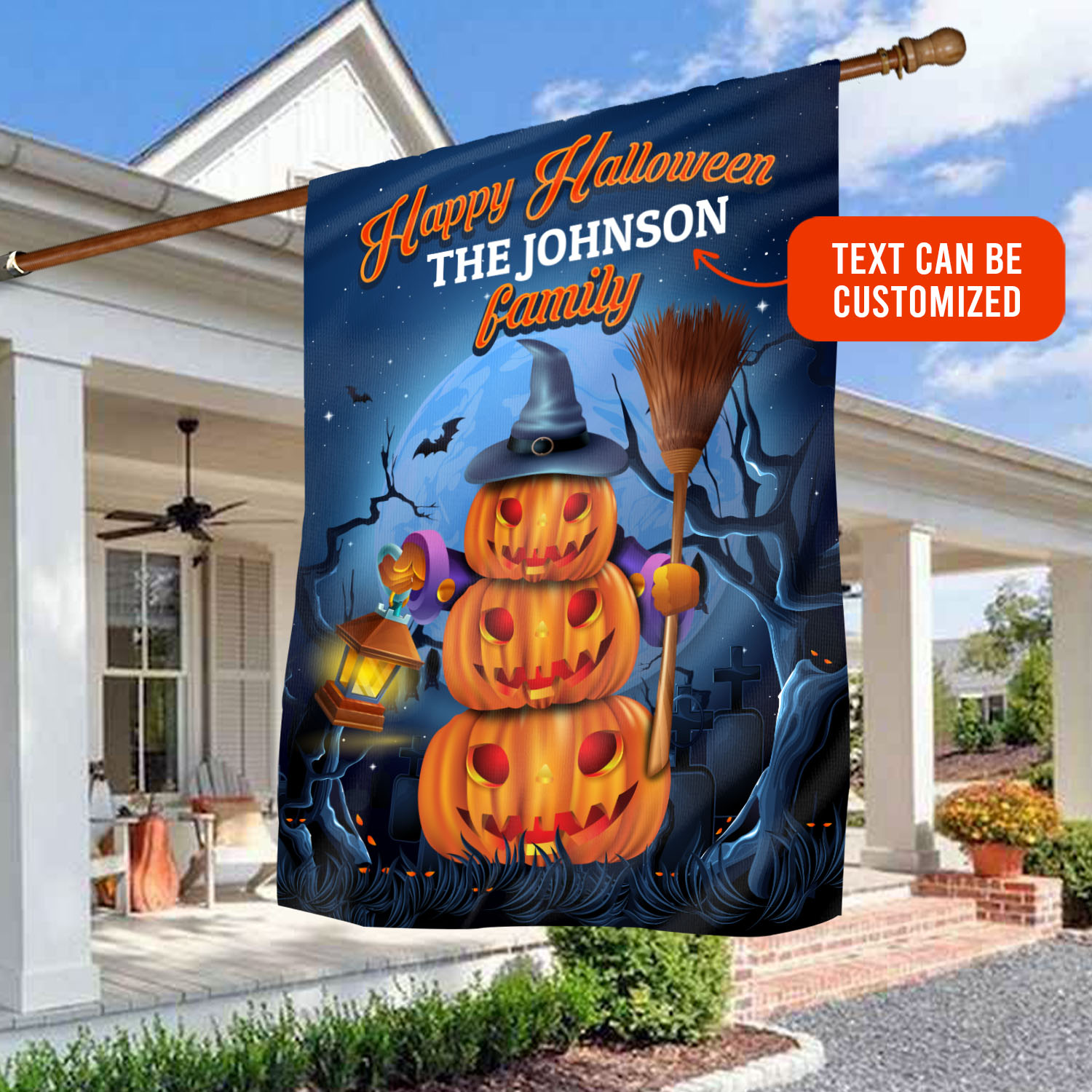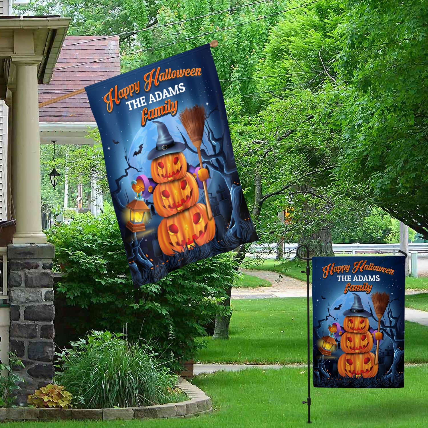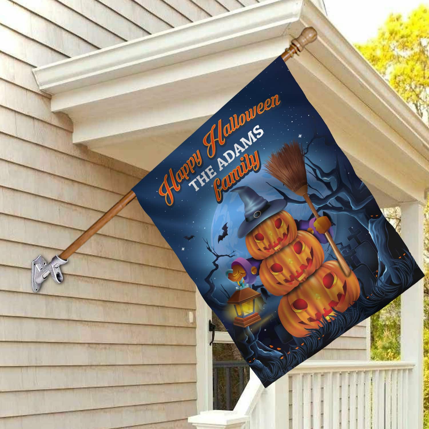 Let’s Shop Personalized Family’s Name Happy Halloween Funny Pumpkin Garden Flag – Halloween Pumpkin Outdoor House Flag!