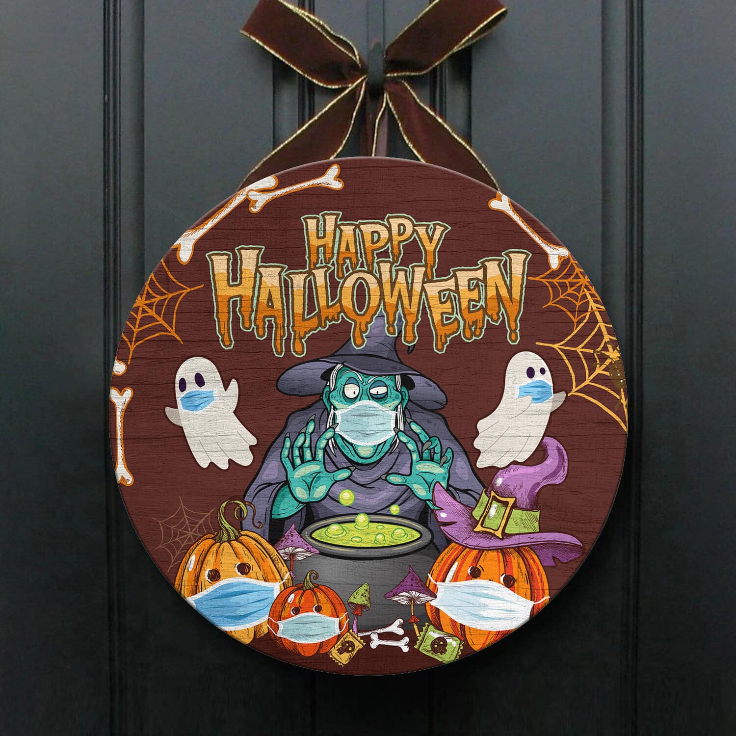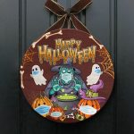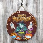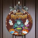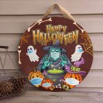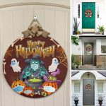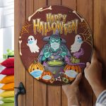 Let’s Shop Halloween Spooky Ghost Pumpkin Witch Circle Wooden Door Sign – Halloween Witches Indoor Outdoor Home Decor!