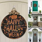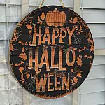 Let’s Shop Happy Halloween Pumpkin Circle Wooden Door Sign Hanger – Front Porch Sign Indoor Outdoor Decoration!