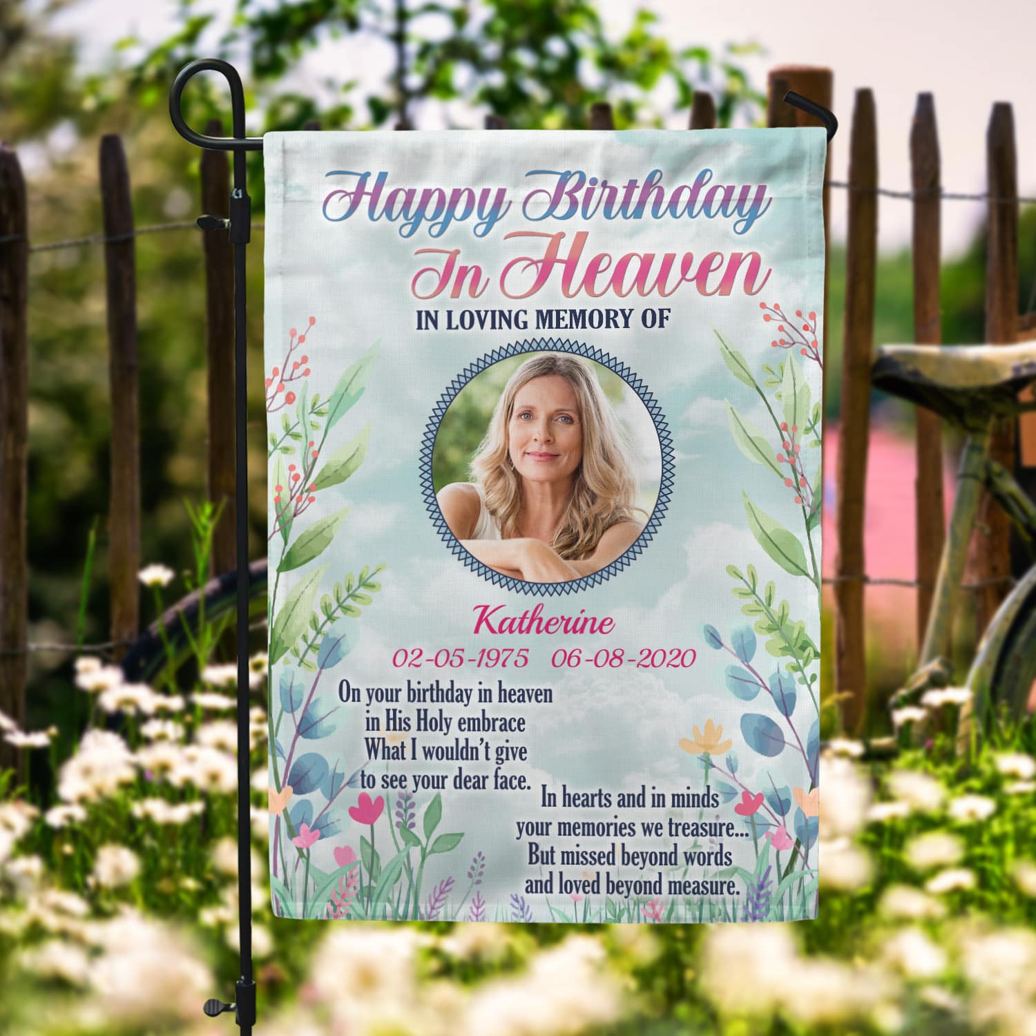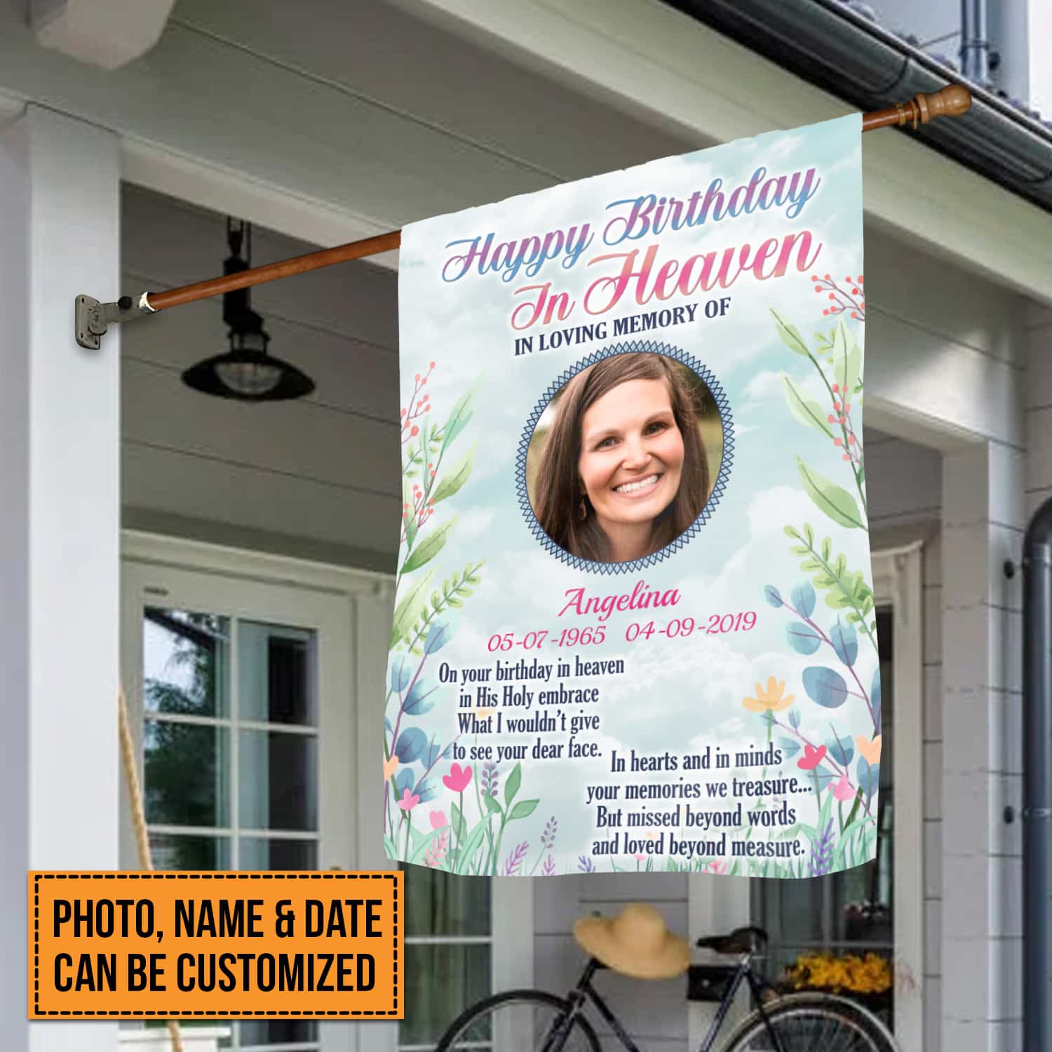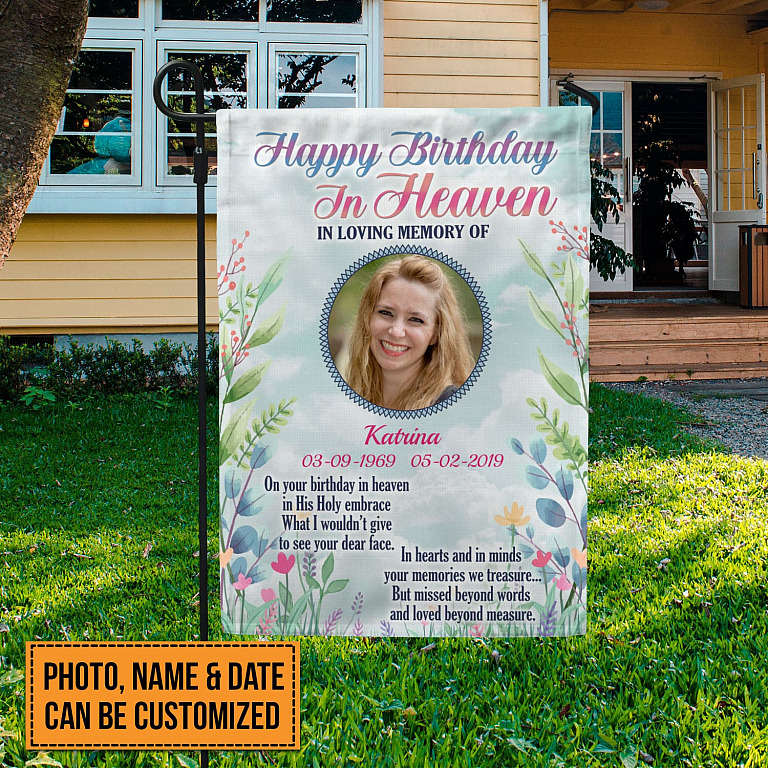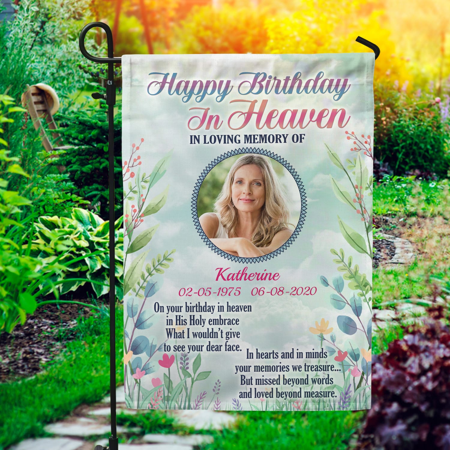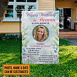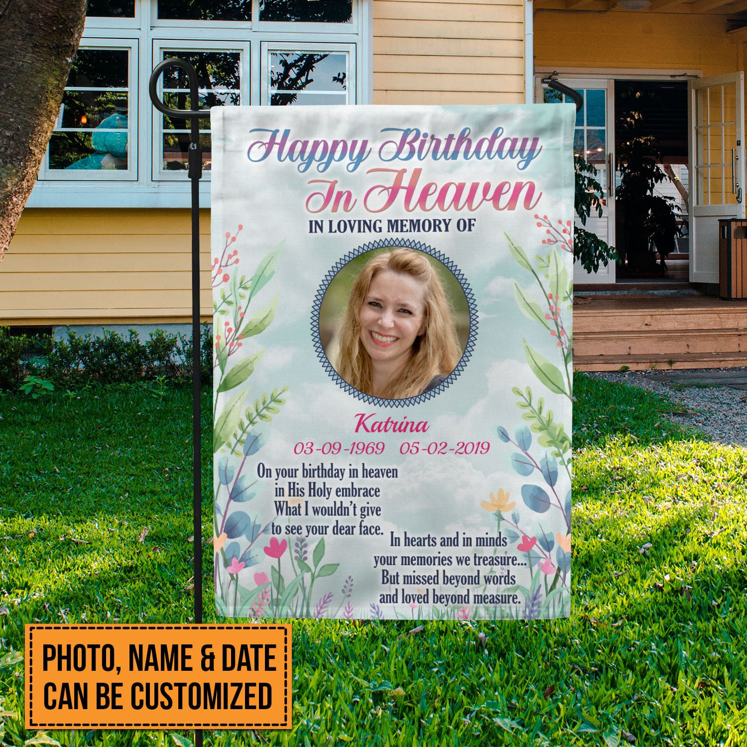 Let’s Shop Custom Photo Birthday in Heaven Garden Flag – House Flag – Wall Flag – Memorial Birthday Gifts!