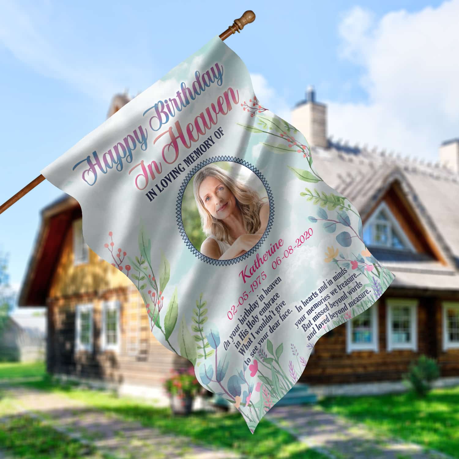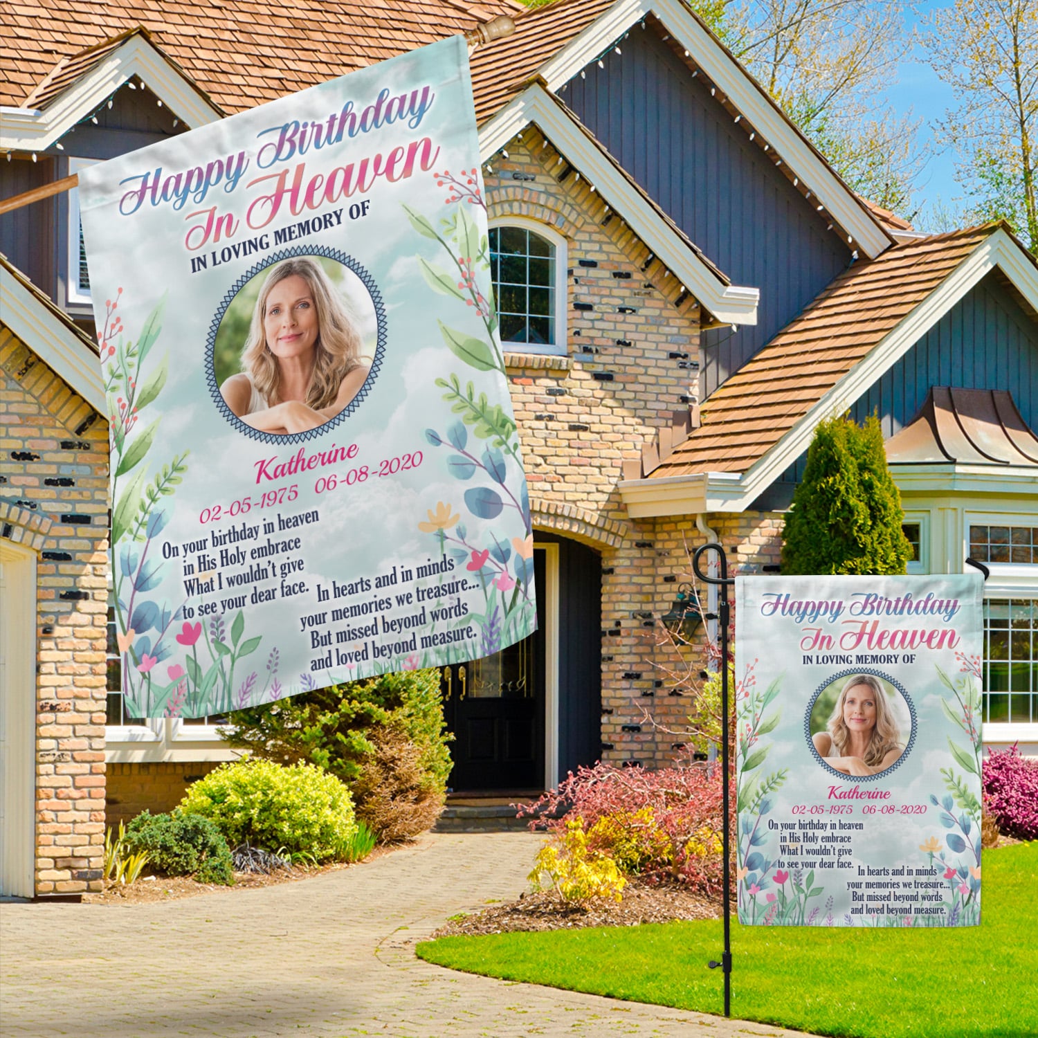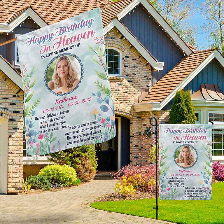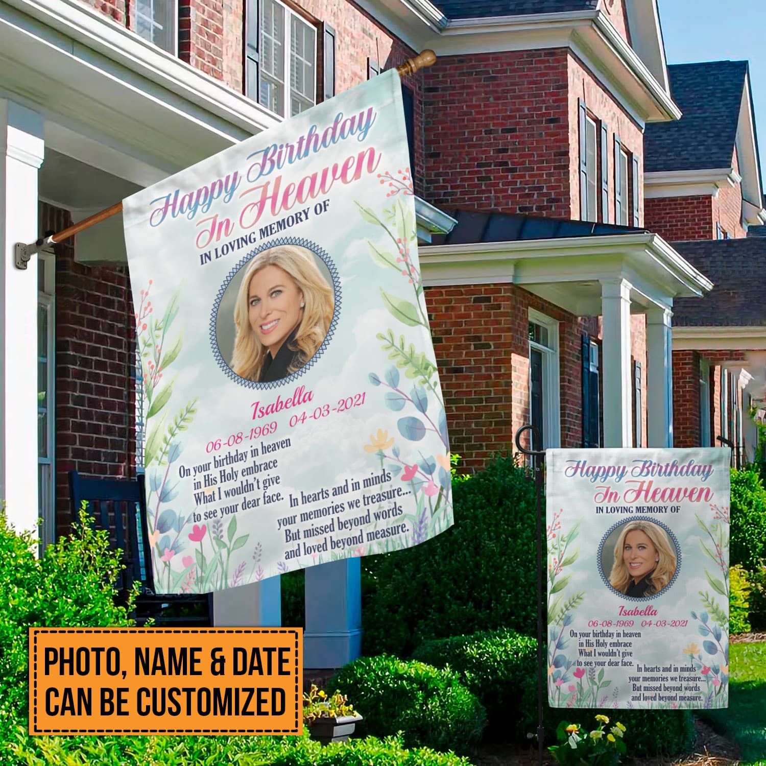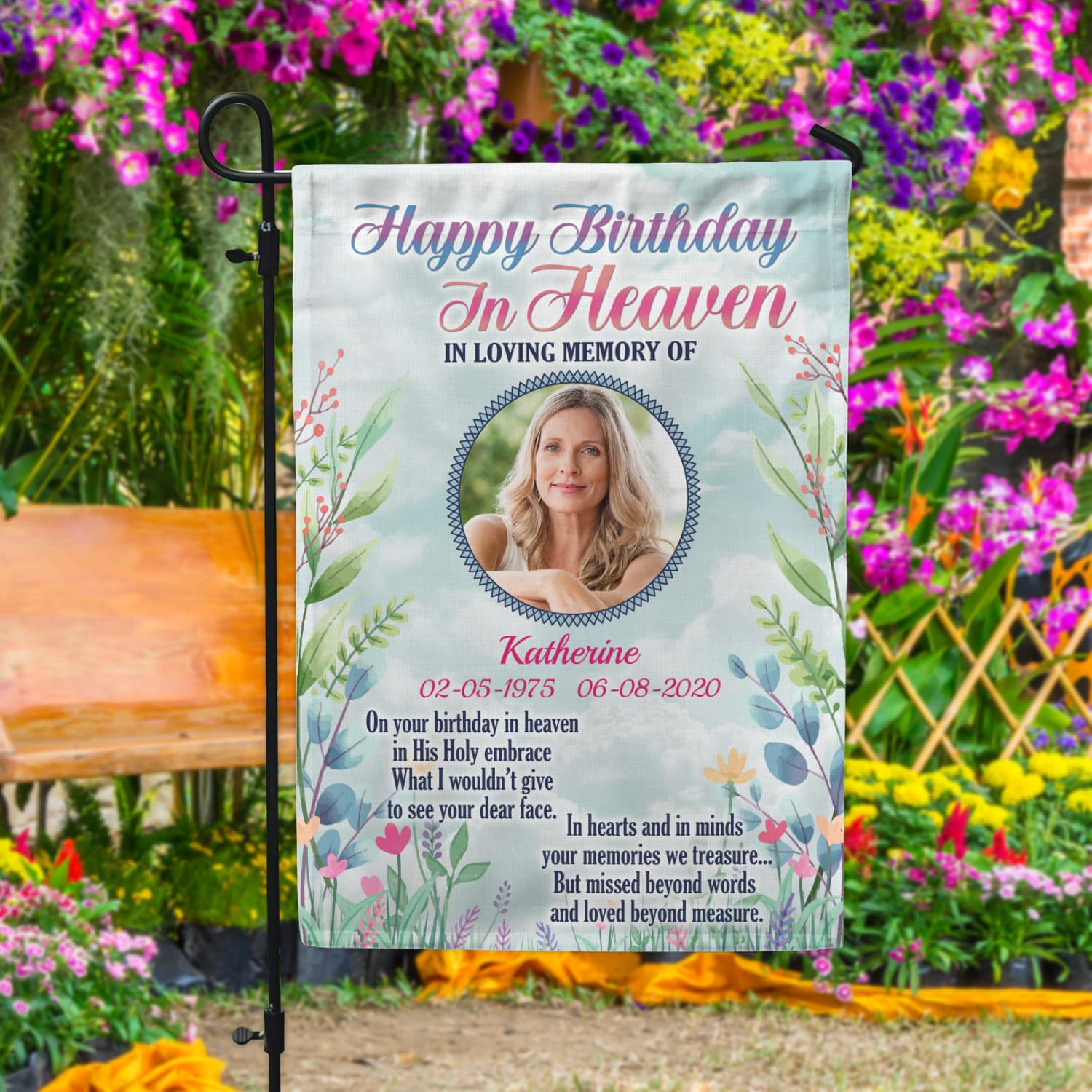 Let’s Shop Custom Photo Birthday in Heaven Garden Flag – House Flag – Wall Flag – Memorial Birthday Gifts!