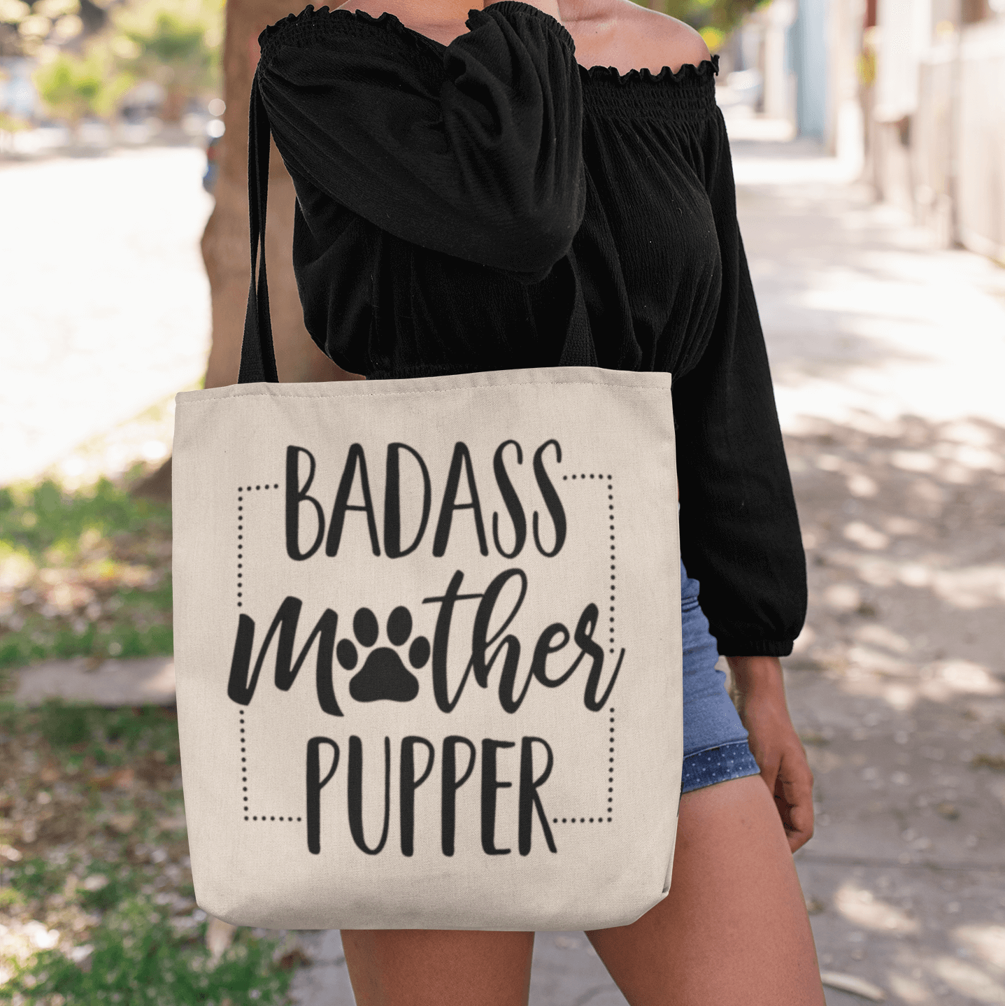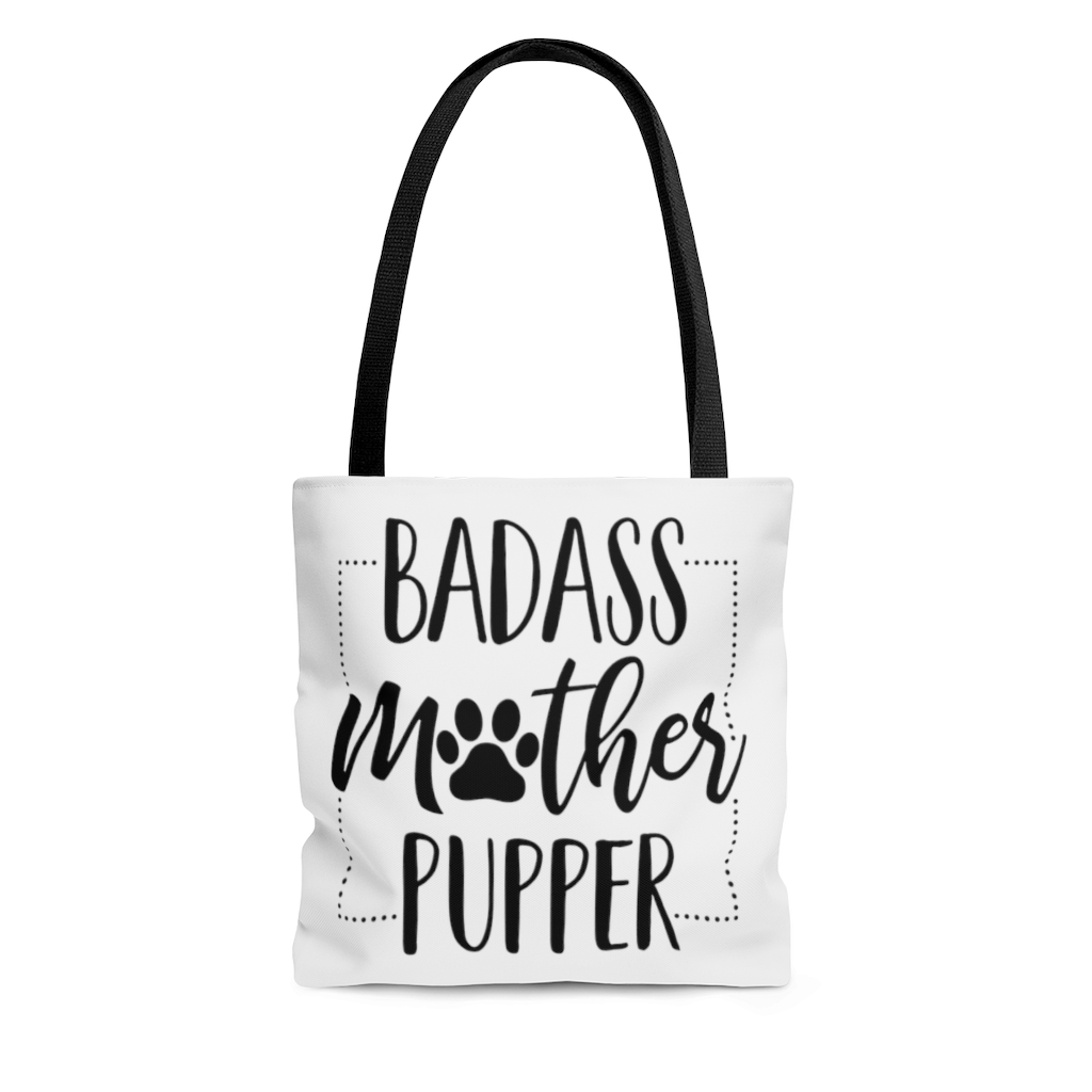 Let’s Shop Badass Mother Pupper Dog Mom Gift Ideas AOP Tote Bag – Shoulder Bag – Reusable Grocery Shopping Bag!