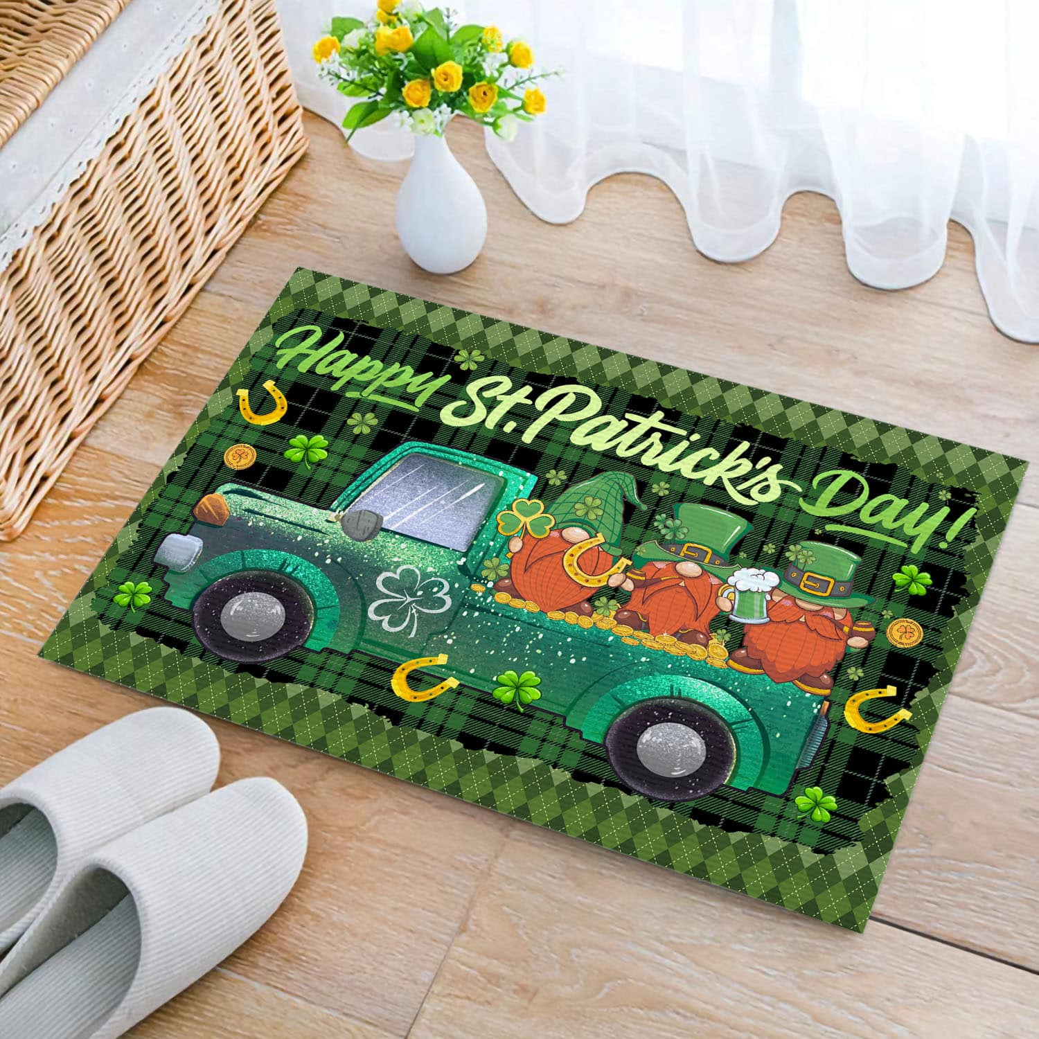 Let’s Shop Happy St Patricks Day Gnomes Green Shamrock Leaf Car Truck Irish Doormat Home Decor – Irish Lucky Shamrocks Floor Mat!