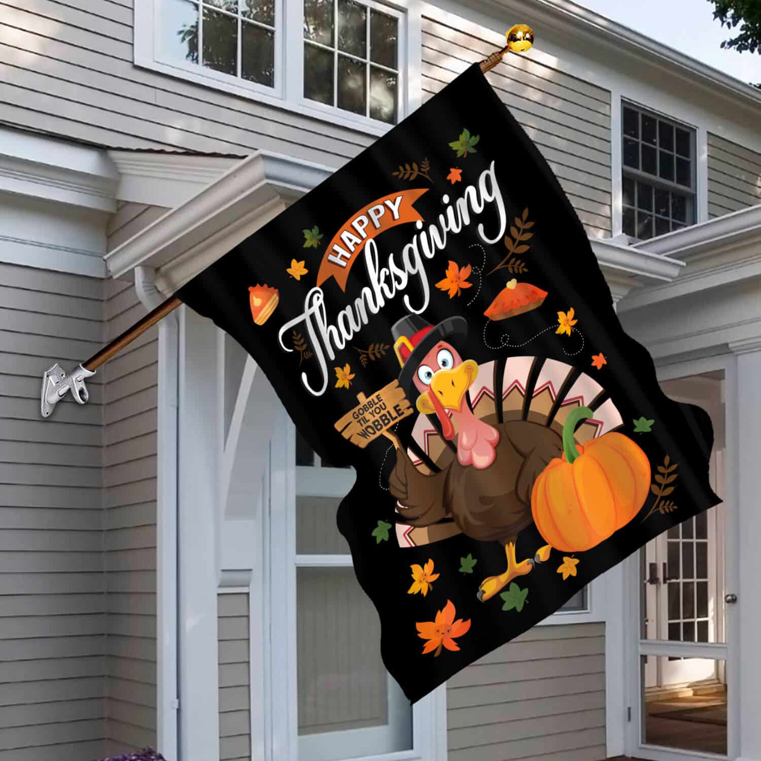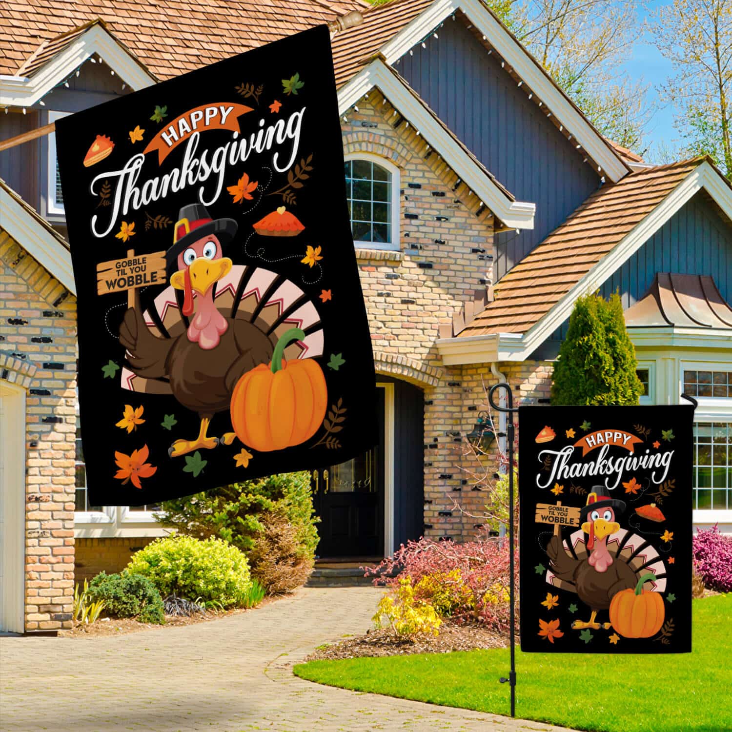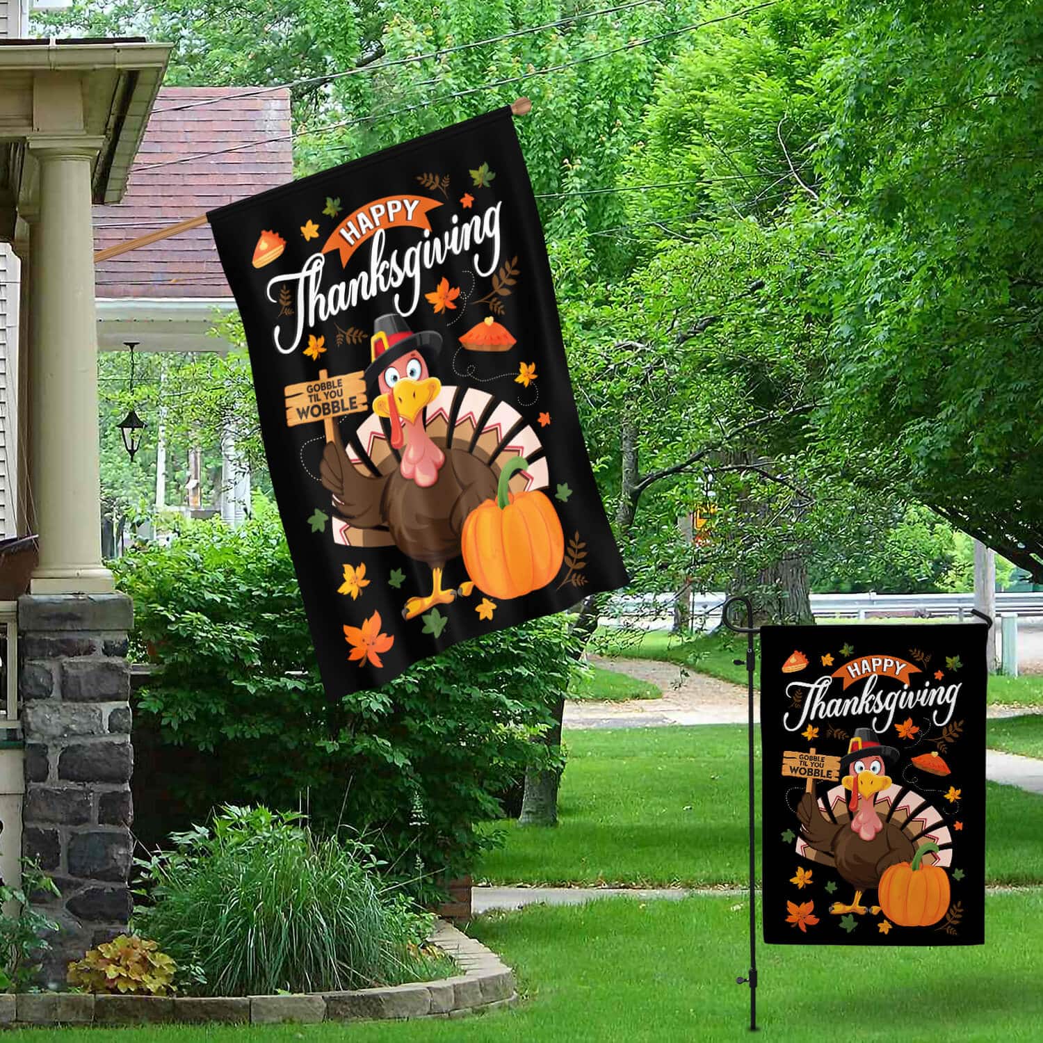 Let’s Shop Happy Thanksgiving Gobble Til You Wobble Turkey Fall Holiday Flag – Thanksgiving Decorative Garden Flag – House Flag!