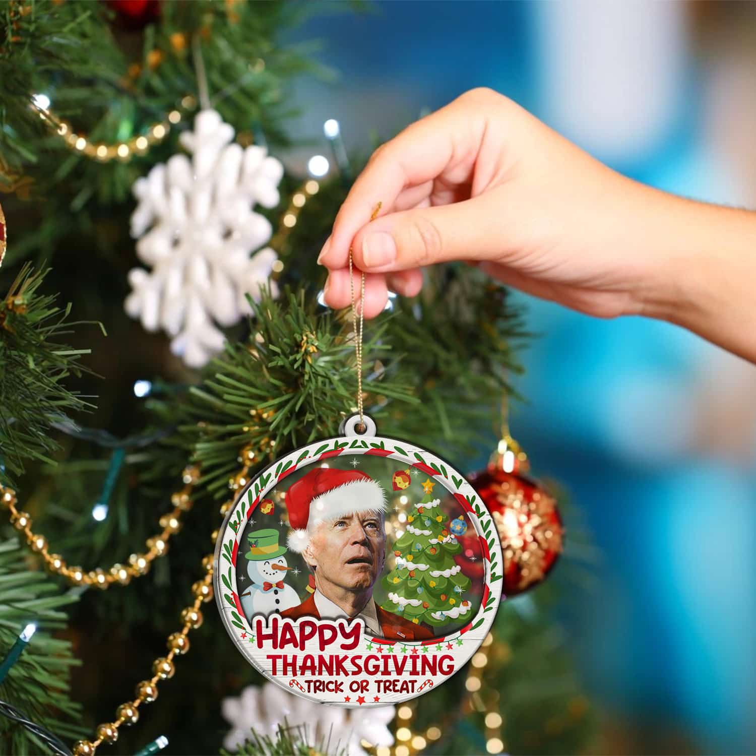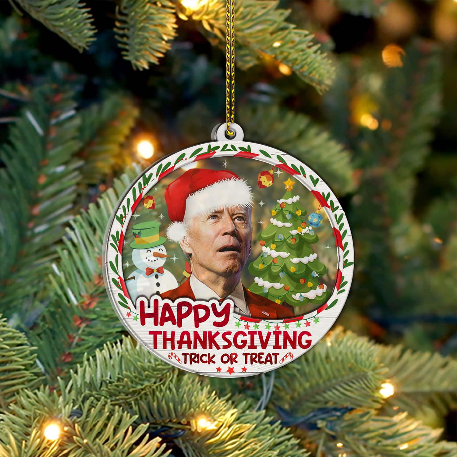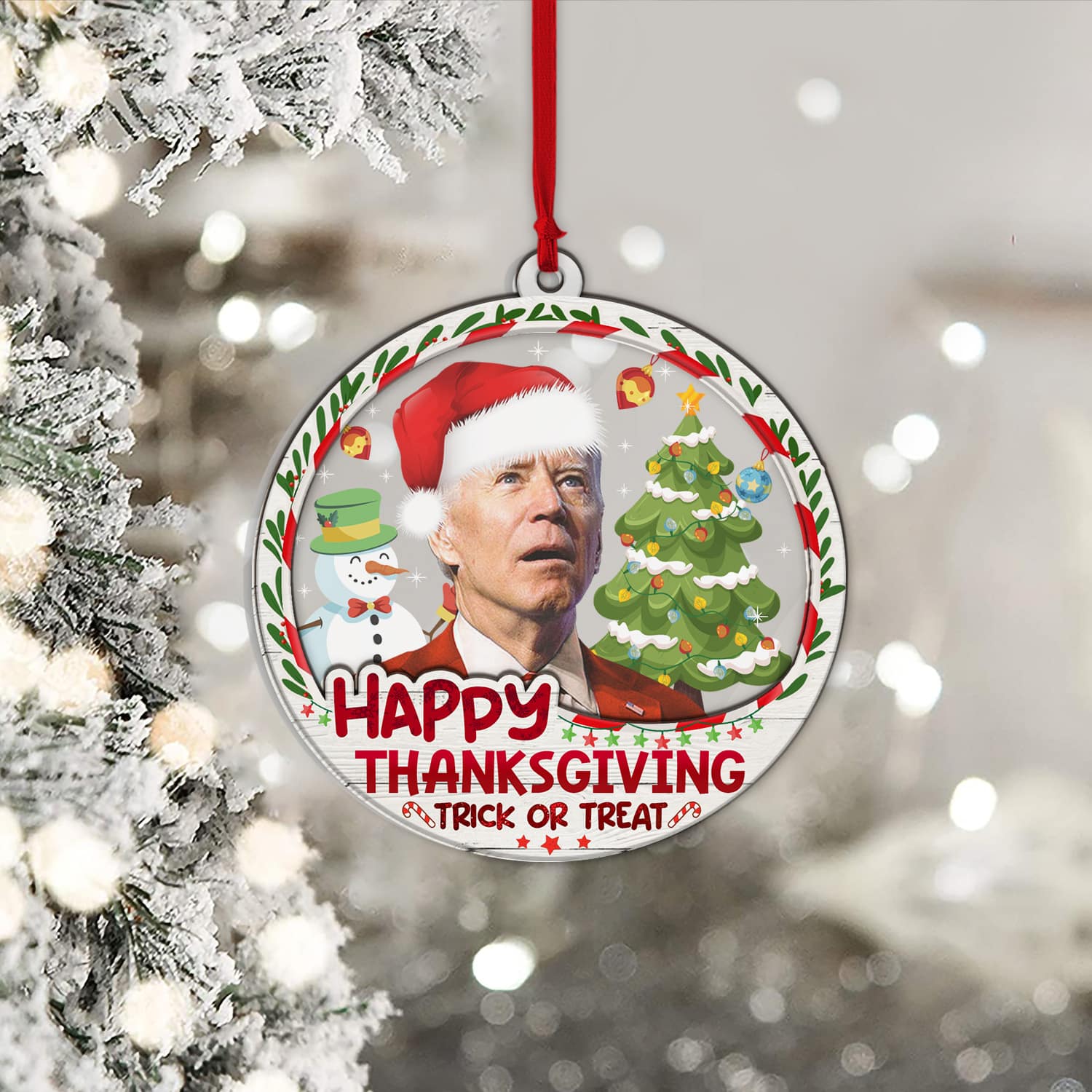 Let’s Shop Happy Thanksgiving Trick Or Treat Funny Biden Santa Acrylic Wood Christmas Ornament Keepsake!