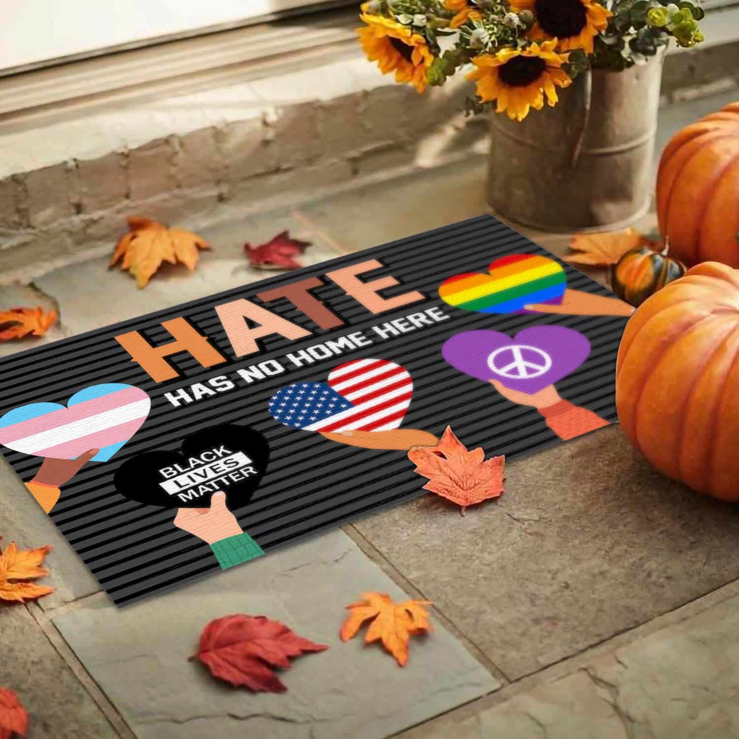 Let’s Shop Hate Has No Home Here Be Kind Indoor Outdoor Decorative Doormat!