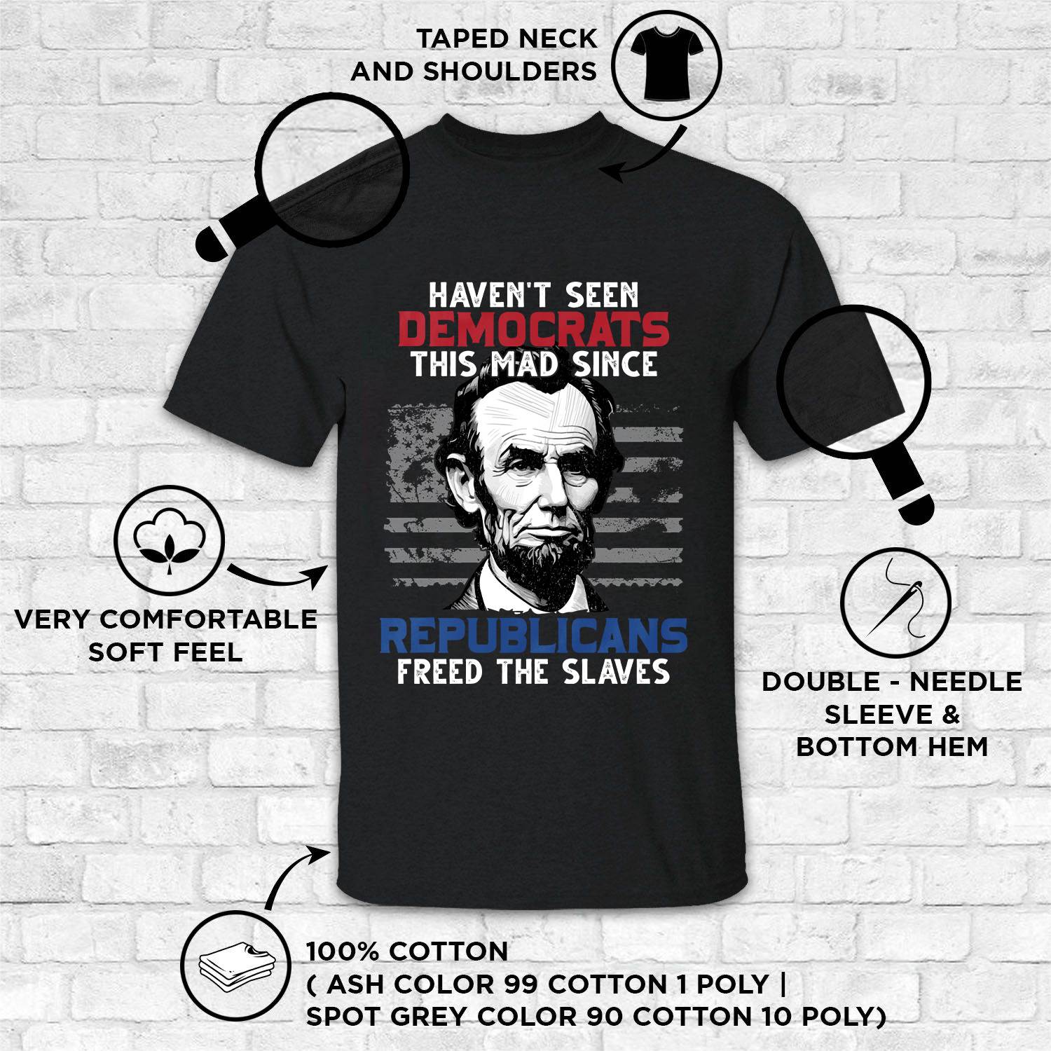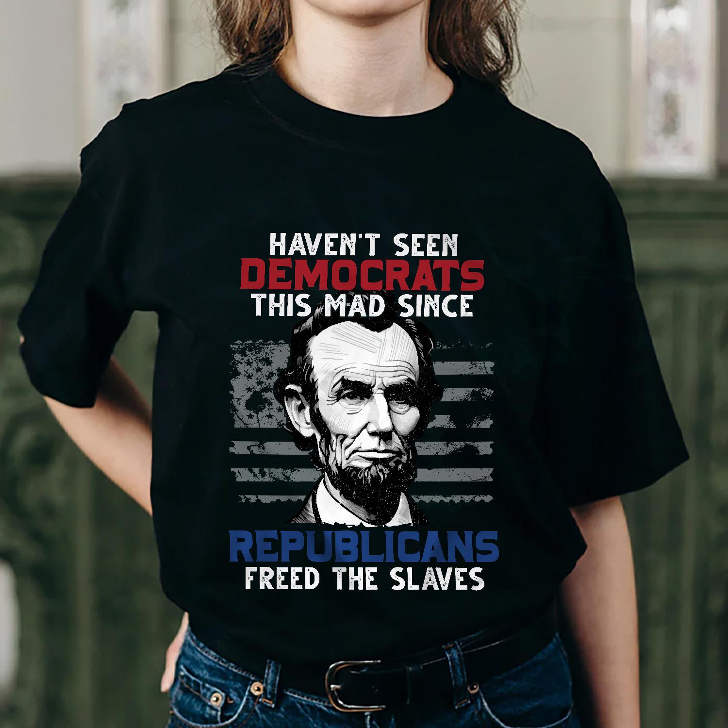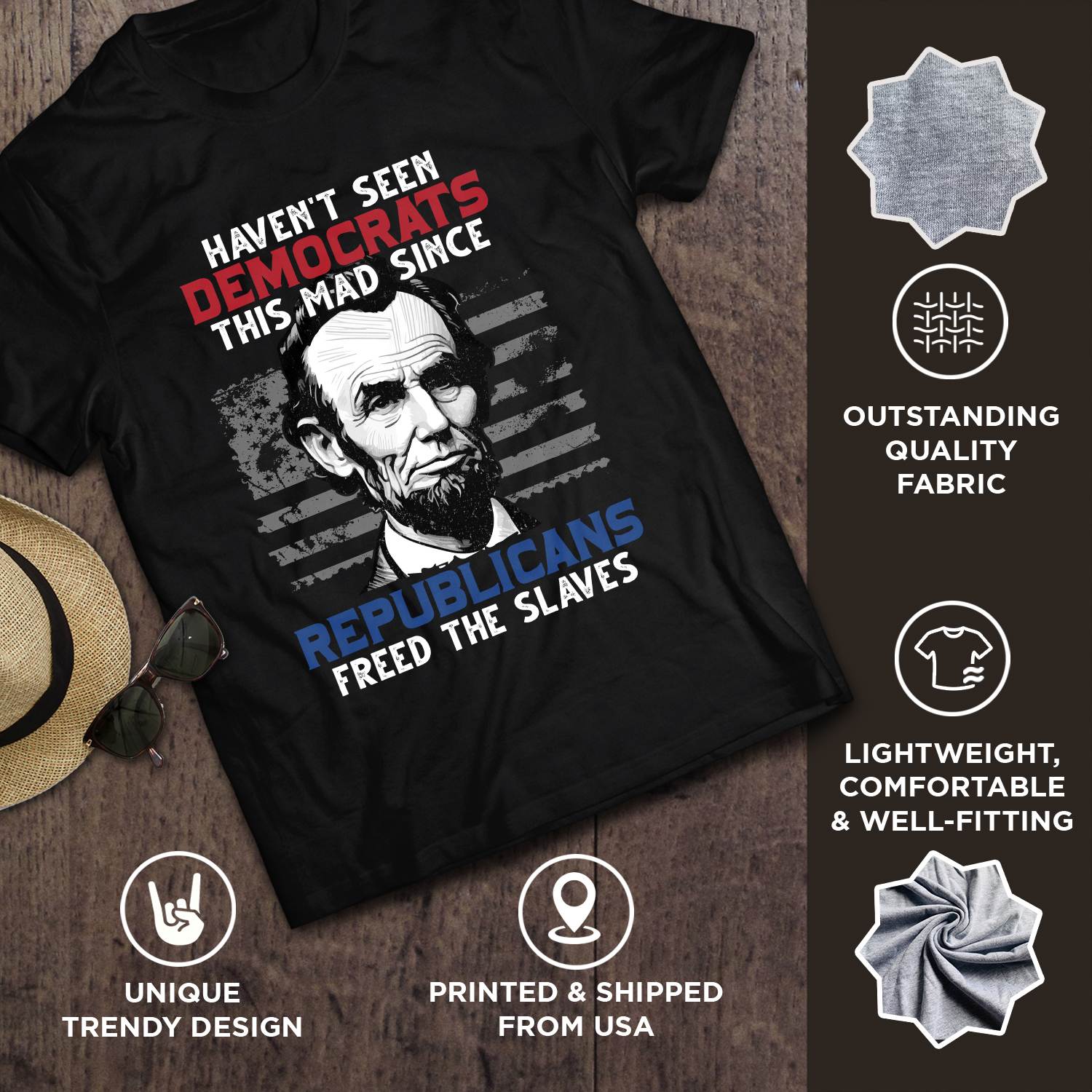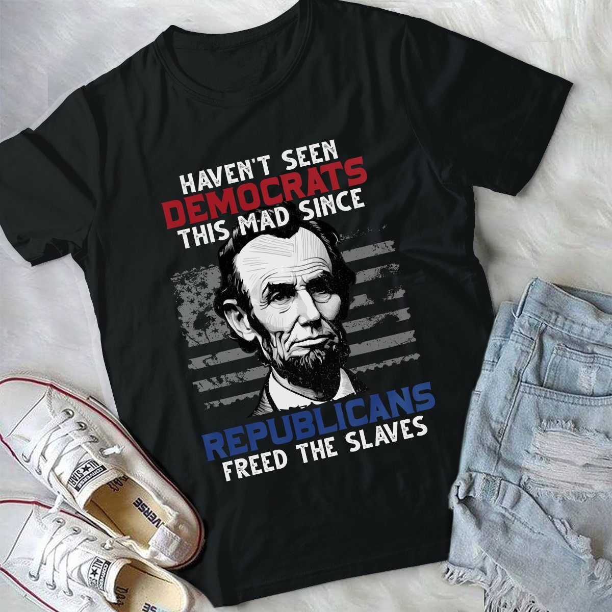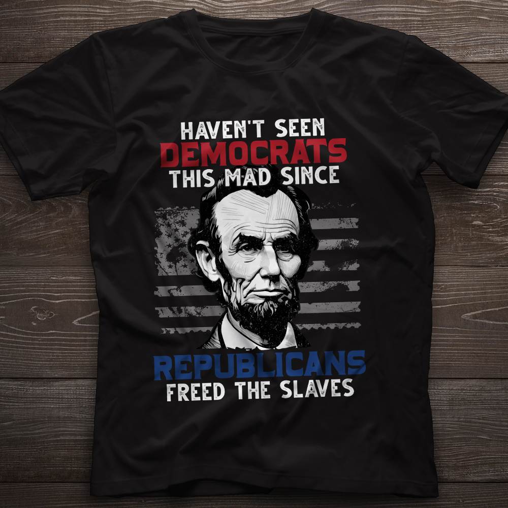 Are you spending too much time to find creative merchandise for you or suitable & special gifts for your mommy, your daddy, your son, your daughter, your children, your friends or someone you love? The struggle is over because we have various Haven’t Seen Democrats This Mad T-Shirt, Haven’t Seen Democrats This Mad, I Haven’t Seen Democrats This Mad, Haven’t Seen Democrats This Mad Since Republicans Freed the Slaves, Abraham Lincoln Shirt, Funny Abraham Lincoln Shirt, Abraham Lincoln Saying Shirt which will make perfect presents for your beloveds. In order to make your present stand out, we have created lots of unique and awesome customized photo gifts & personalized designs.