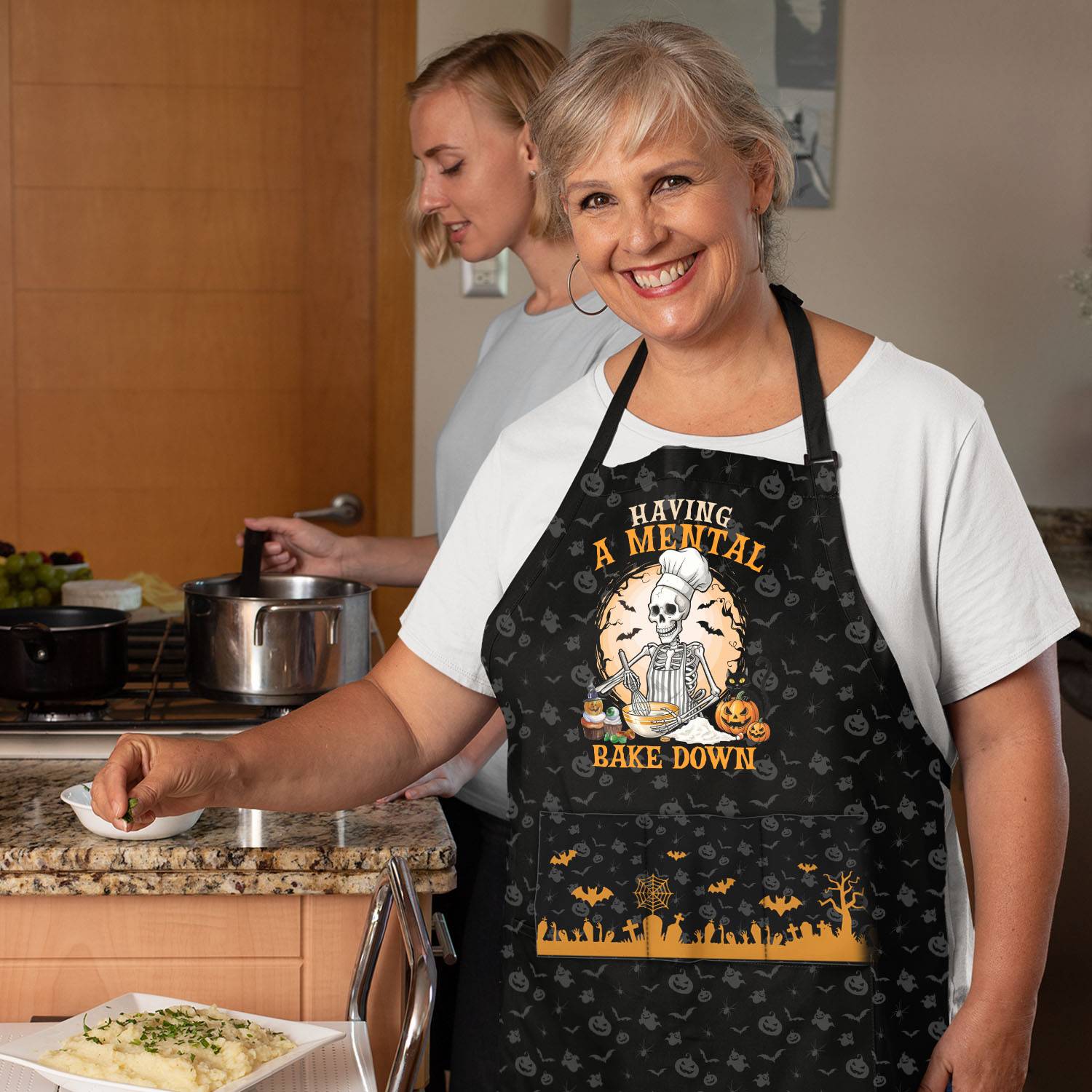 Let’s Shop Having a Mental Bake Down Funny Skeleton Baking Cooking Apron With 3 Pockets – Adjustable Neck Strap Fits All Sizes!