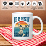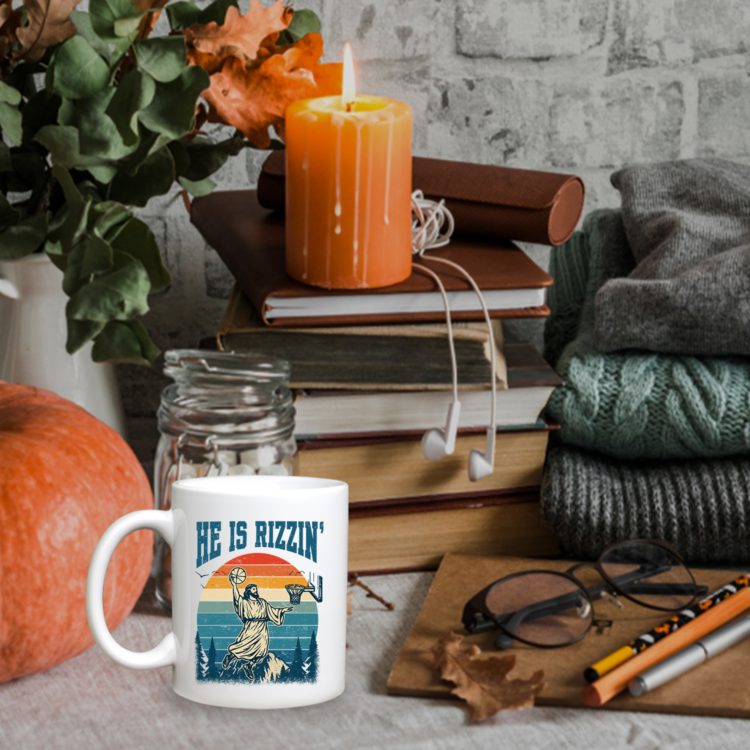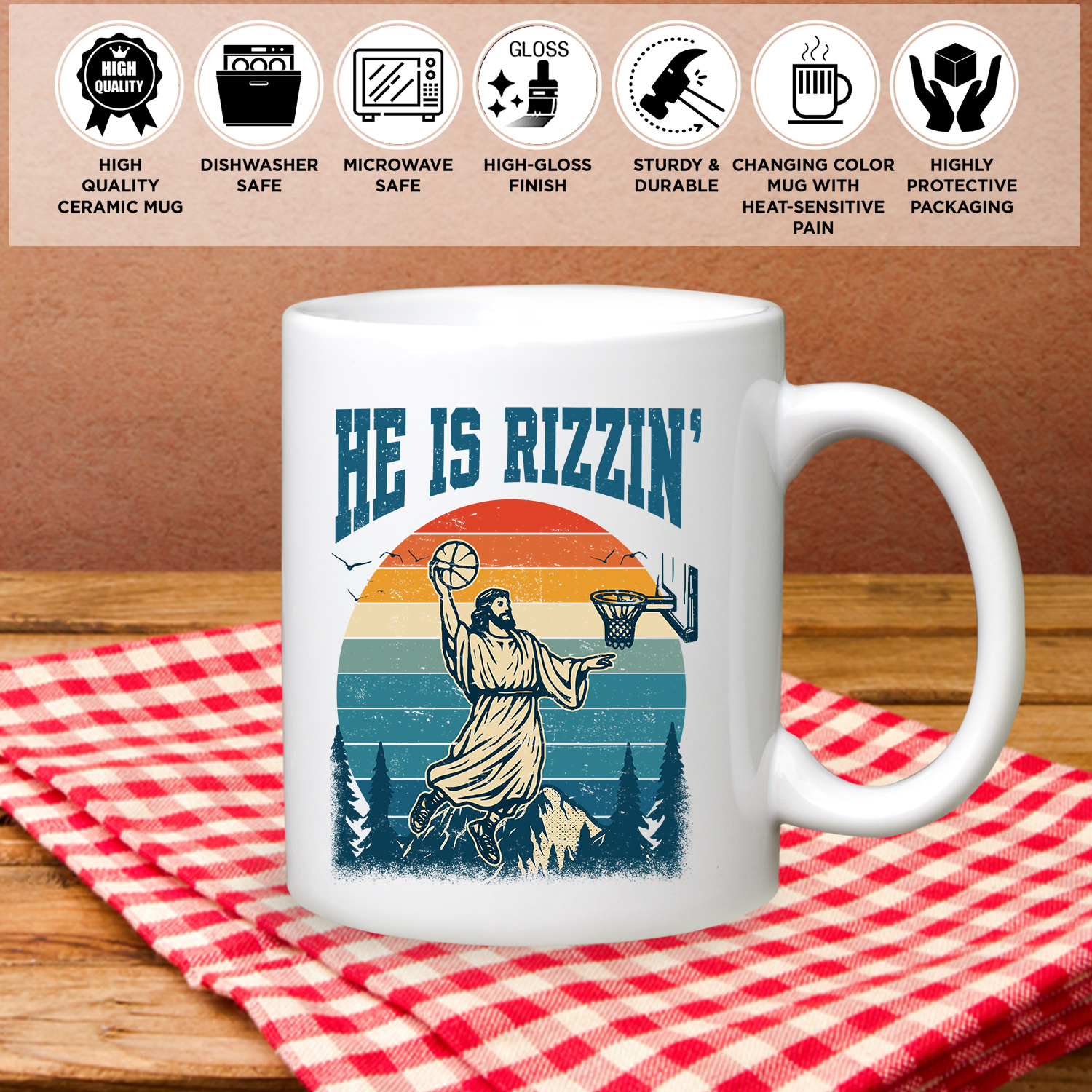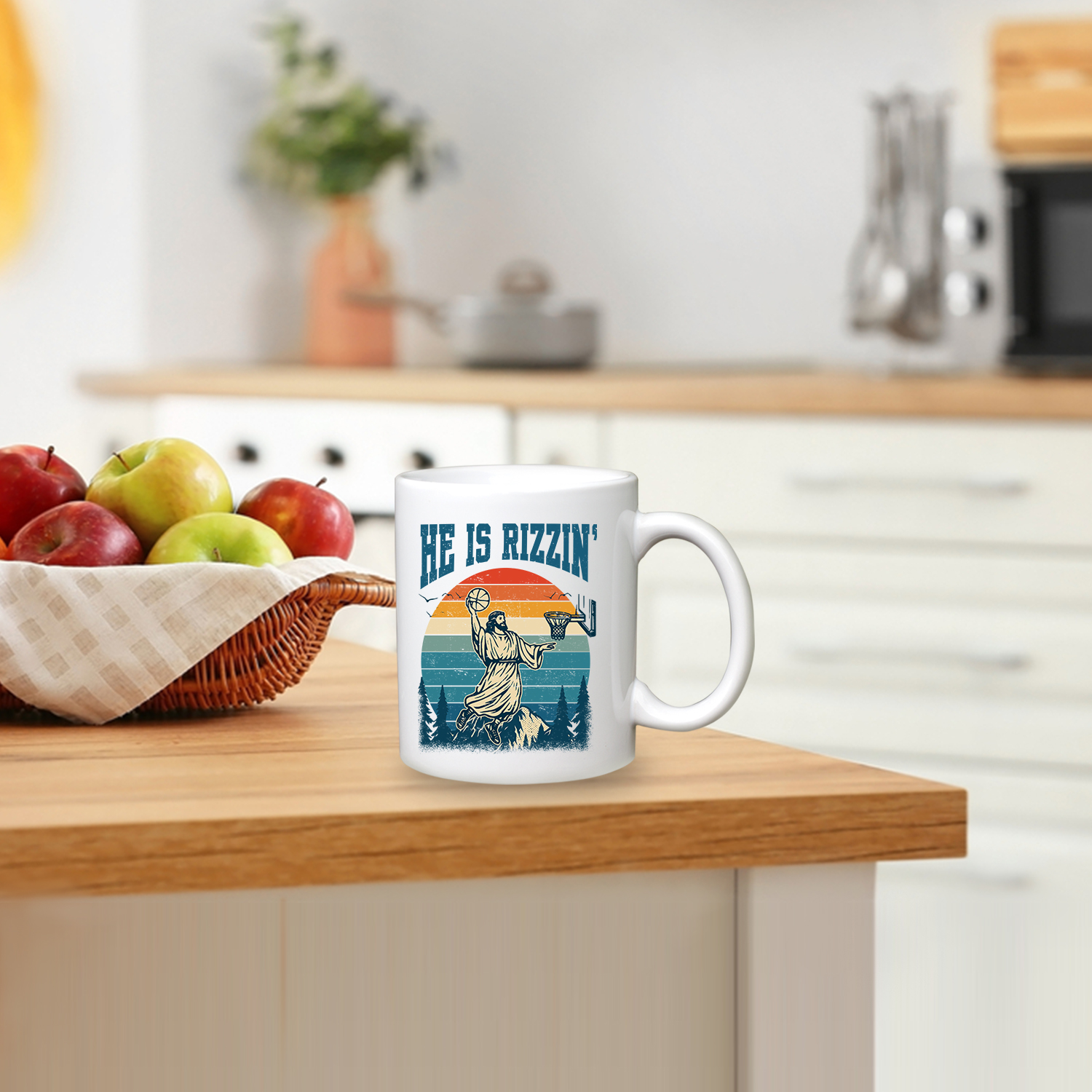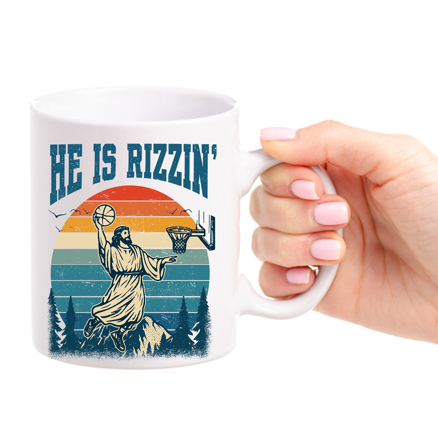 Let’s Shop He Is Rizzin Funny Jesus Basketball Vintage Retro Religious Ceramic Coffee Mug – Beer Stein – Water Bottle!