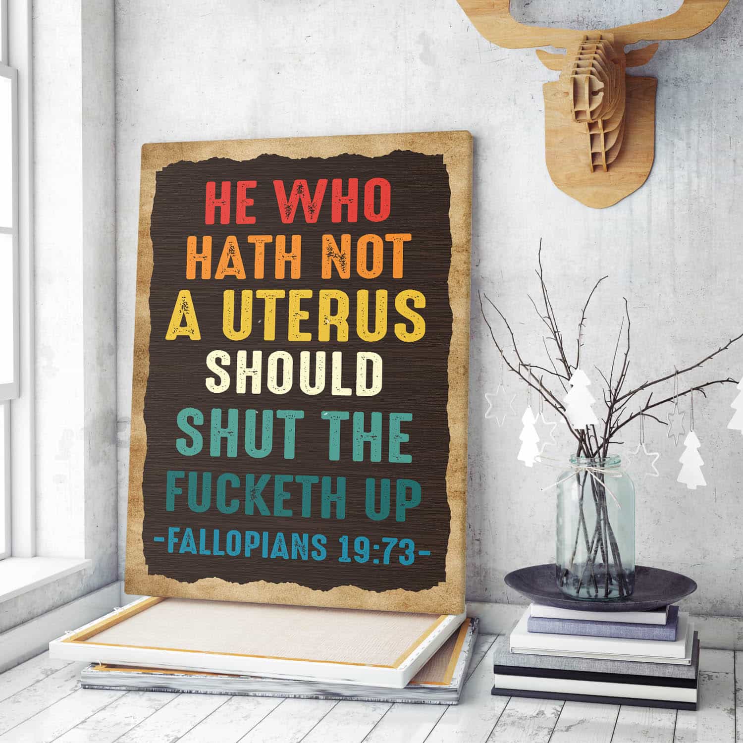 Let’s Shop He Who Hath Not Shut the Fucketh Up Vintage Framed Canvas Unframed Poster – Fallopians 19:73 Wall Art Decor!