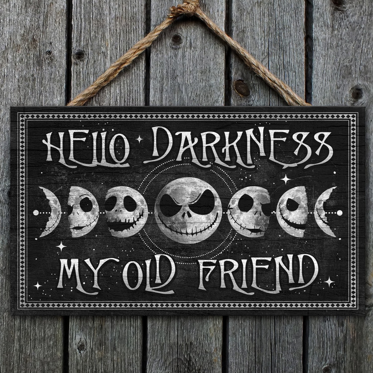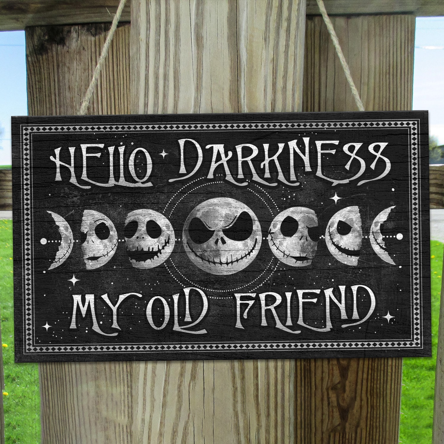 Let’s Shop Hello Darkness My Old Friend Jack Skellington Moon Decorative Rectangle Wooden Door Sign-Indoor Outdoor Decor Farmhouse!