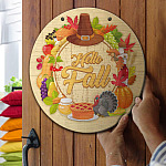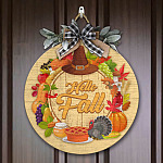 Let’s Shop Hello Fall Door Hanger Fall and Harvest Decor Sign Decorative Circle Wooden Door Sign – Front Porch Sign!
