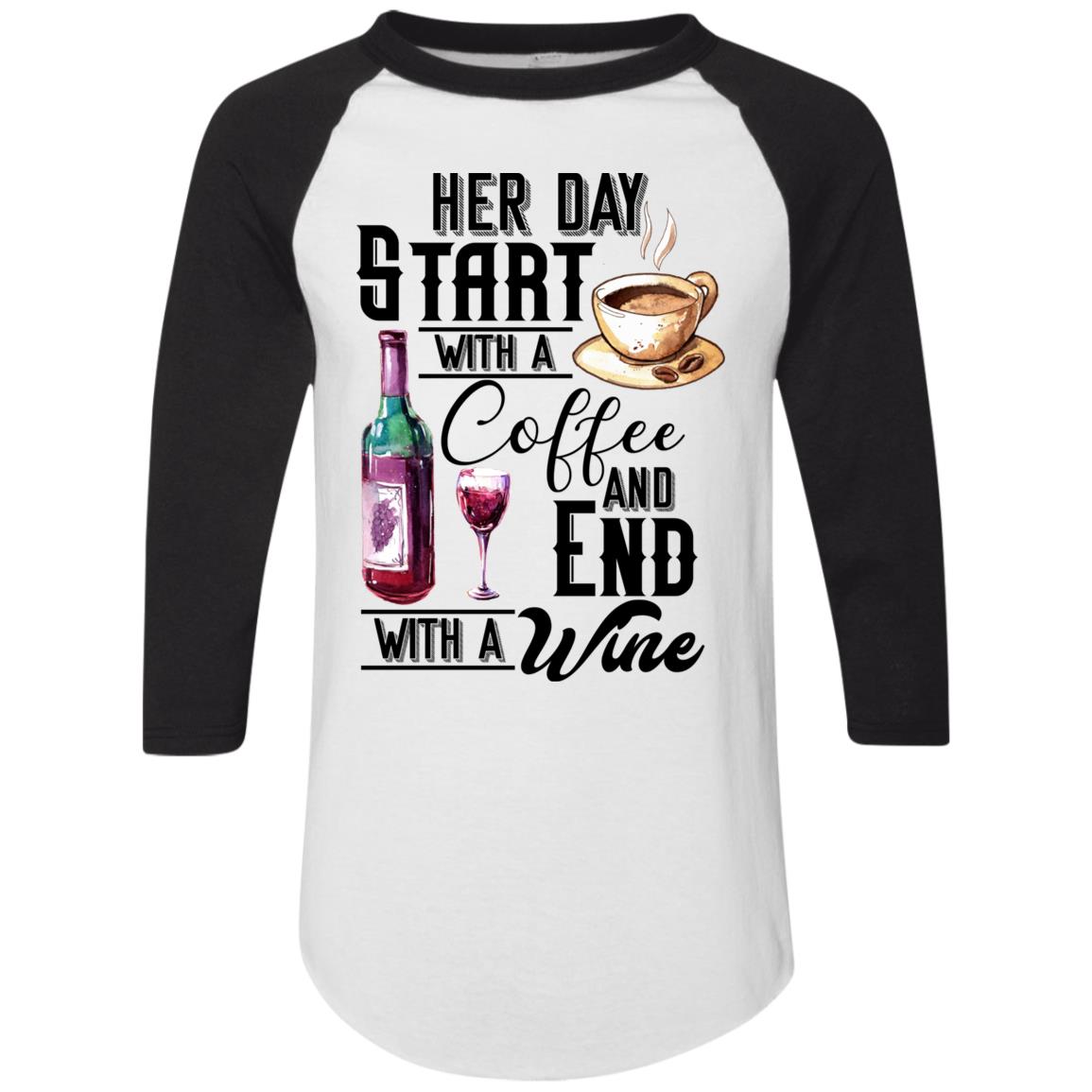 Her Day Start With A Coffee and End With A Wine 3/4 Raglan Jersey – Long Sleeve Shirt – Baseball Tee
