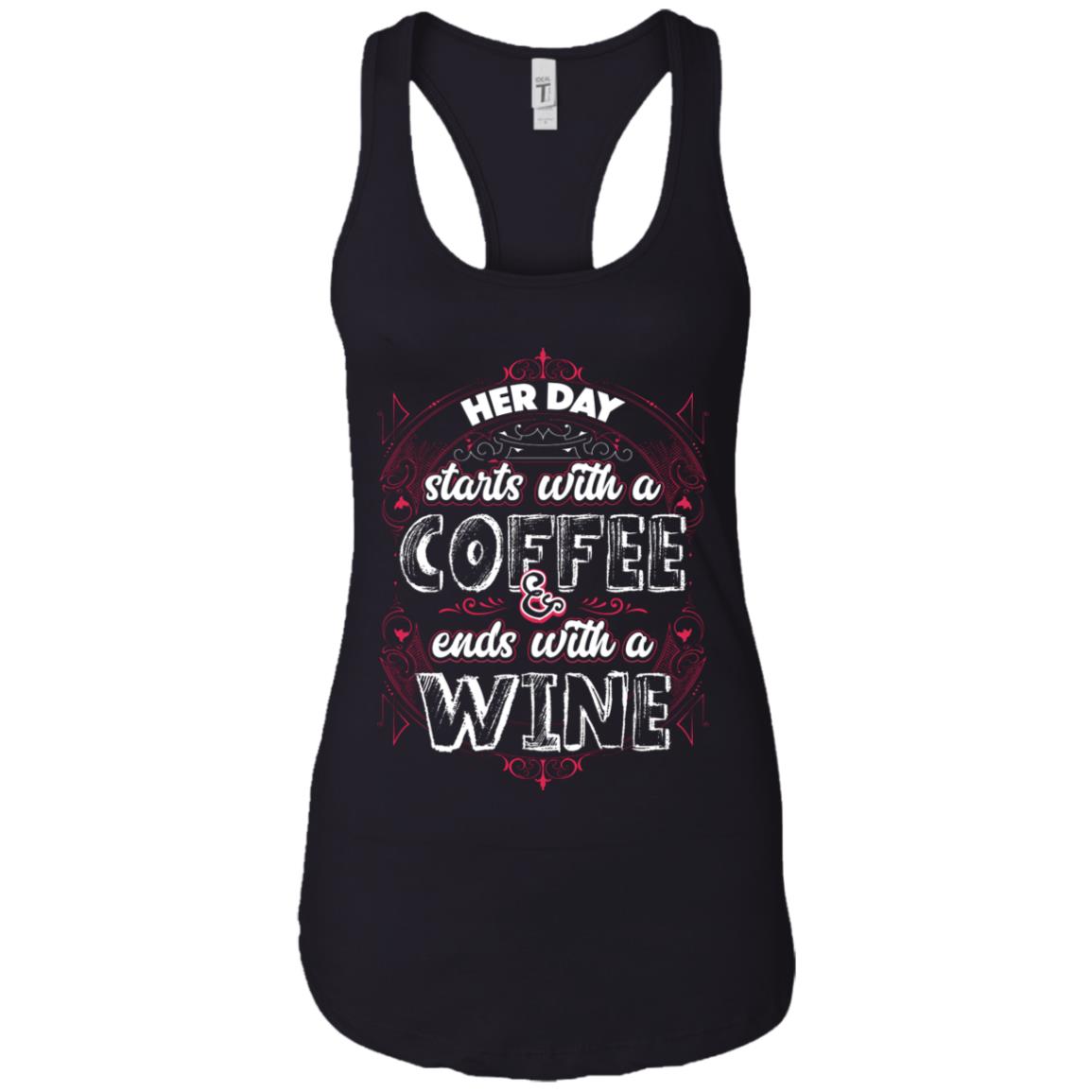 Her Day Starts With A Coffee & Ends With A Wine Cotton Tank Top Tee – Ladies Racerback Tank