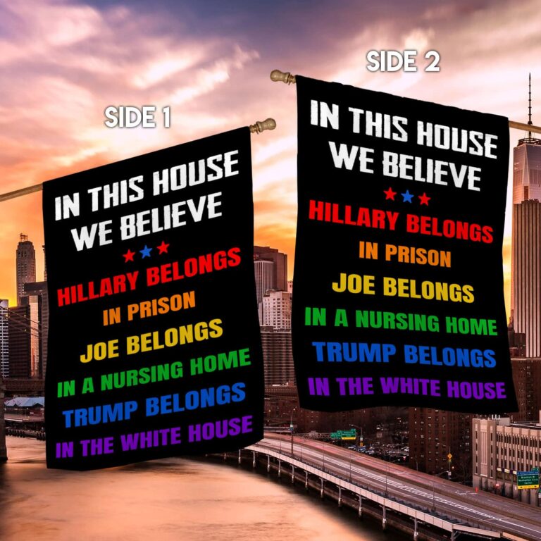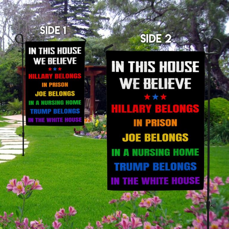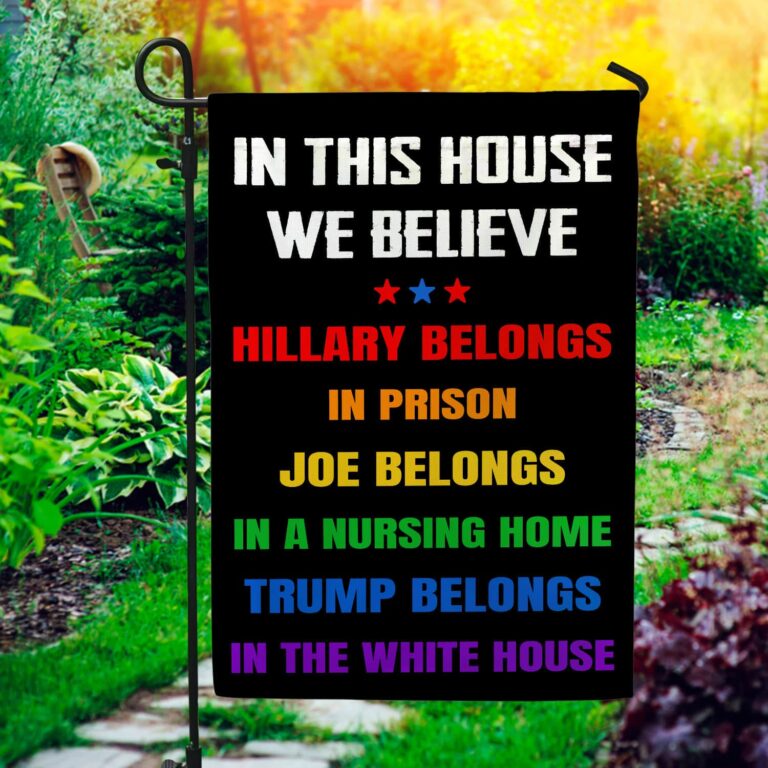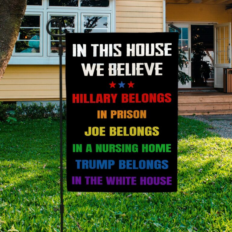 Are you spending too much time to find creative merchandise for you or suitable & special gifts for your mommy, your daddy, your son, your daughter, your children, your friends or someone you love? The struggle is over because we have various In This House We Believe Hillary Flag, In This House We Believe Hillary Belongs In Prison Flag, In This House We Believe Sign Hillary, Joe Belongs In A Nursing Home Flag, Anti Biden Flag, Anti Biden Garden Flag, In This House We Believe Flag Trump, In This House We Believe Garden Flag, In This House We Believe Hillary Belongs In Prison Joe Belongs, In This House We Believe Flag Trump Won which will make perfect presents for your beloveds. In order to make your present stand out, we have created lots of unique and awesome customized photo gifts & personalized designs.