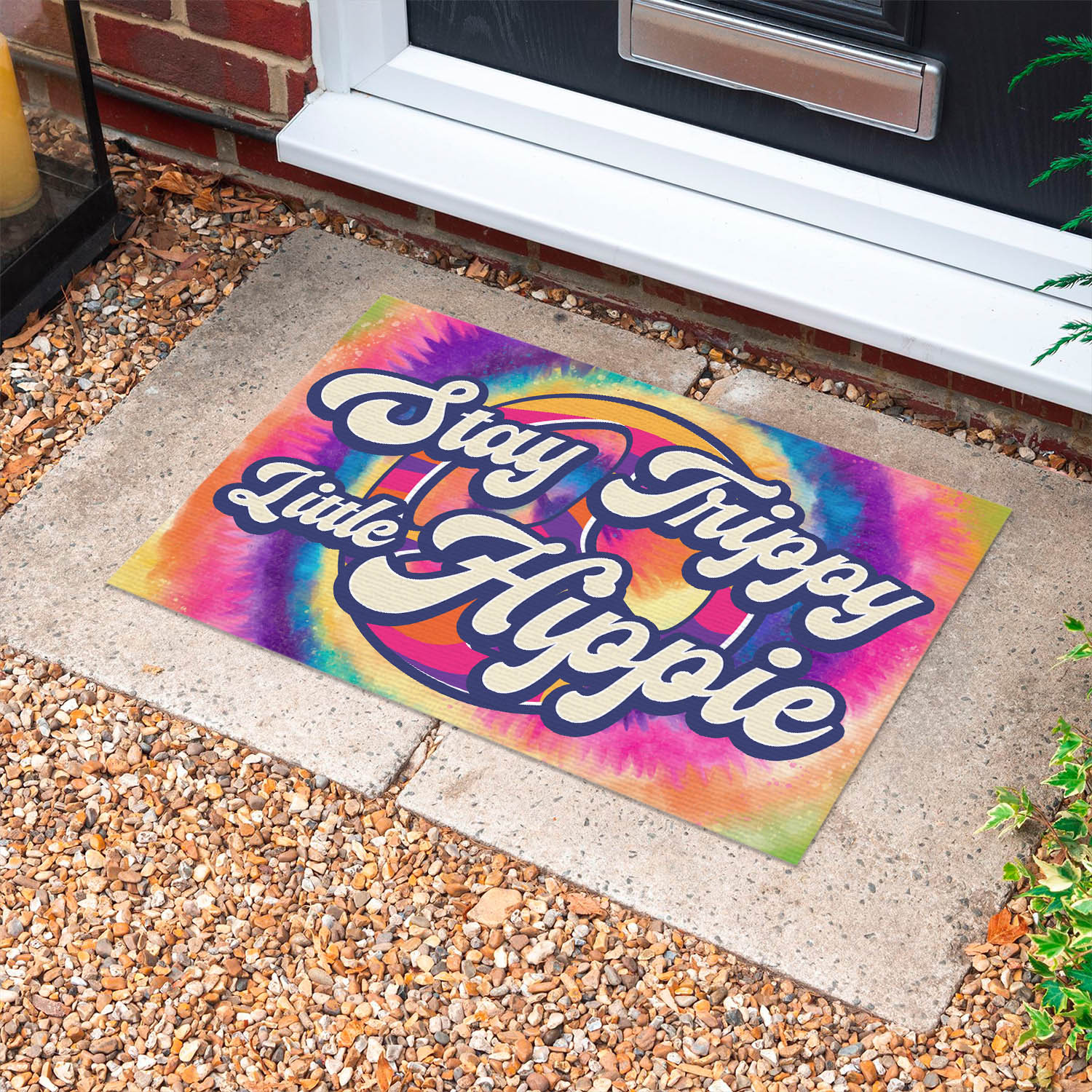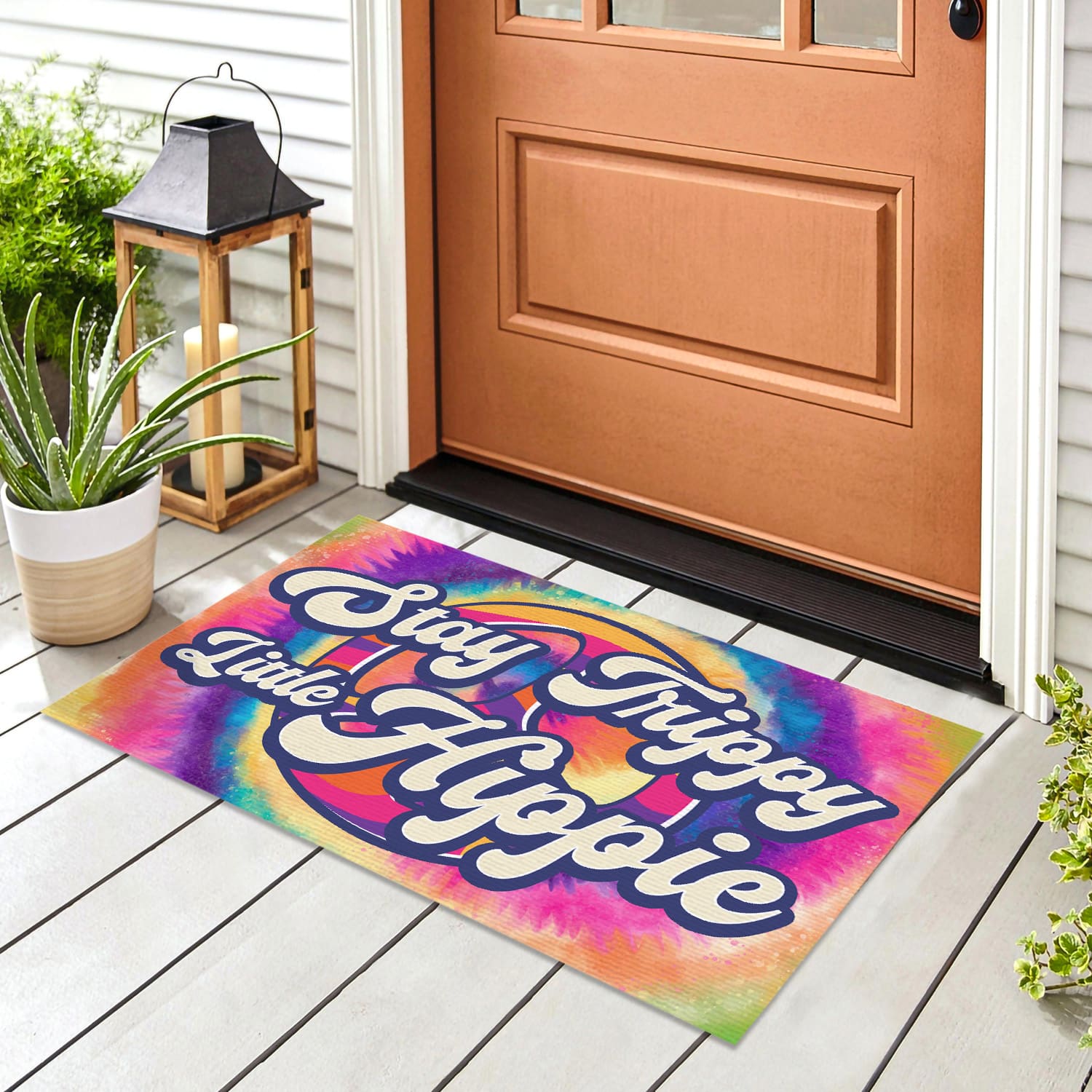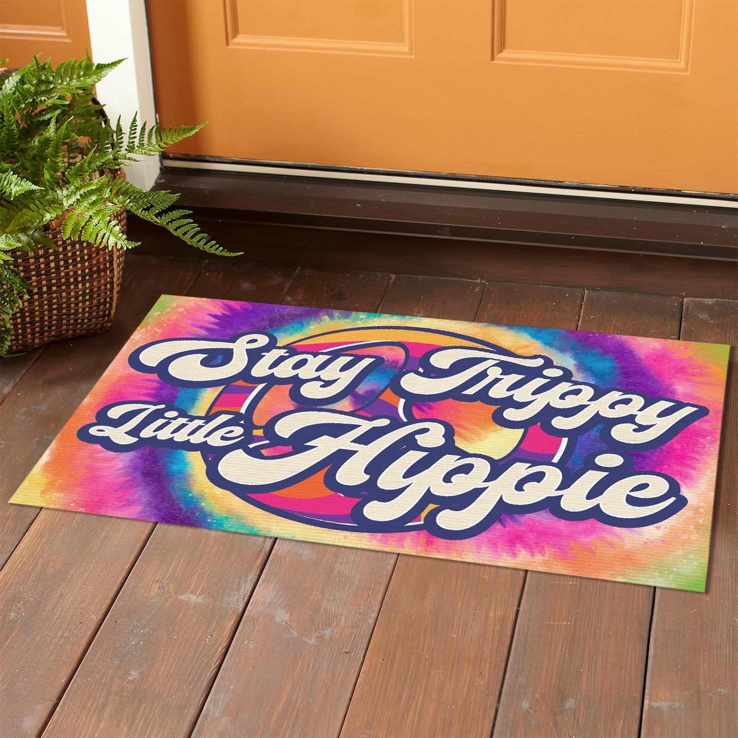 Let’s Shop Stay Trippie Little Hippie Peace Sign Doormat – Funny Hippie Indoor Outdoor Doormat!