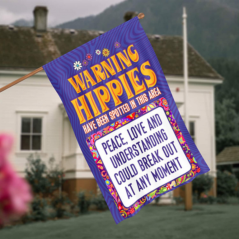 Let’s Shop Warning Hippies Have Been Spotted in This Area Decorative Garden Flag – House Flag – Funny Hippies Flag!
