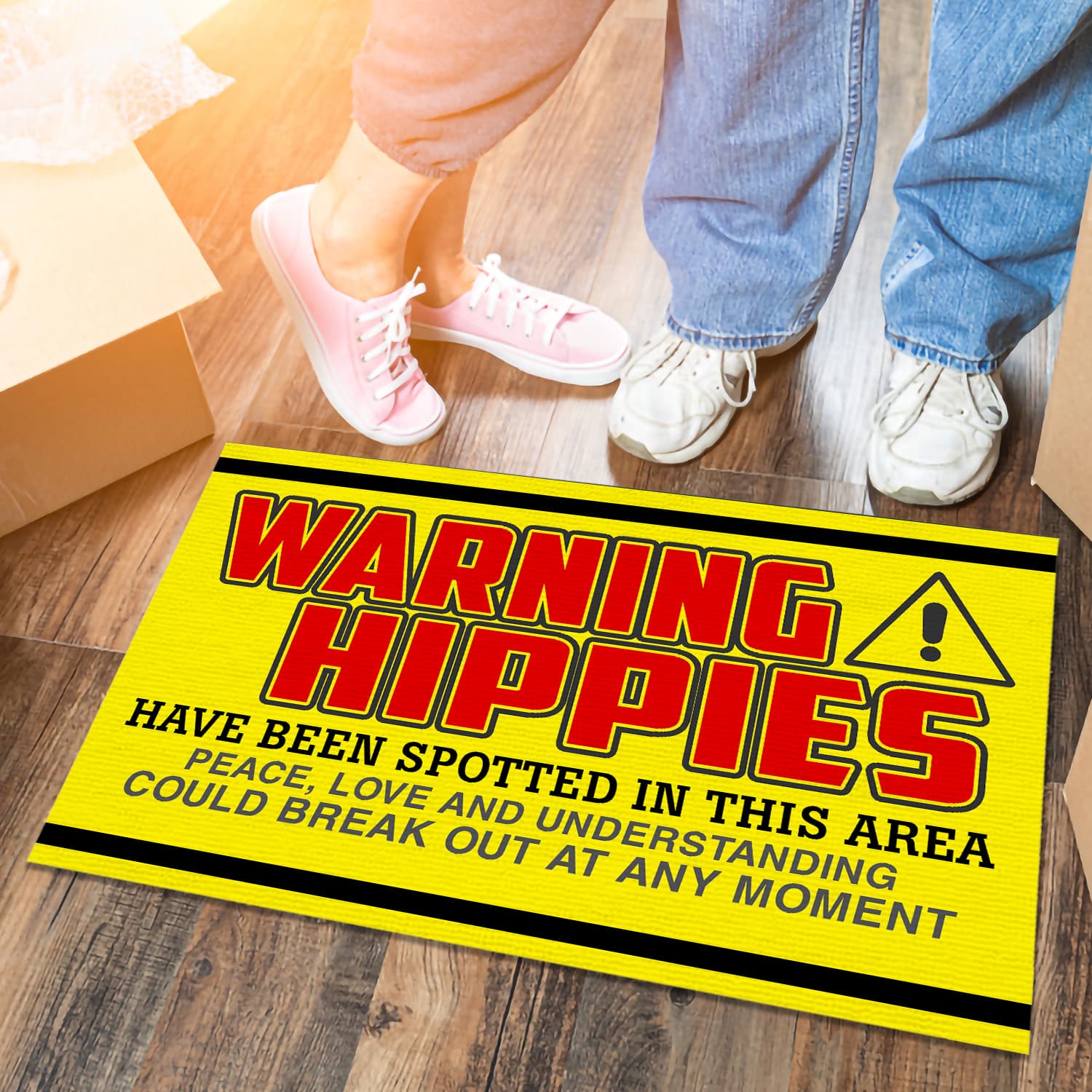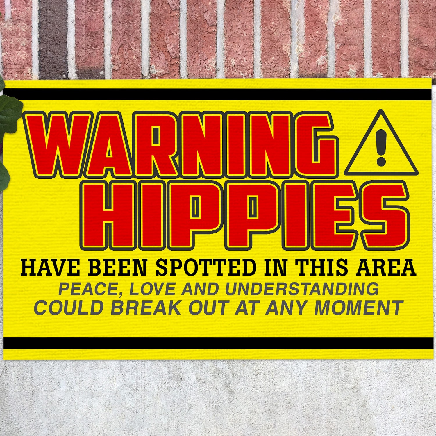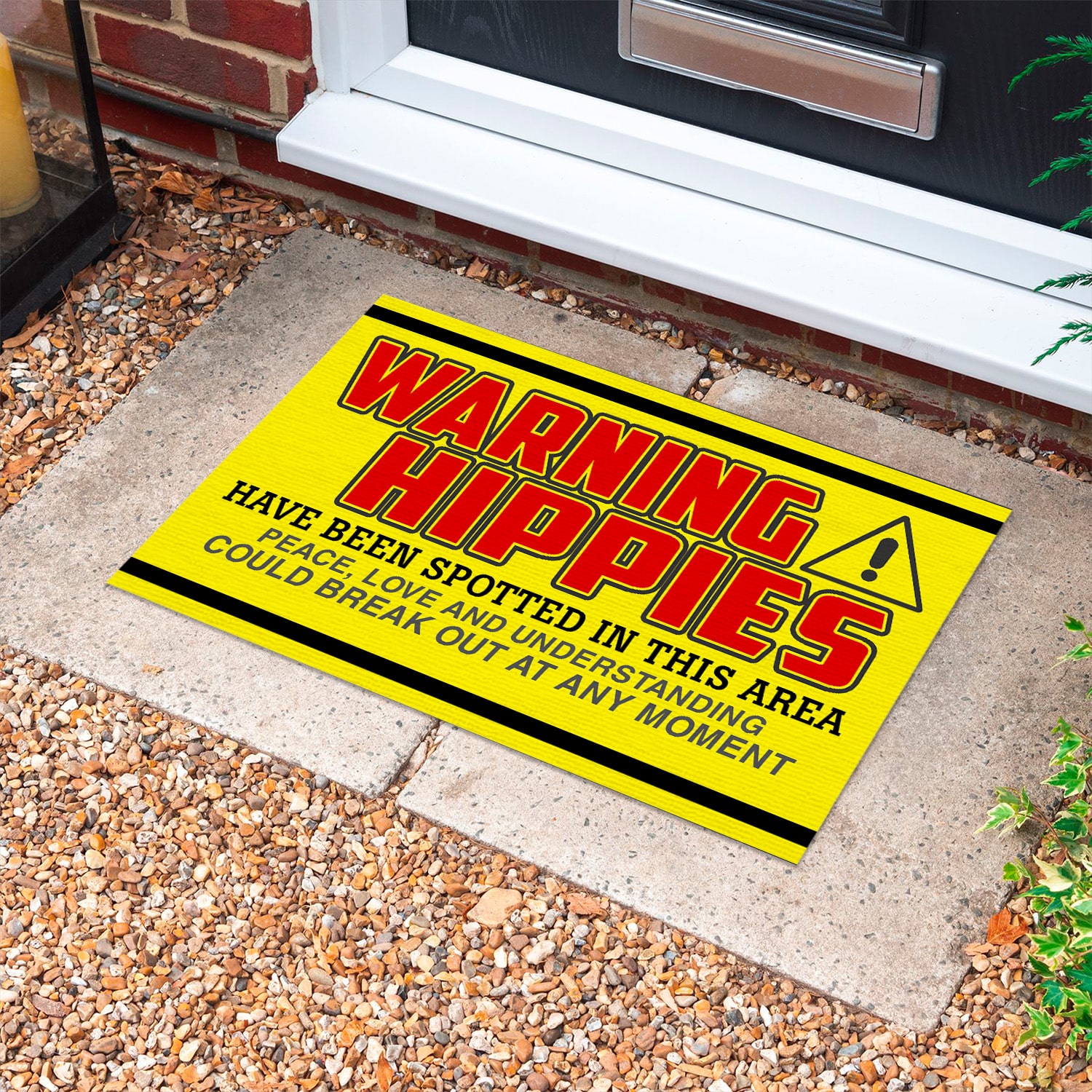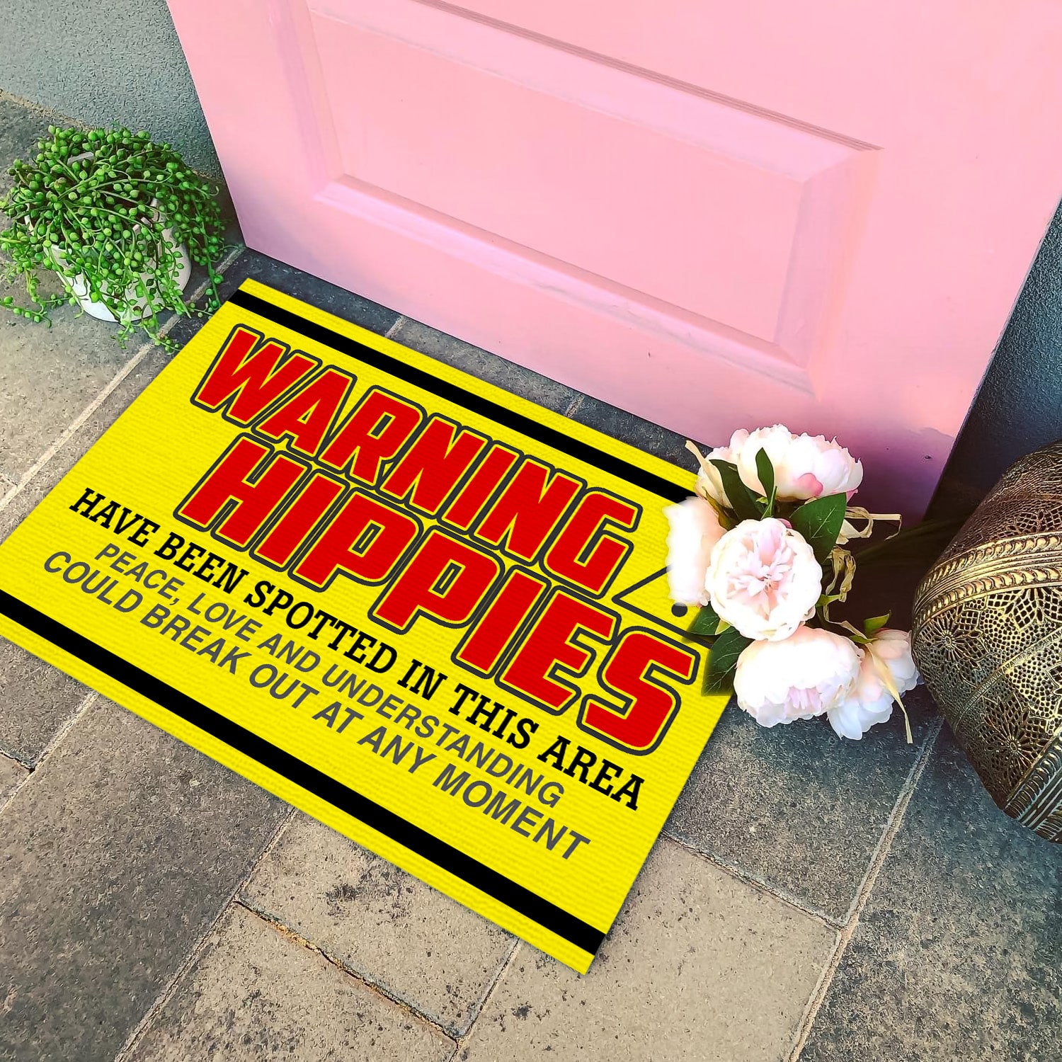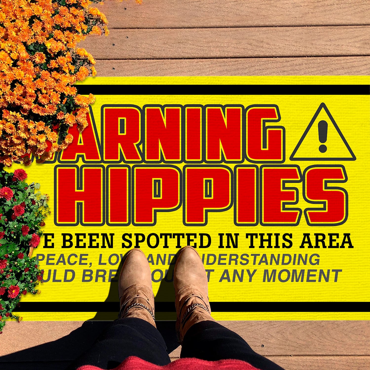 Let’s Shop Warning Hippies Have Been Spotted In This Area Doormat – Outdoor Indoor Doormat – Hippies Door Mat!
