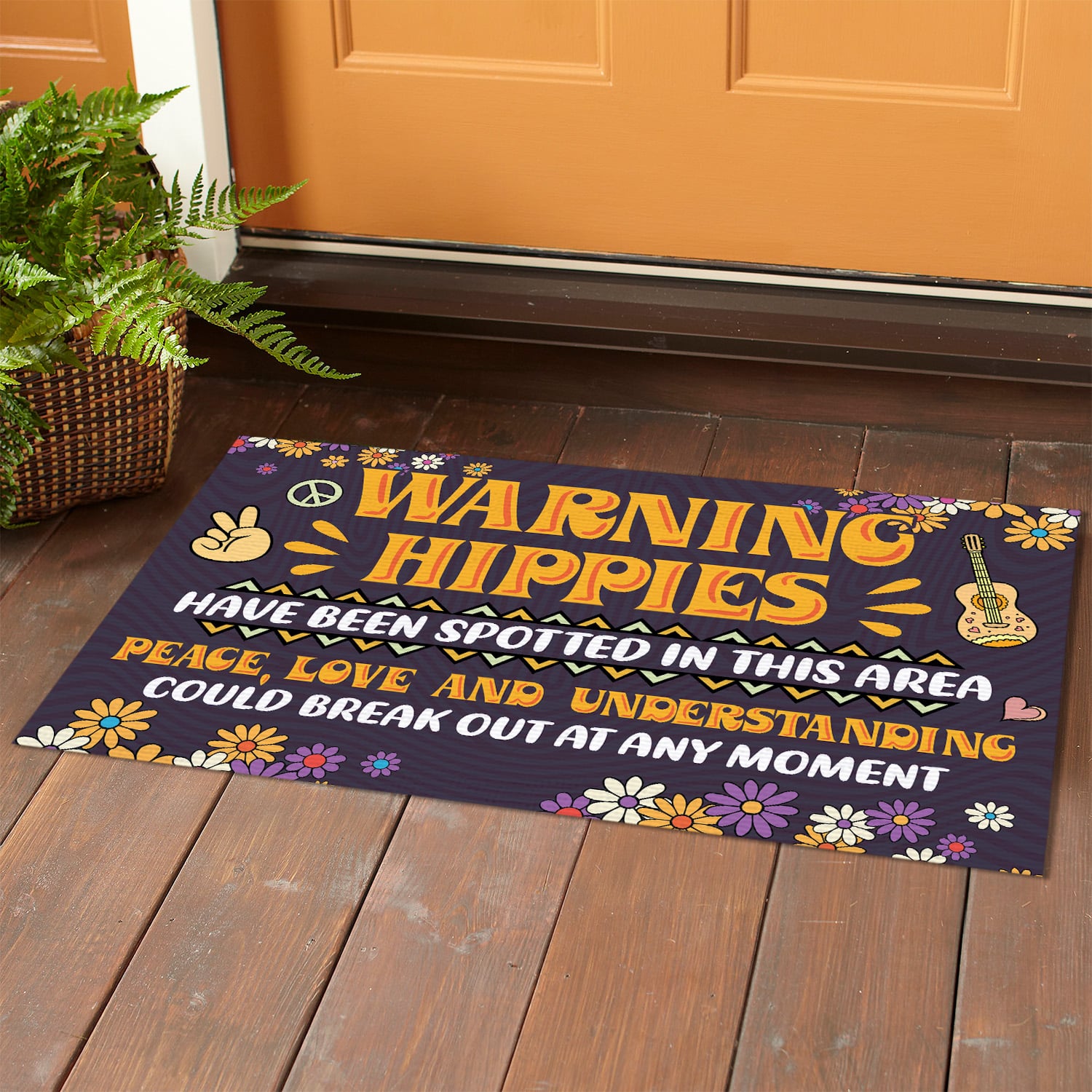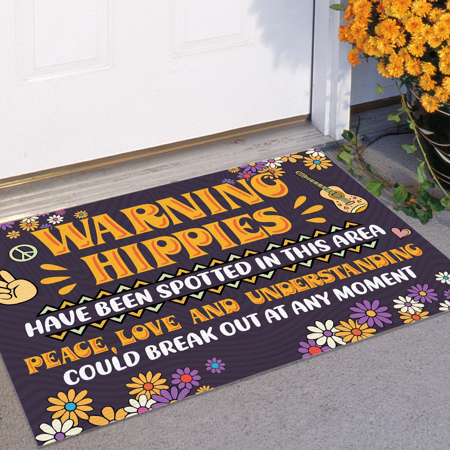 Let’s Shop Warning Hippie Have Been Spotted In This Area Peace Love Understanding Indoor Outdoor Doormat!