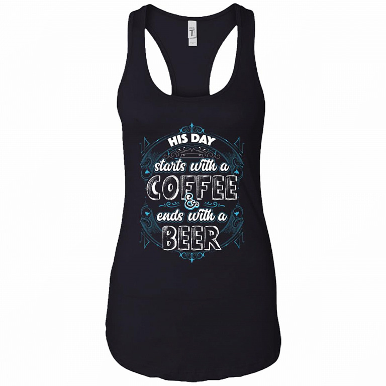 His Day Starts With A Coffee & Ends With A Beer Cotton Tank Top Tee – Ladies Racerback Tank