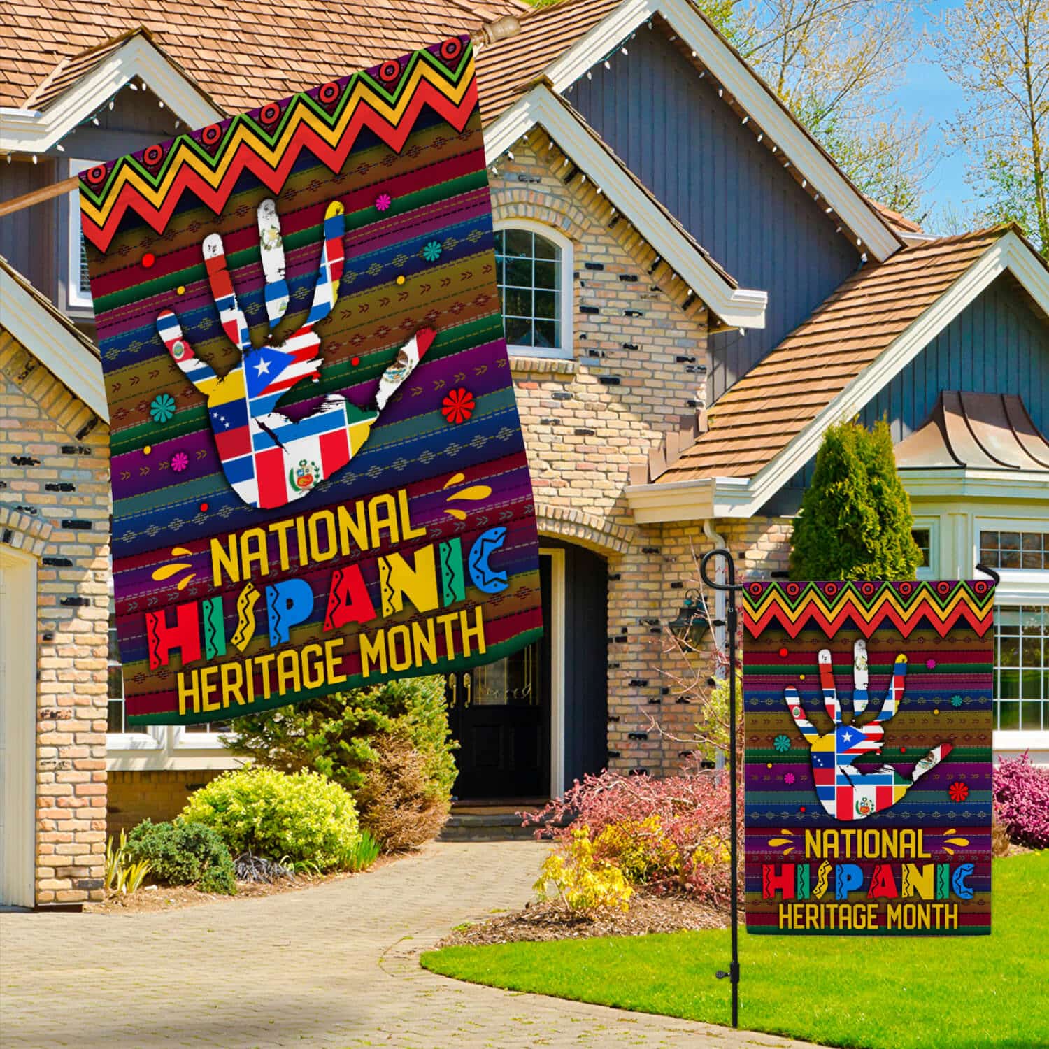 Let’s Shop National Hispanic Heritage Month All Countries Hand Flag – Hispanic Latin American Garden Flag – House Flag!