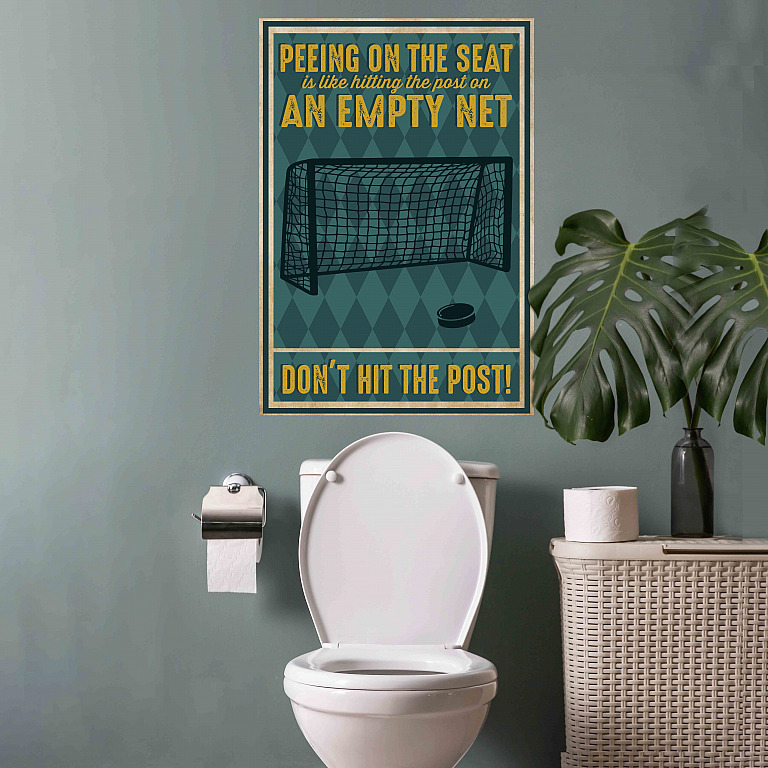 Let’s Shop Peeing On The Seat Is Like Hitting The Post On An Empty Net Funny Ice Hockey Toilet Canvas Prints – Unframed Poster!