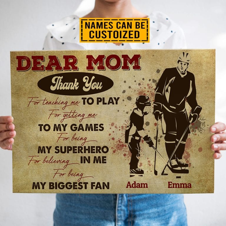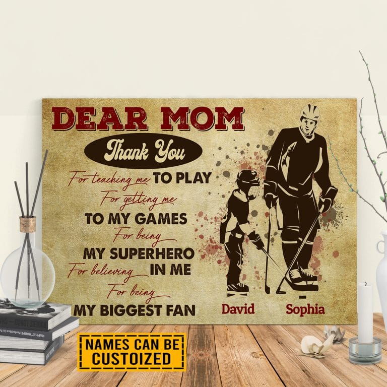 Let’s Shop Hockey Dear Mom Thank You For Teaching Me To Play Personalized Mother’s Day Framed Canvas – Unframed Poster!