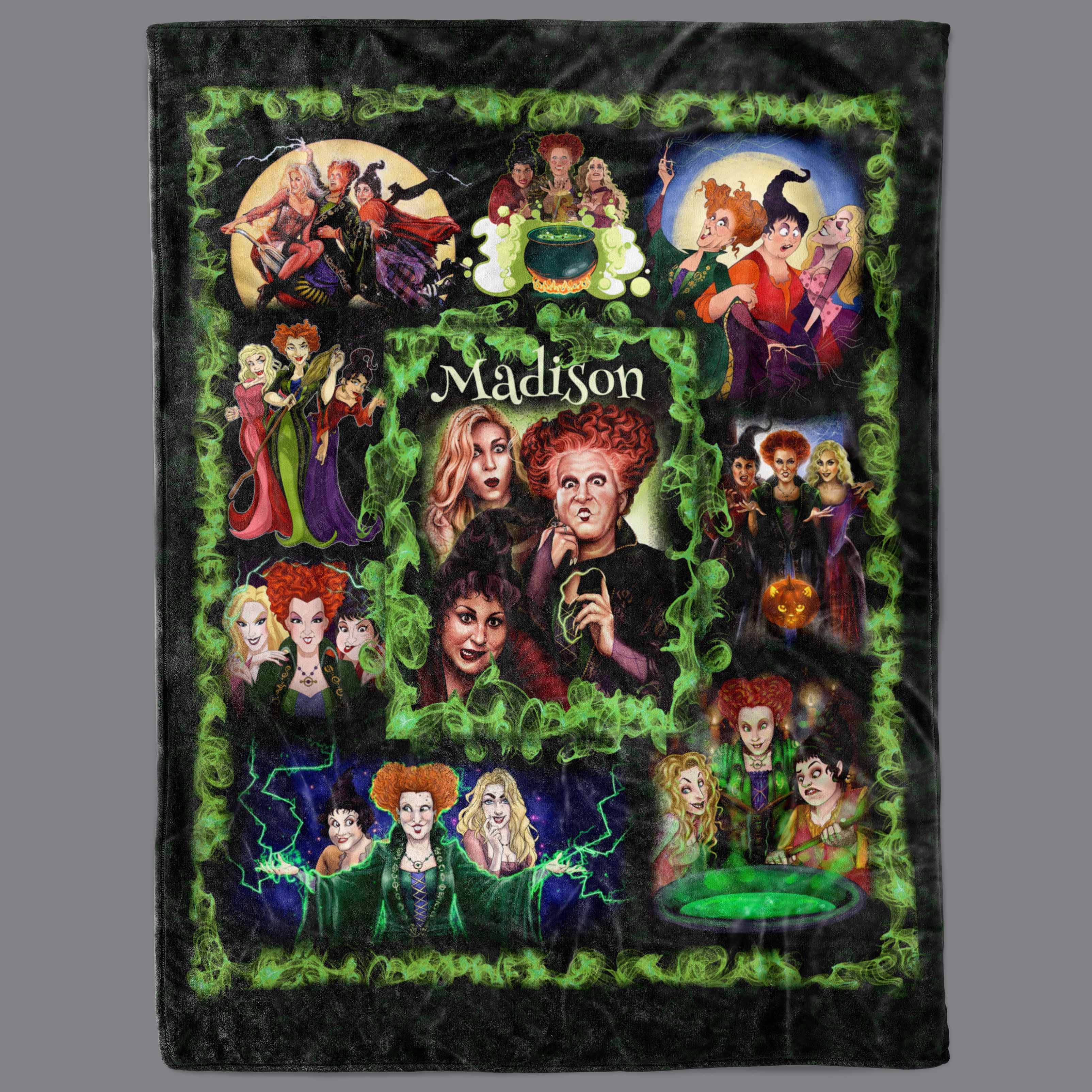 Let’s Shop Personalized Halloween Three Witches Hocus Fleece Blanket – Sherpa Blanket – Woven Blanket!