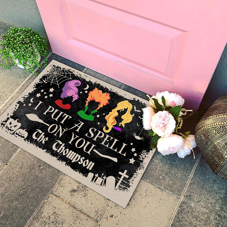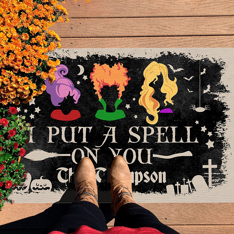 Let’s Shop Personalized I Put A Spell On You Sanderson Sisters House Doormat – Custom Hocus Pocus Outdoor Doormat!