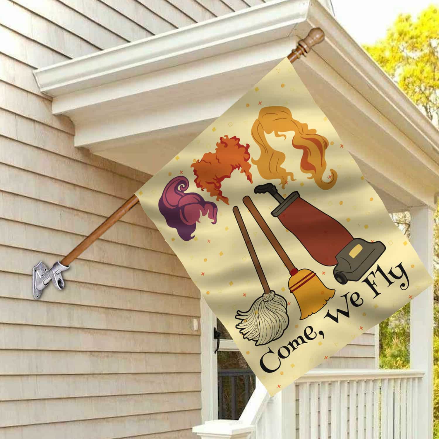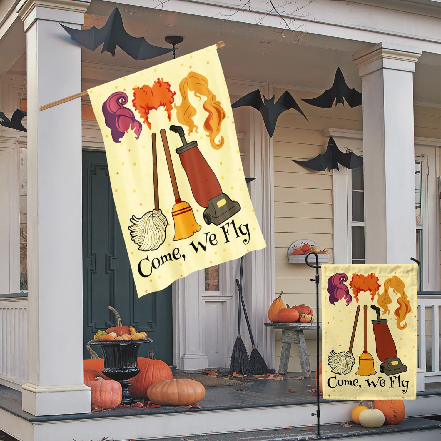 Let’s Shop Halloween Hocus Pocus Come We Fly Sanderson Sisters Outdoor Indoor Garden Flag – House Flag – Wall Flag!