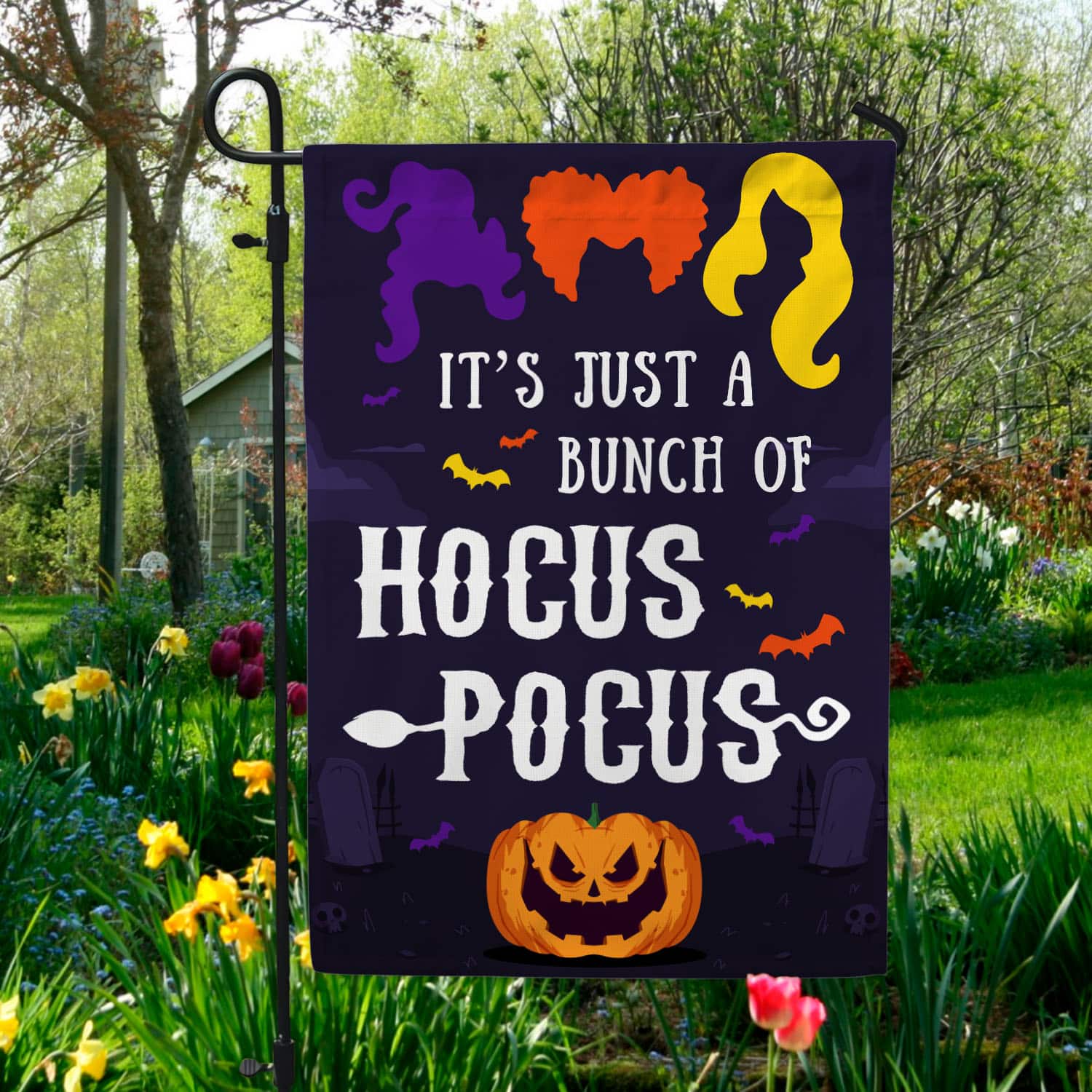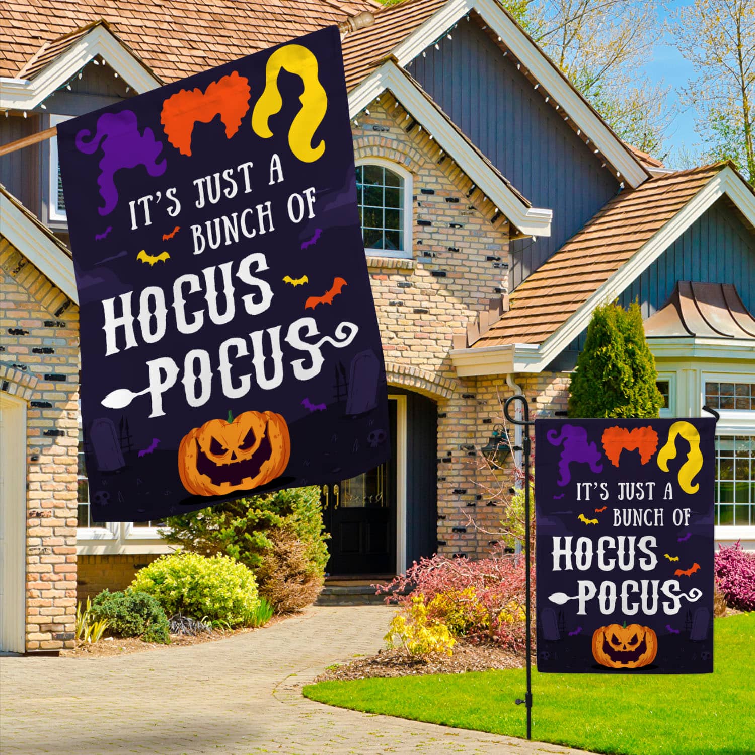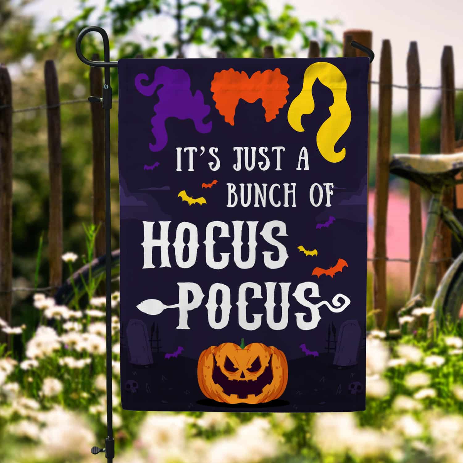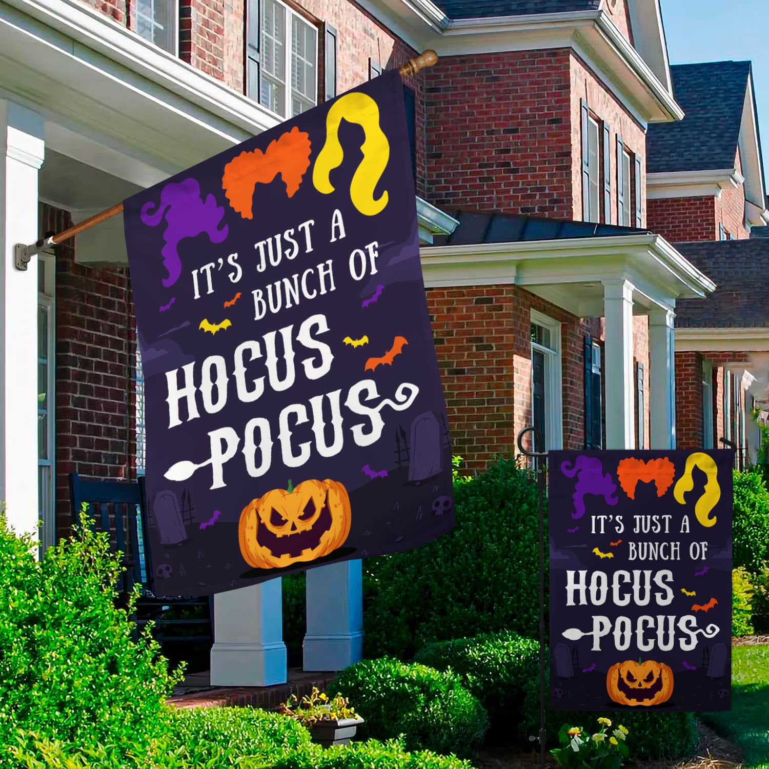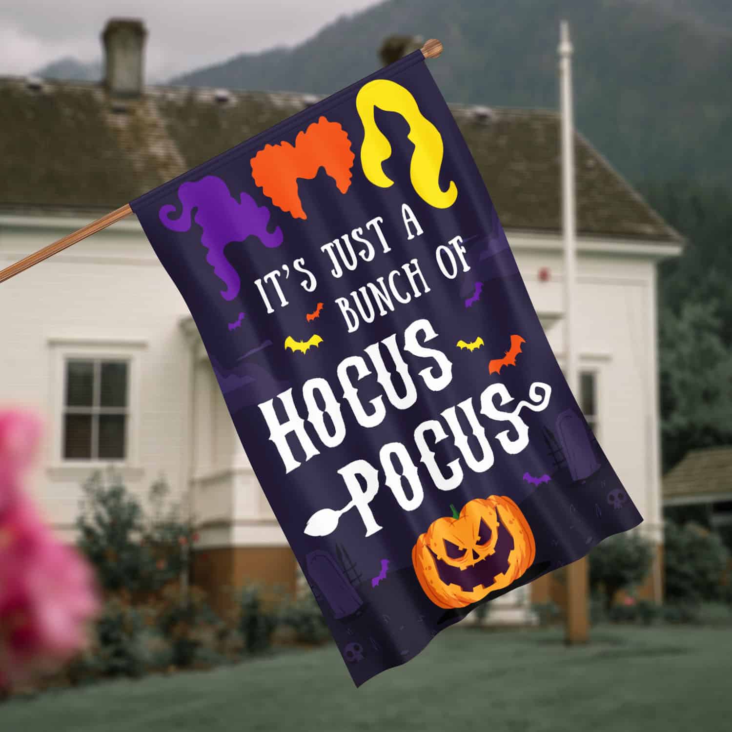 Let’s Shop It’s Just a Bunch of Hocus Pocus Funny Halloween Decorations Outdoor Indoor Decorative Garden Flag – House Flag!