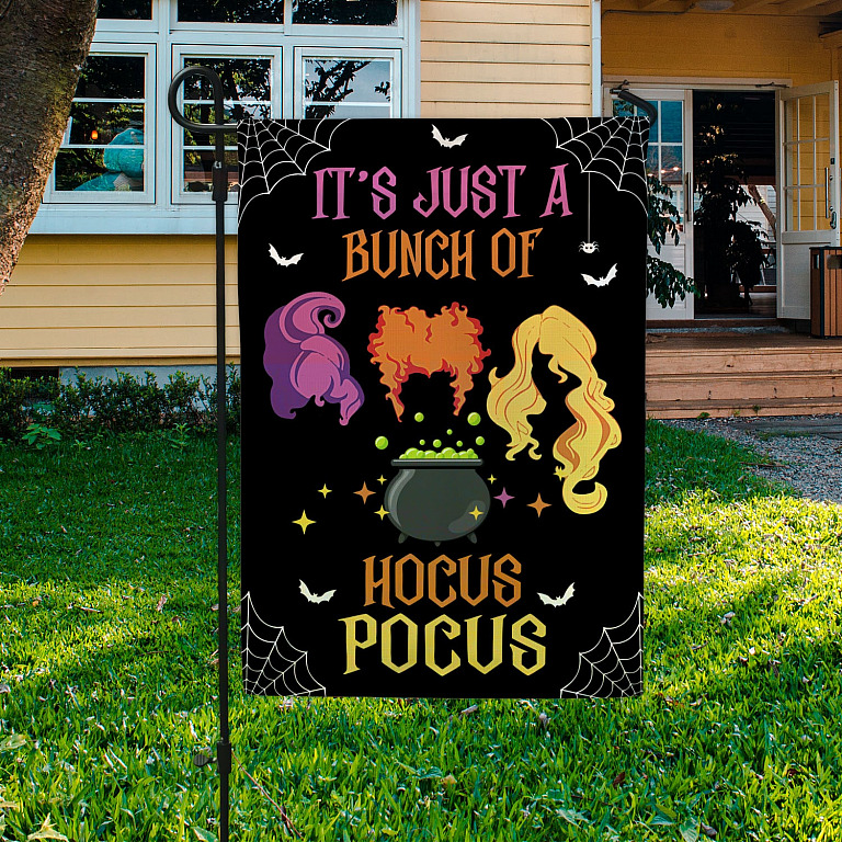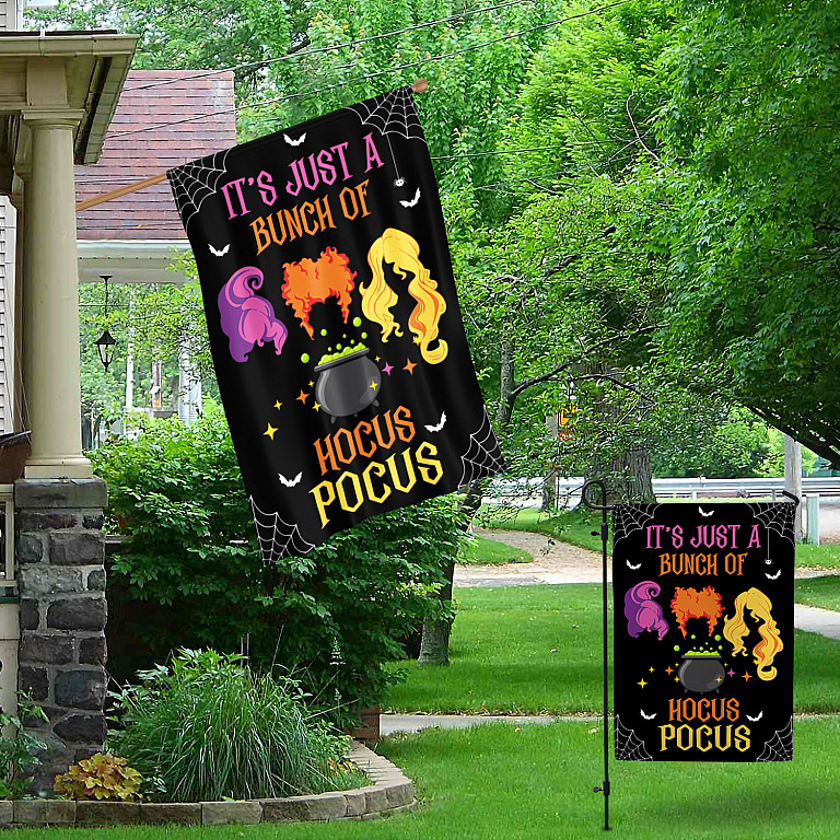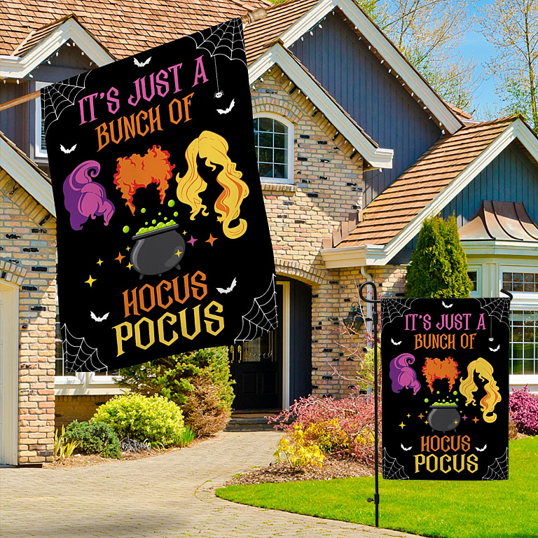 Let’s Shop It’s Just A Bunch Of Hocus Pocus Garden Flag – Sanderson Sisters Halloween House Flag!
