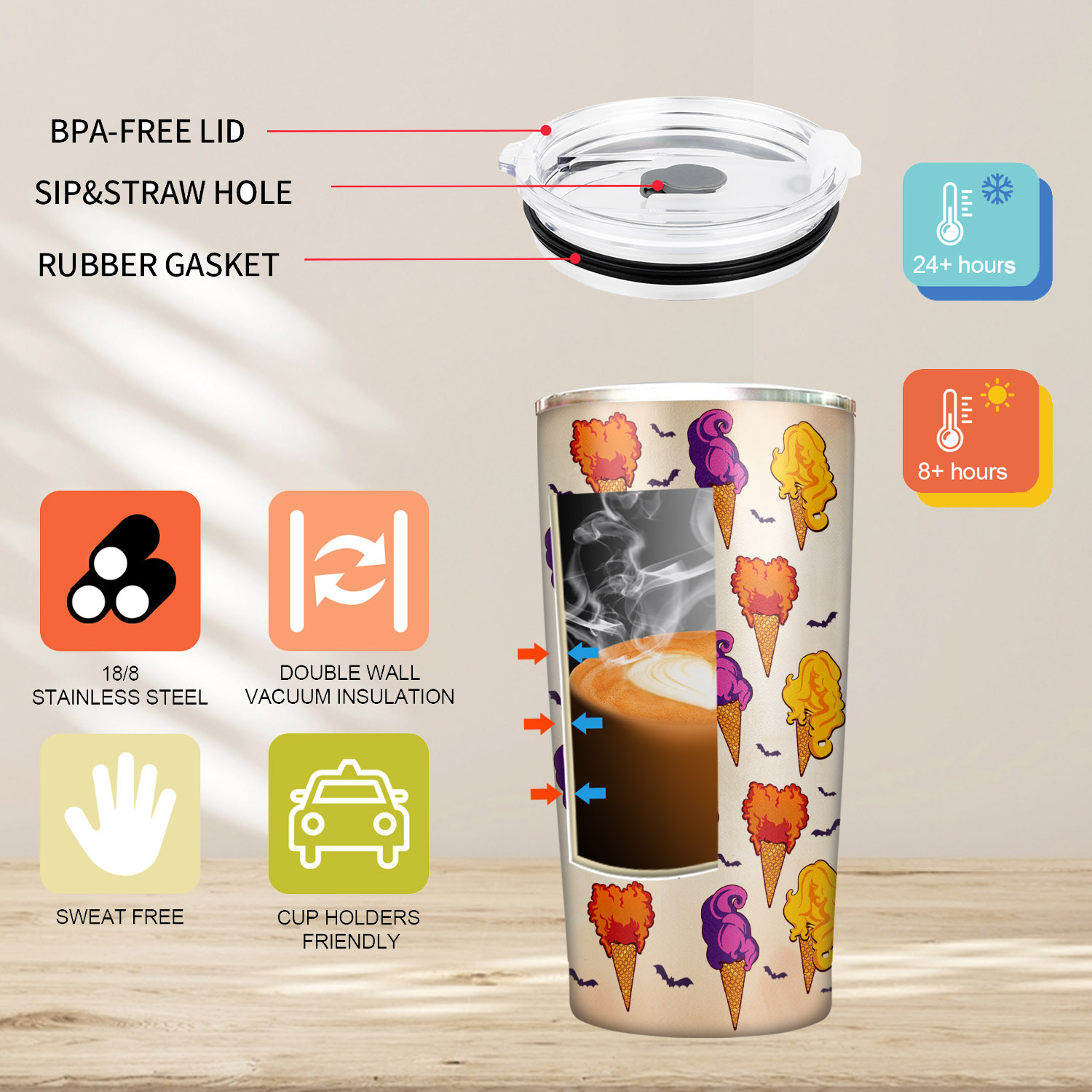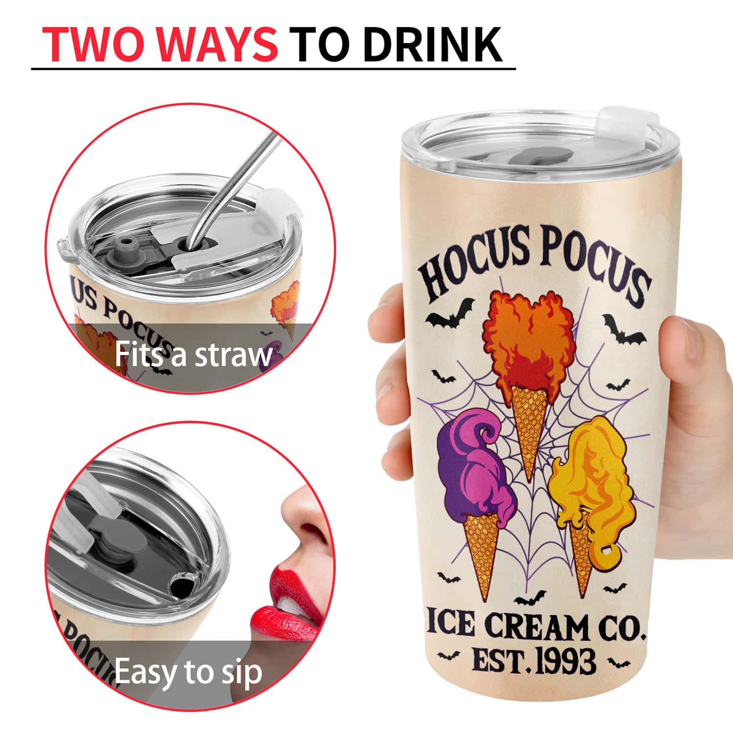 Let’s Shop Hocus Pocus Ice Cream Co. Est 1993 Insulated Tumbler Cup with Lid – Three Witch Halloween Vacuum Insulated Travel Coffee Mug!