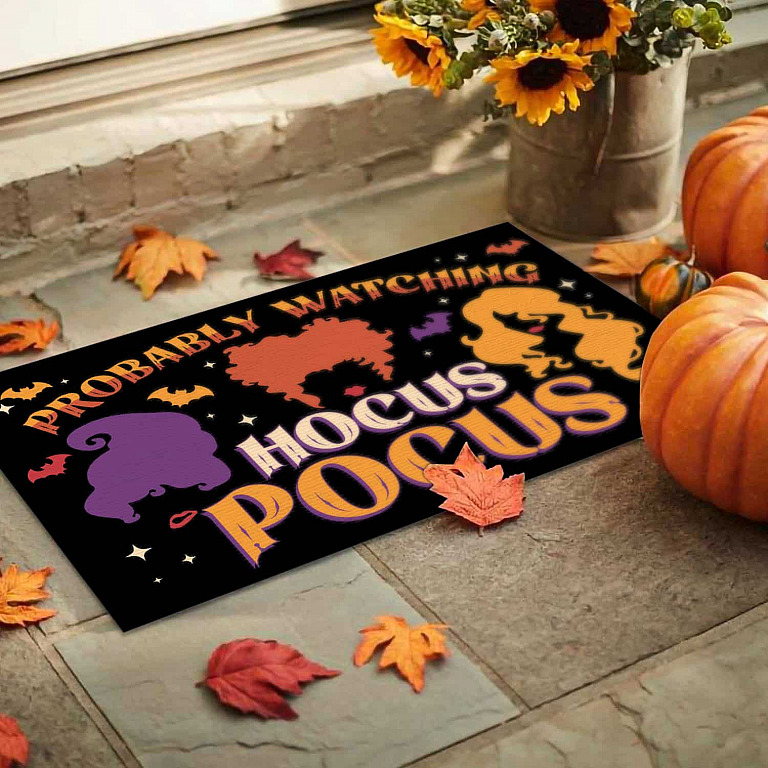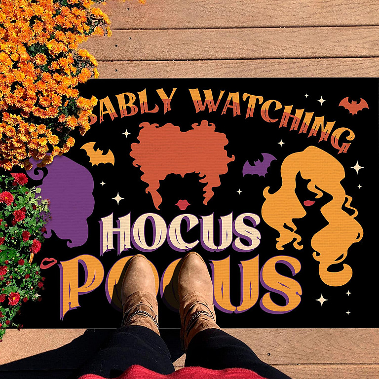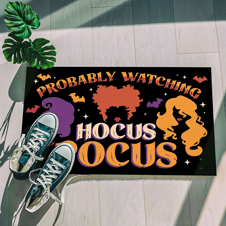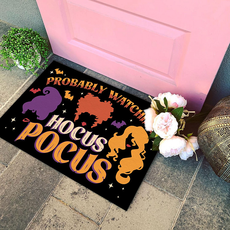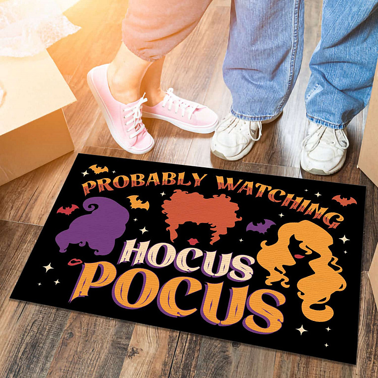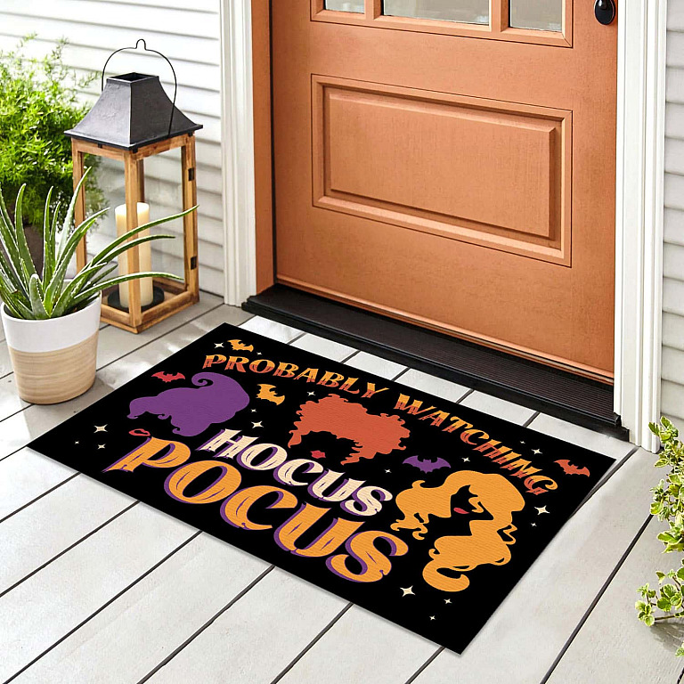 Let’s Shop Probably Watching Hocus Pocus Funny Indoor Outdoor Doormat – Funny Halloween Mat!