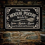 Let’s Shop Personalized Hocus Pocus Broom Co Sales Rentals Repair Hand Crafted And Enchanted Outdoor Decorative Metal Sign!